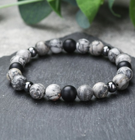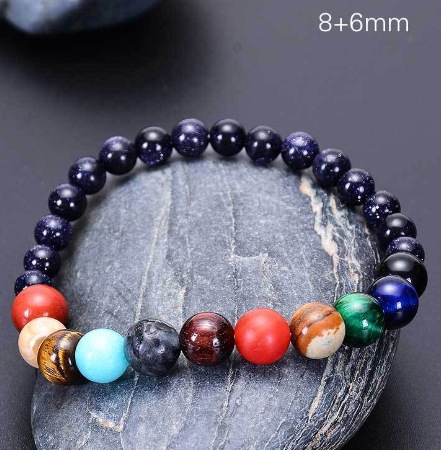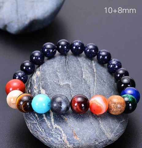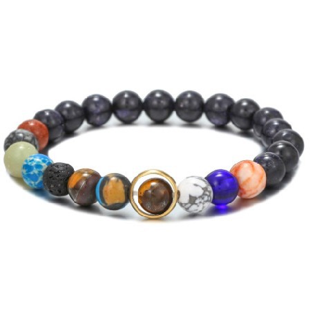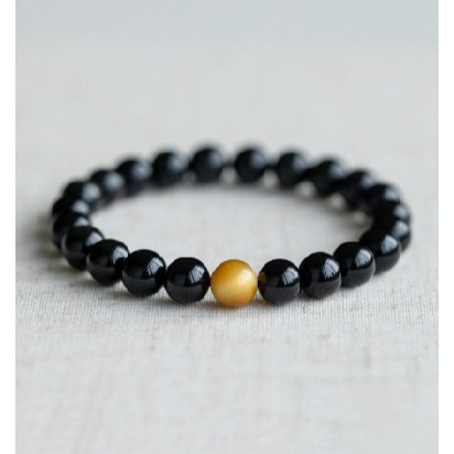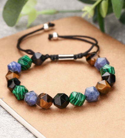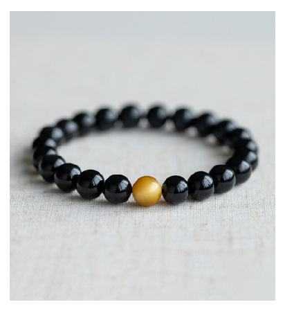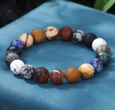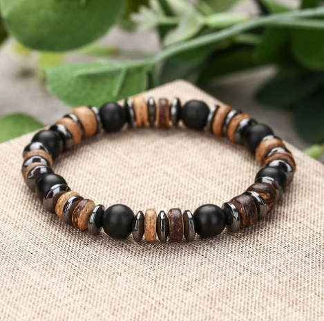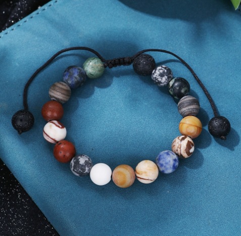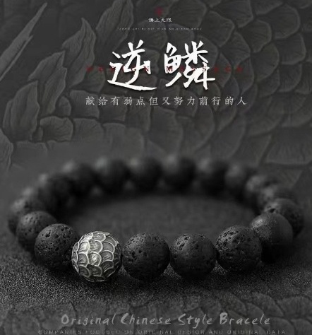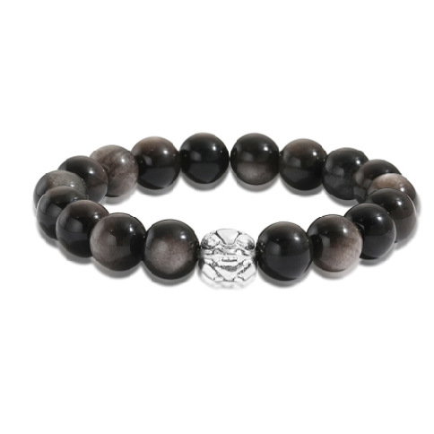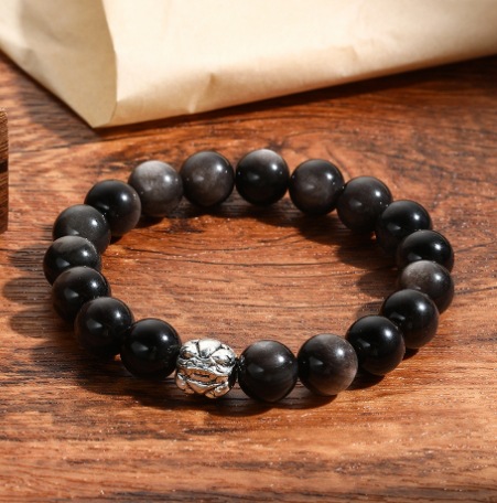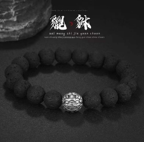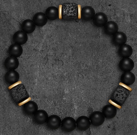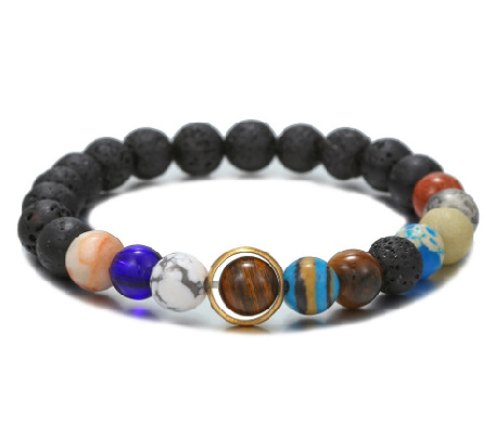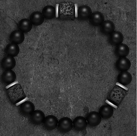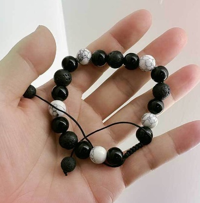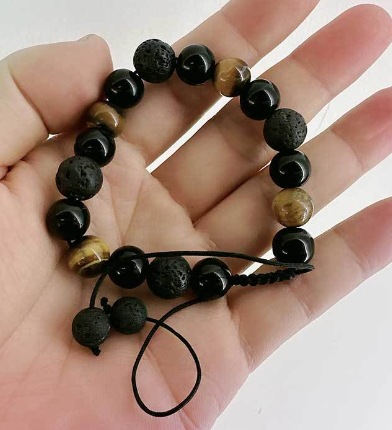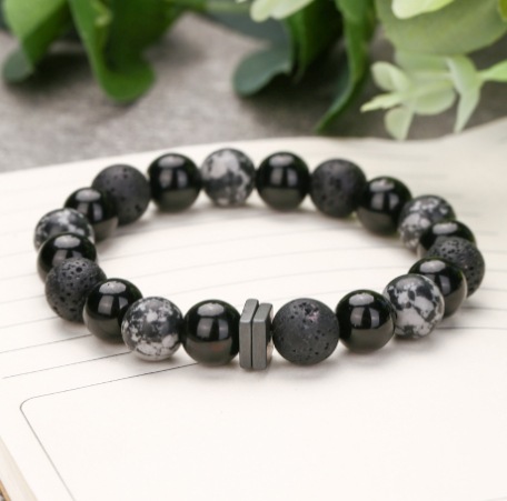 个性跨境熔岩方块火山石编织手链男哑光黑玻璃珠子可调节手环手串