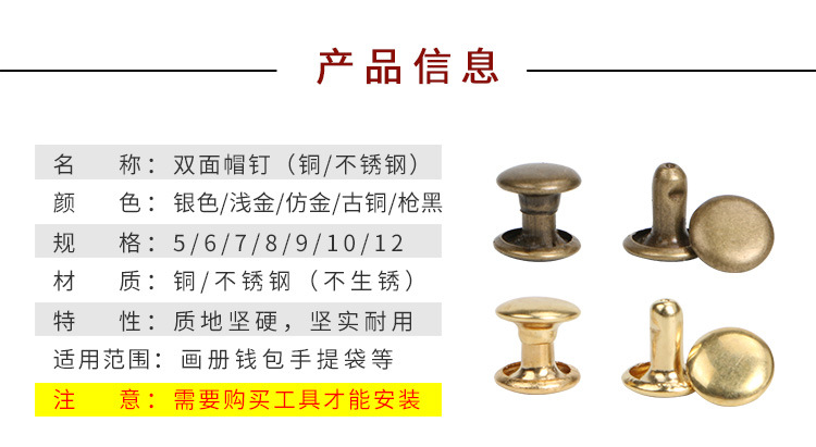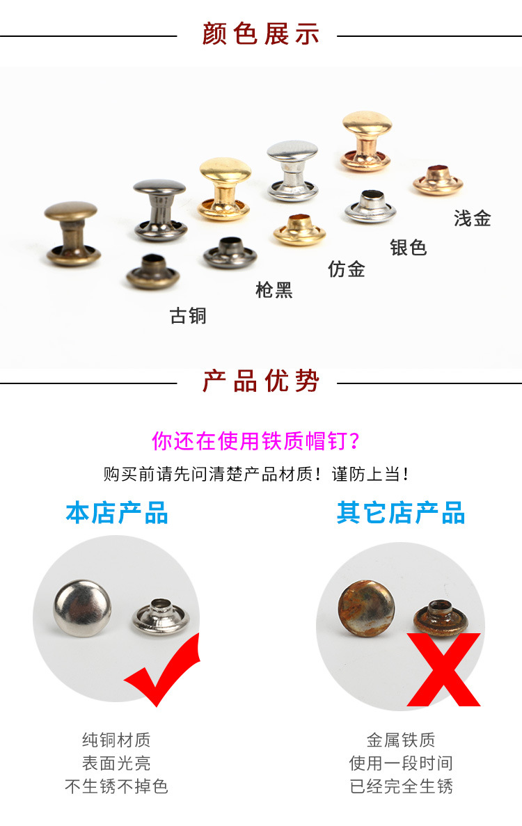 5-9mm全铜双面铆钉不生锈撞钉皮具箱包广告diy制作帽钉金银色