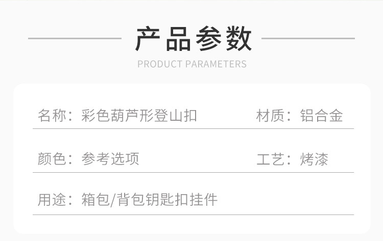 彩色烤漆5号葫芦形登山扣铝合金饰品配件手工调节水瓶钥匙挂扣