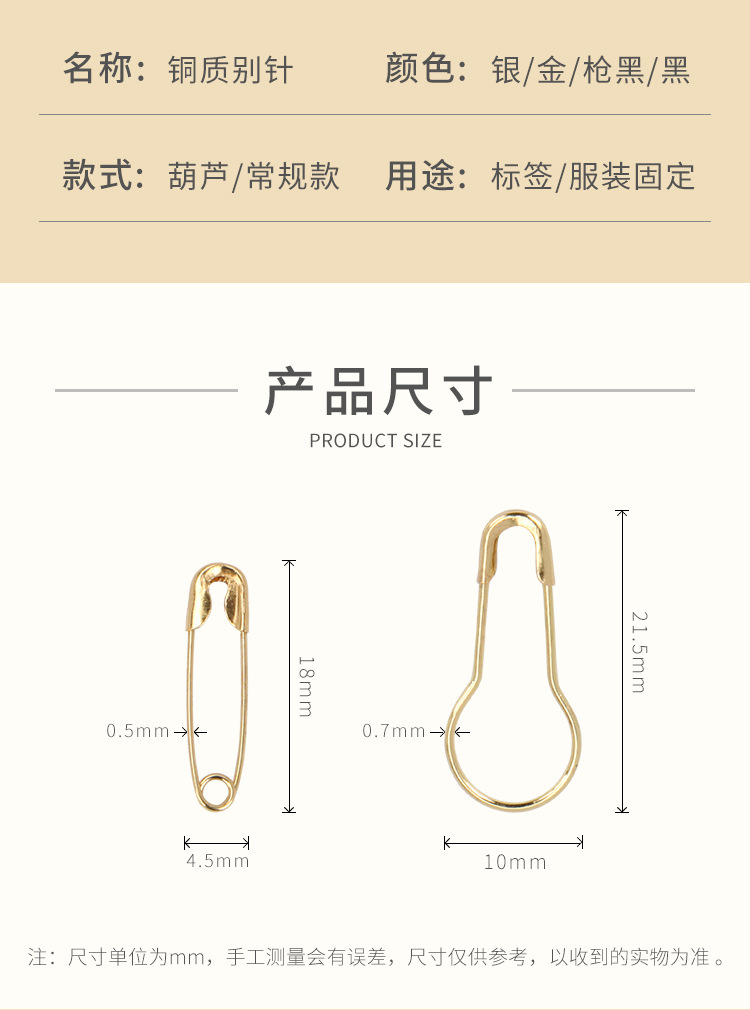 厂家批发铜质安全别针衣服吊牌葫芦小别针多色保险扣针服装辅料