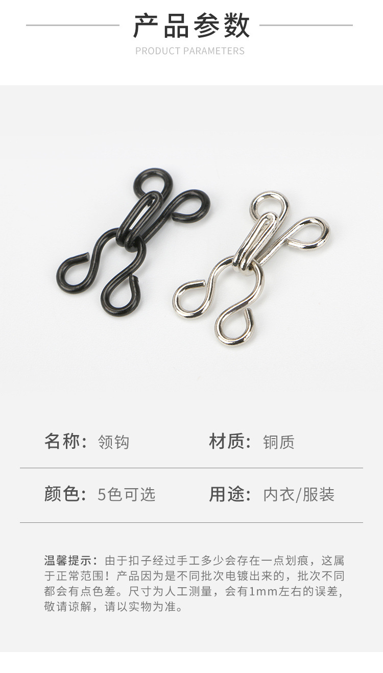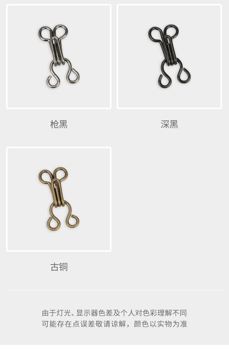 厂家供应 金属领钩风纪扣皮草毛衣隐形扣 内衣纽扣 毛衣铜质勾扣