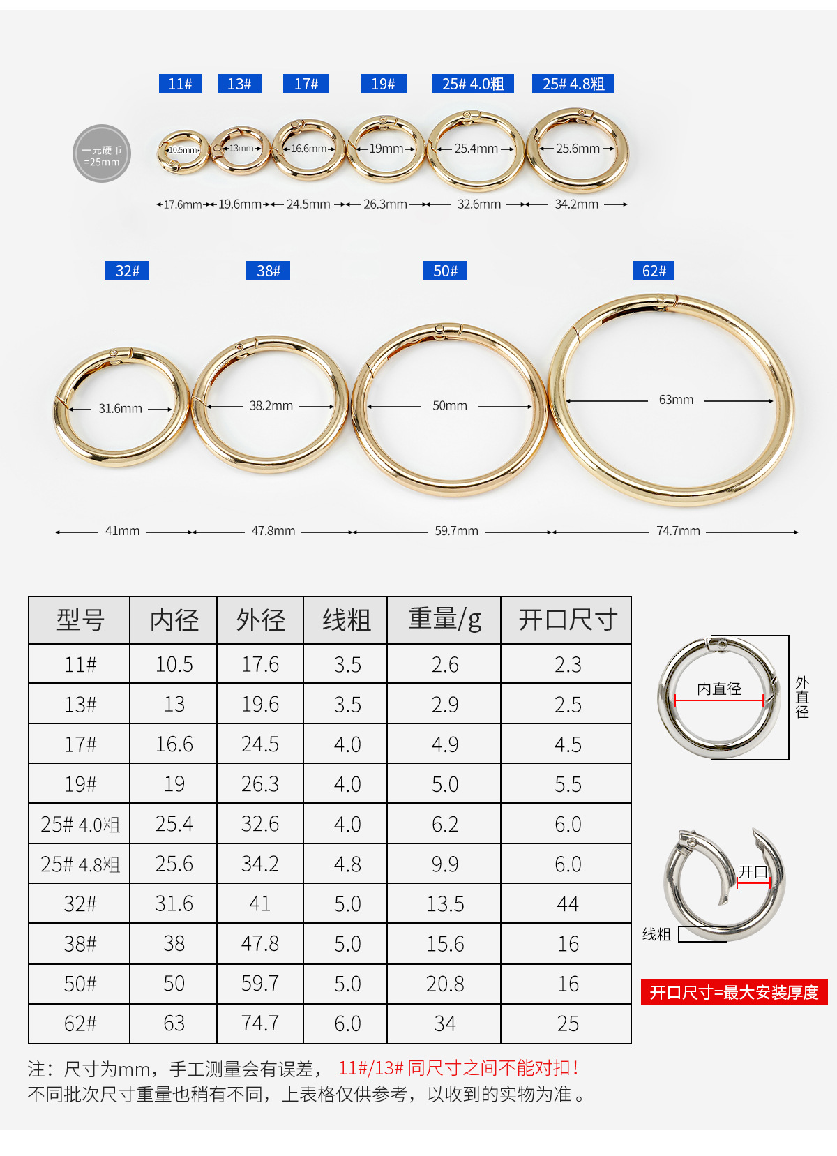 | inner diameter 25 * line thickness 4.8 * outer diameter 34mm(内径25*线粗4.8*外径34mm) | USD $0.14 | 983376 piece available |
