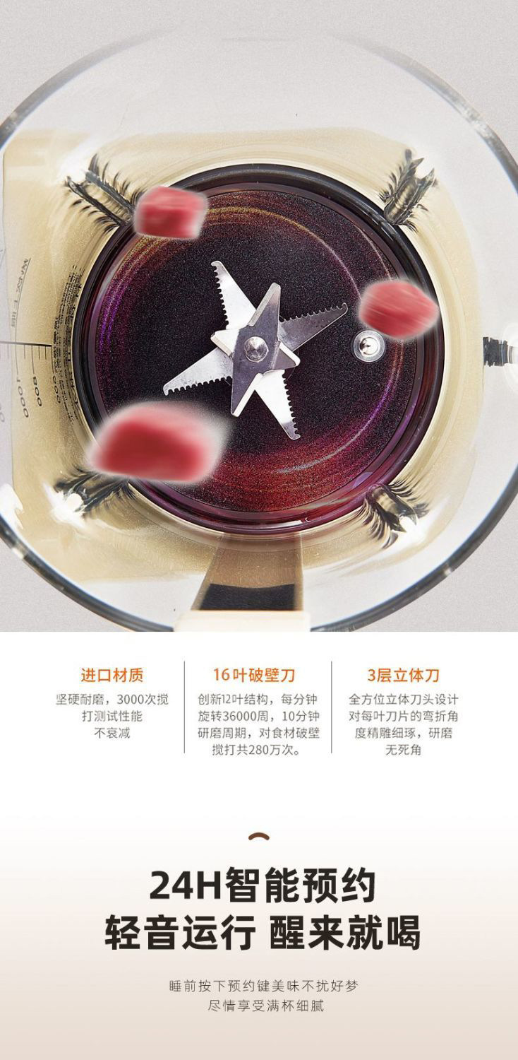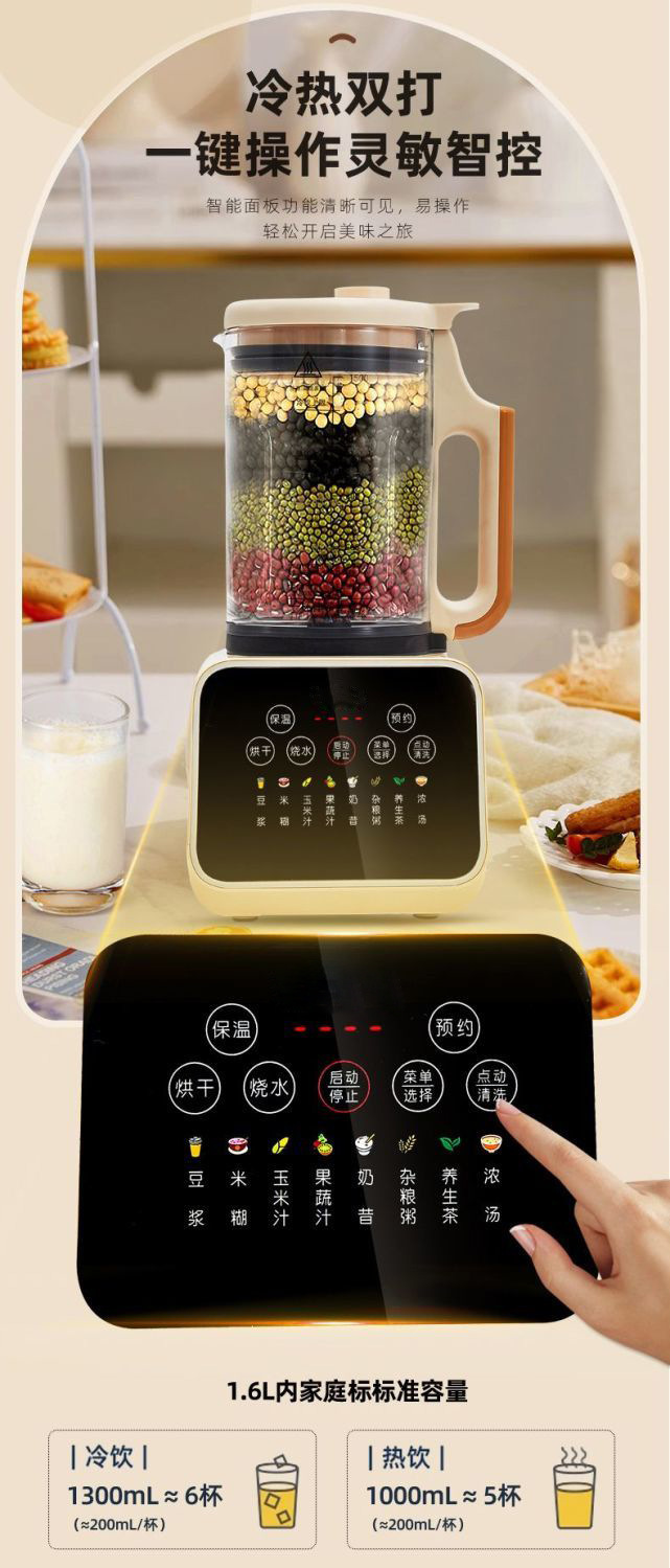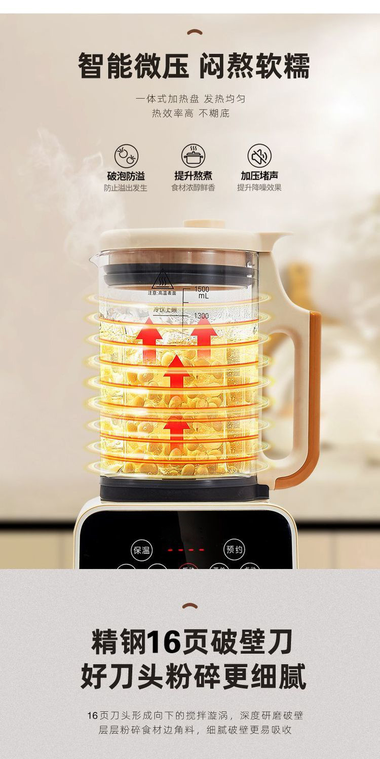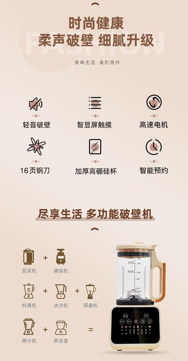2024新款破壁机家用静轻音全自动多功能辅食机果汁机料理机豆浆机