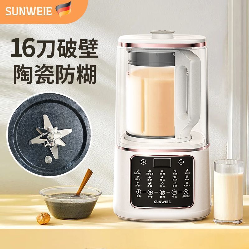 德国尚维尔多功能破壁机带隔音罩静音全自动家用加热豆浆机料理机