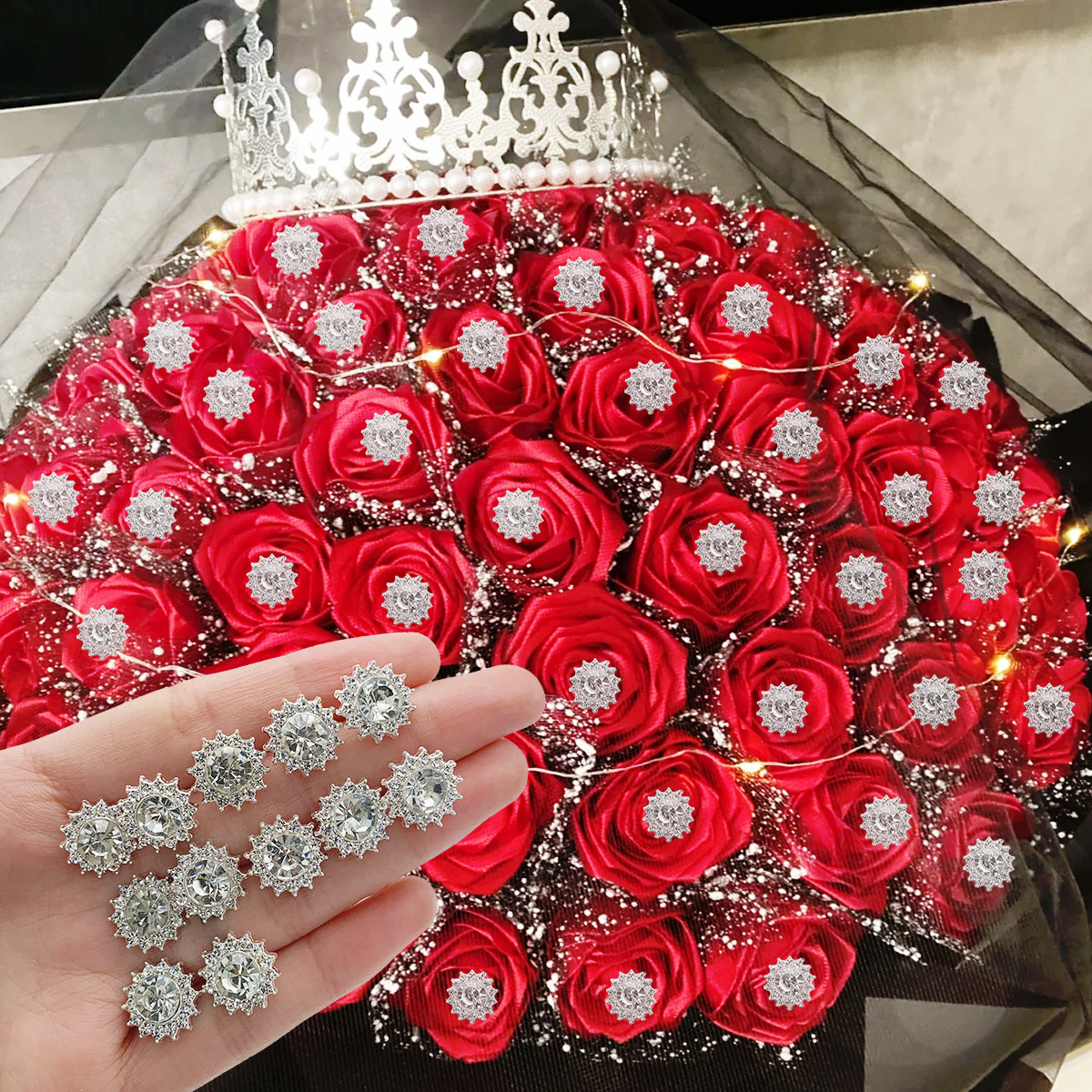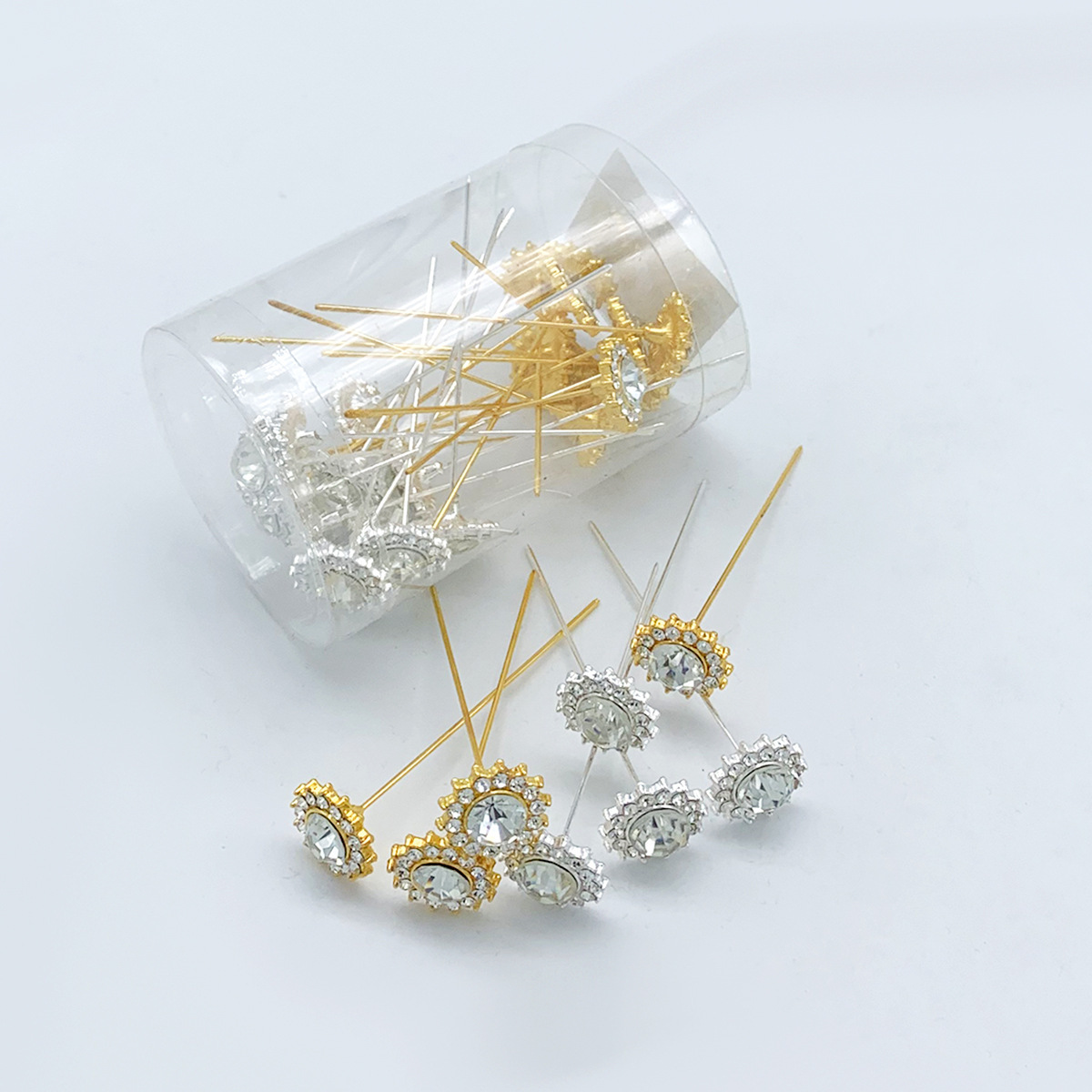 跨境合金钻石针玫瑰花插针婚纱鲜花装饰固定针大头针定位针现货