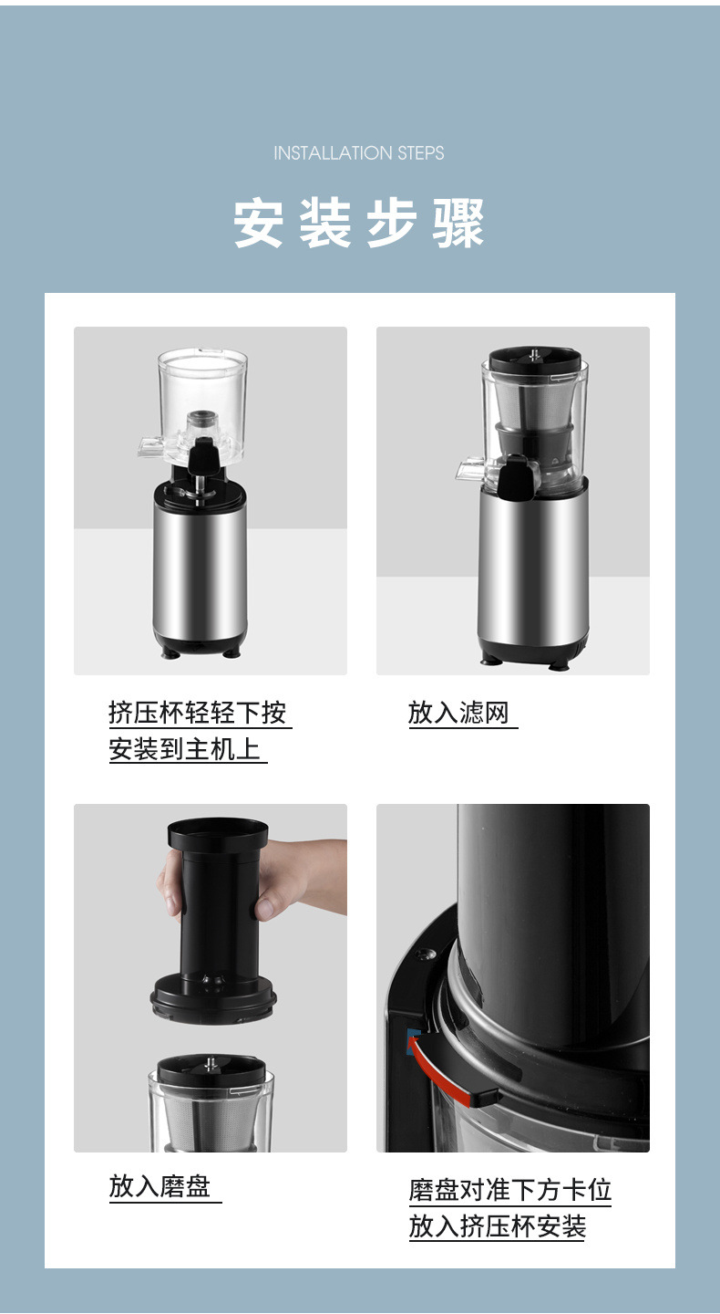 水果原汁机榨汁机汁渣分离家用全自动慢磨大口径炸果汁机小型口径