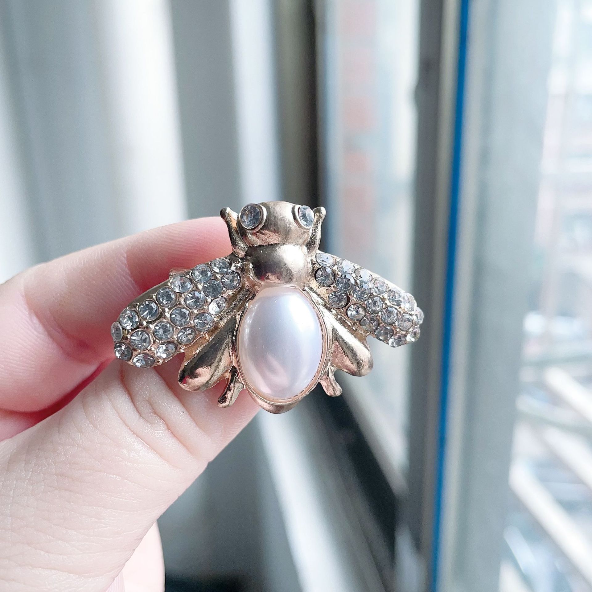 蜜蜂款珍珠胸针昆虫镶钻高级感小众别针女士水钻胸花高档服装饰品
