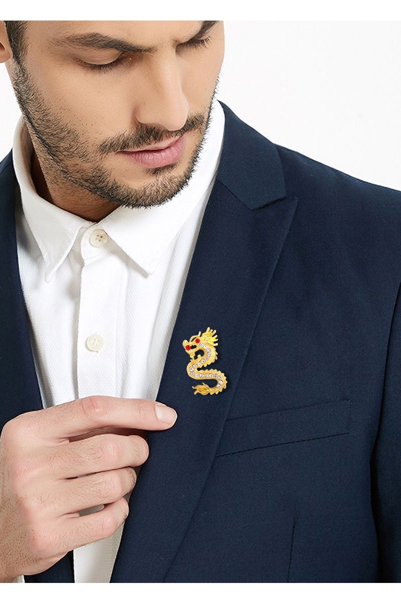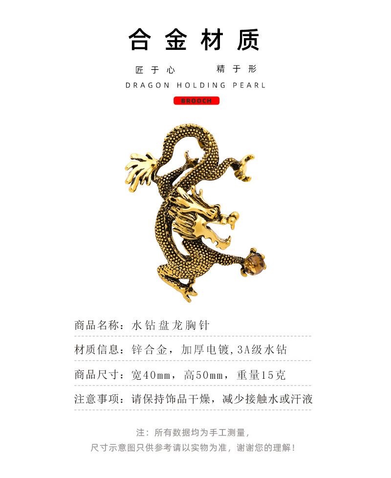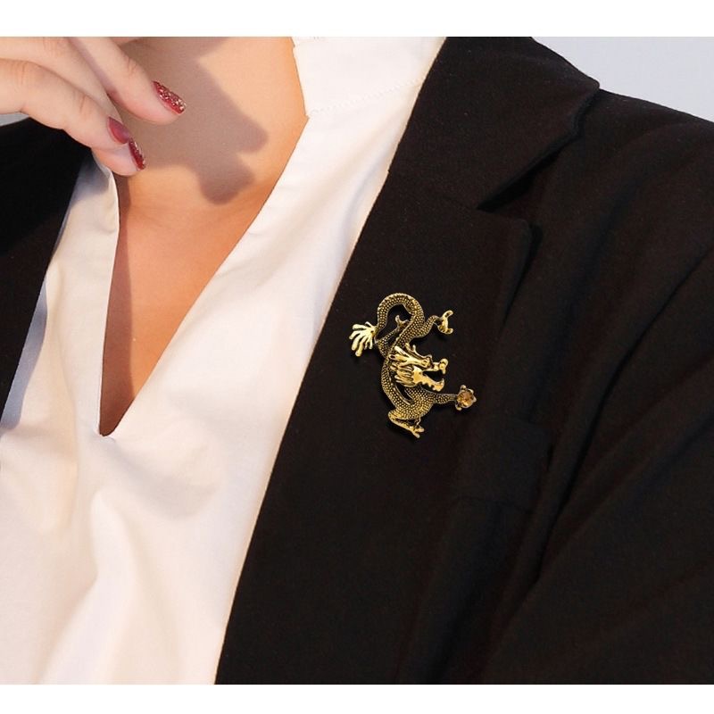 亚马逊热销跨境爆款时尚复古龙图腾胸针别针男装个性西服外套胸花