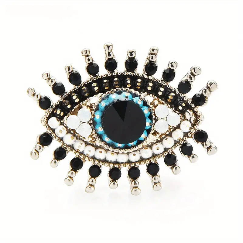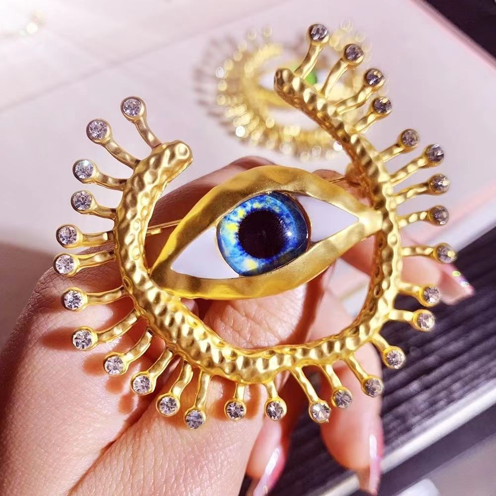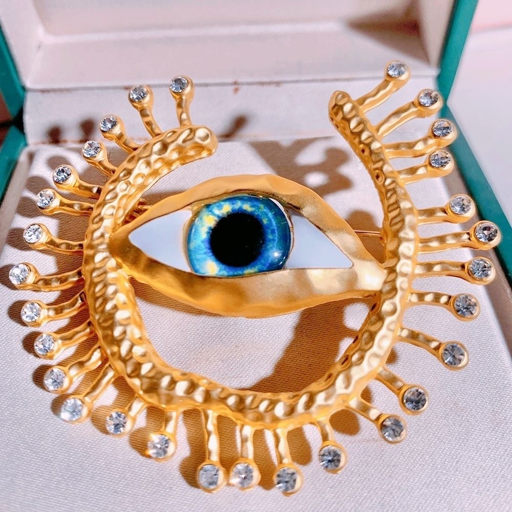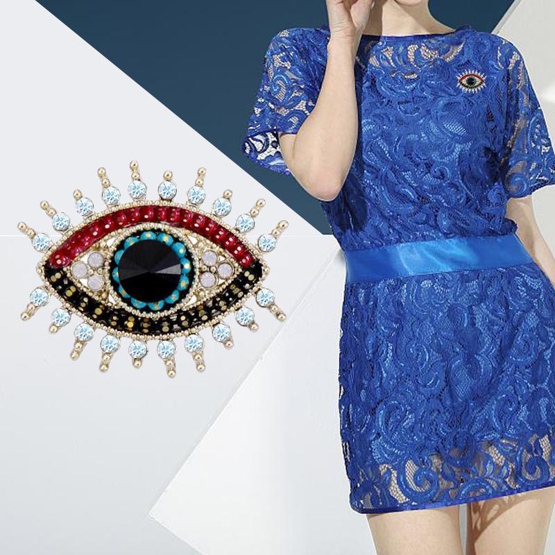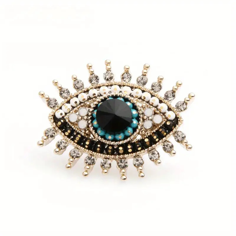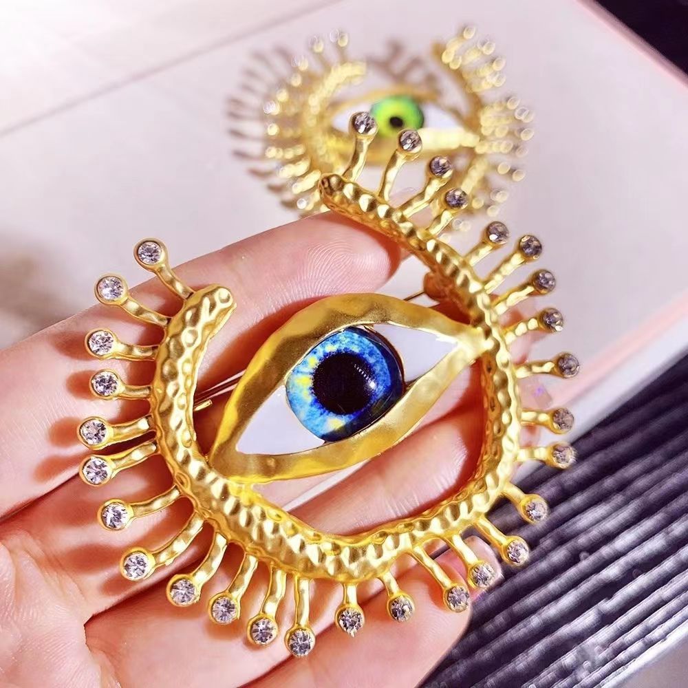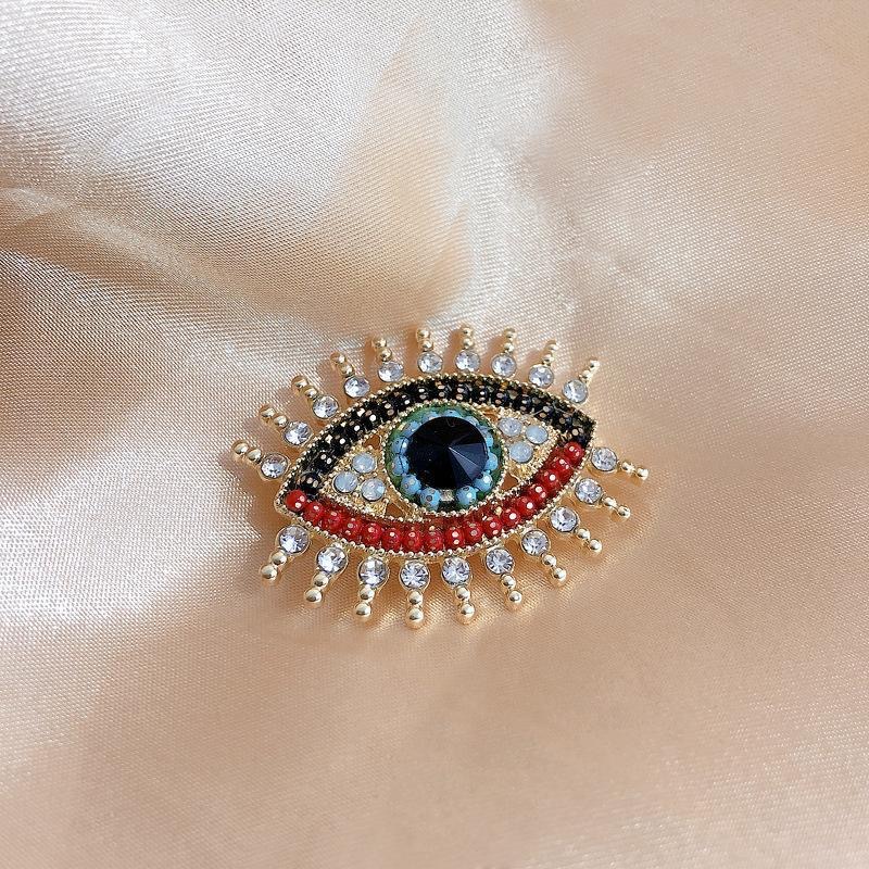欧美时尚胸针个性复古创意恶魔之眼胸针合金镶钻夸张胸饰别针批发