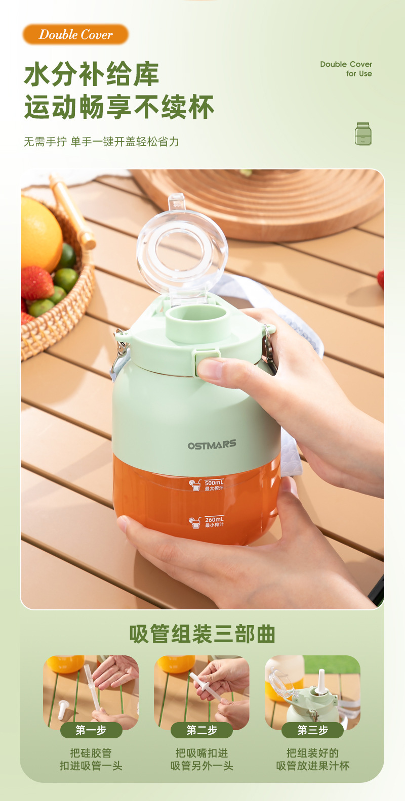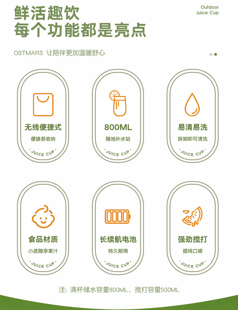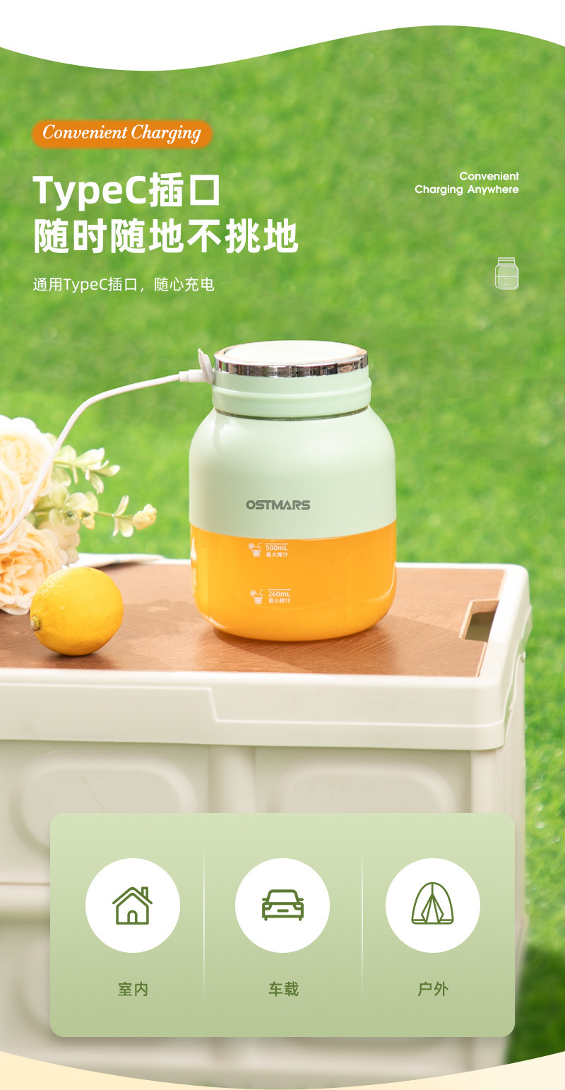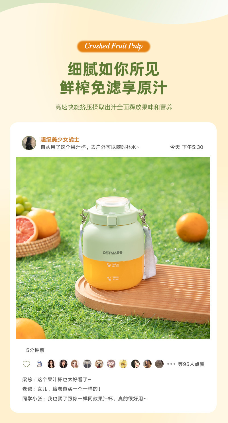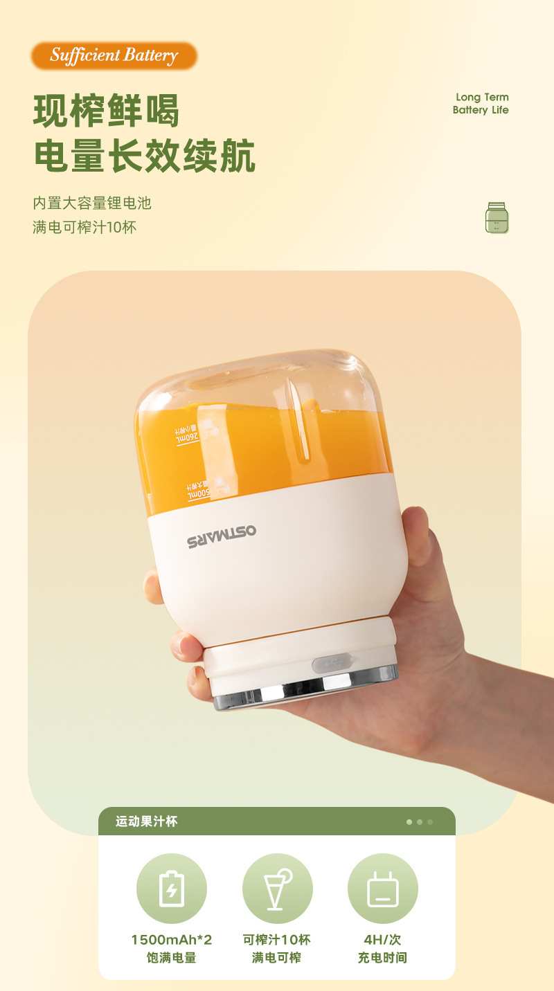 OSTMARS吨吨桶鲜榨果汁便携式多功能家用无线电动榨汁杯榨汁机