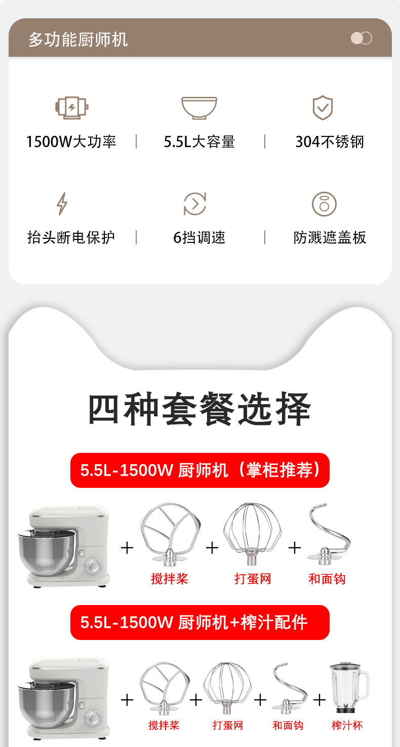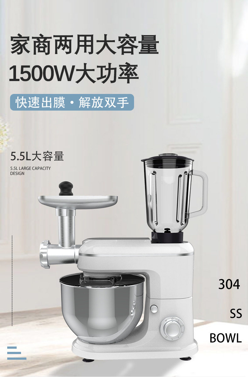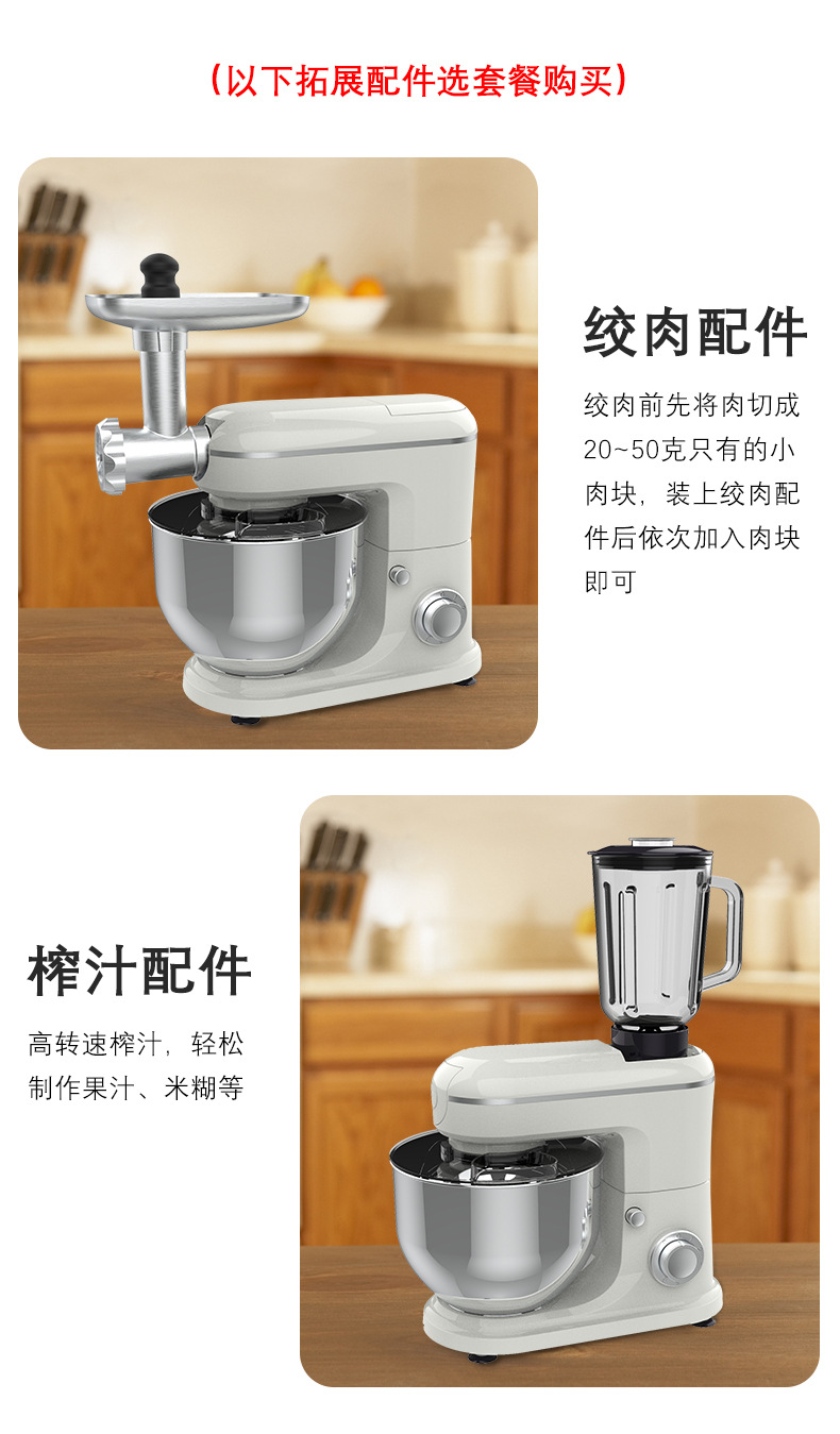 跨境专供厨师机家用不锈钢多功能和面机揉面婴儿辅食机榨汁绞肉机