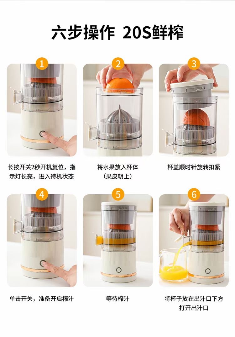 跨境电动小型全自动榨汁机多功能渣汁分离果汁机无线便携式原汁机
