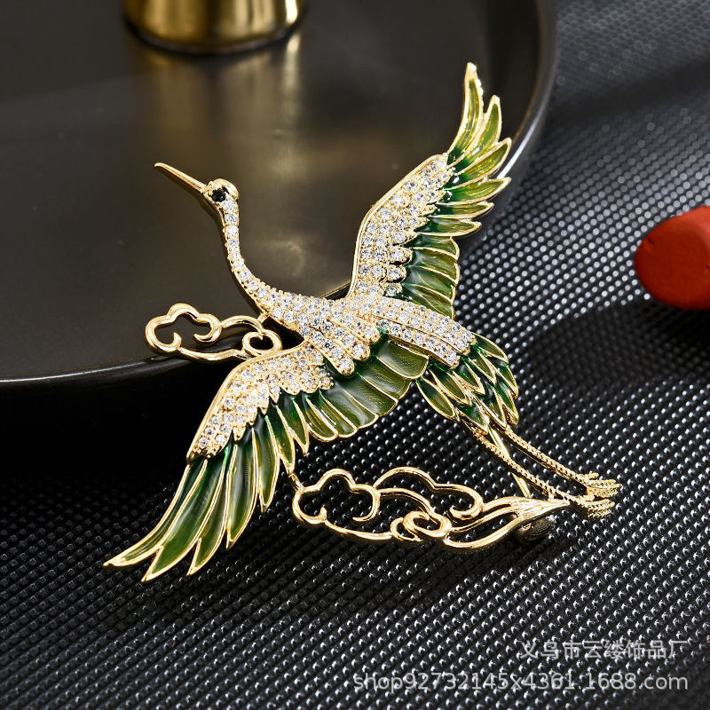欧美仙鹤胸针奢华高级感女款领针配饰新款高档西服胸花别针批发
