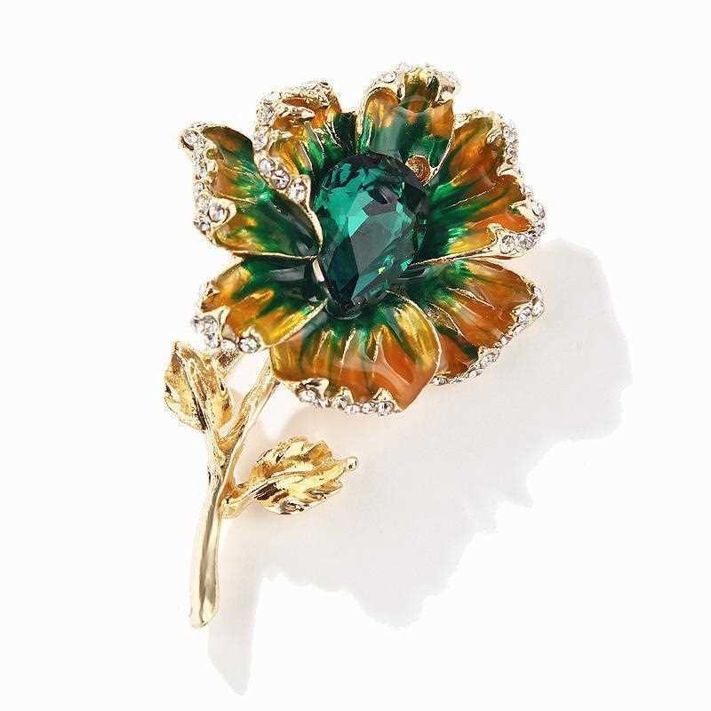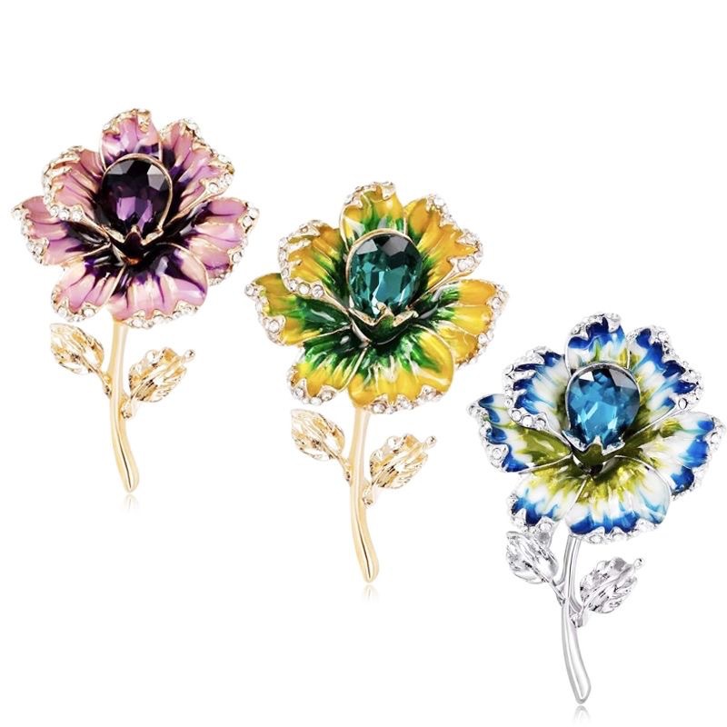 新款时尚滴油水晶玻璃花卉胸针别针欧美创意新款气质花朵胸针批发
