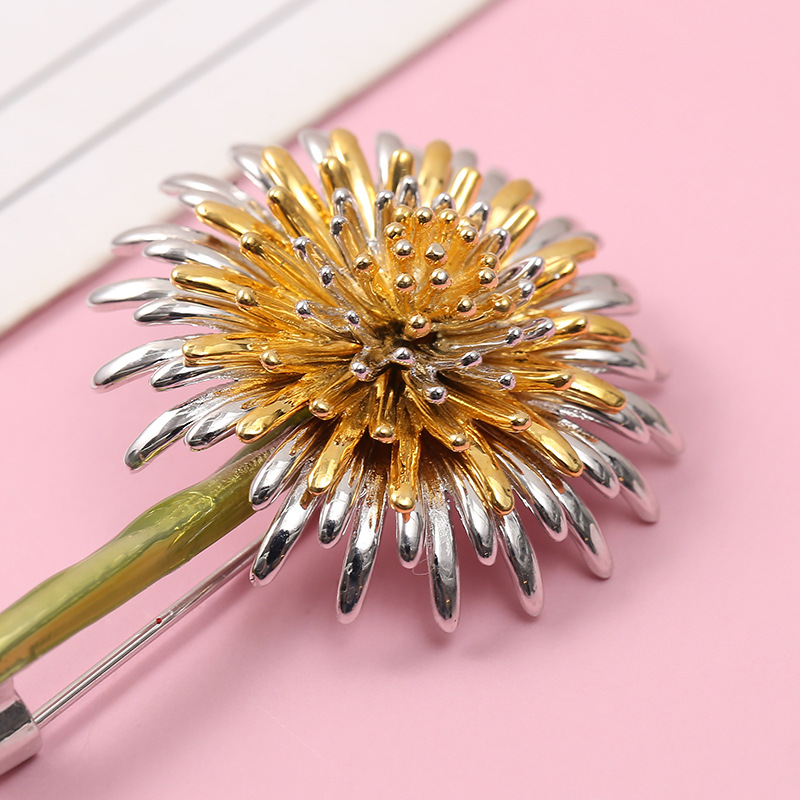 仿真蒲公英花朵胸针 韩版ins金属镀金别针 女士服装配饰合金徽章