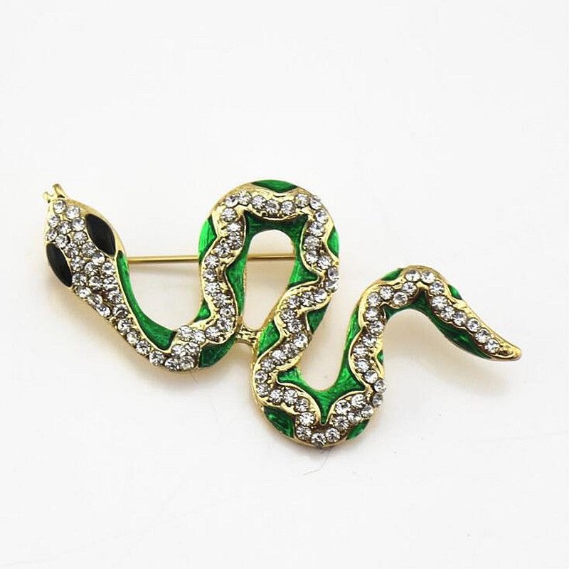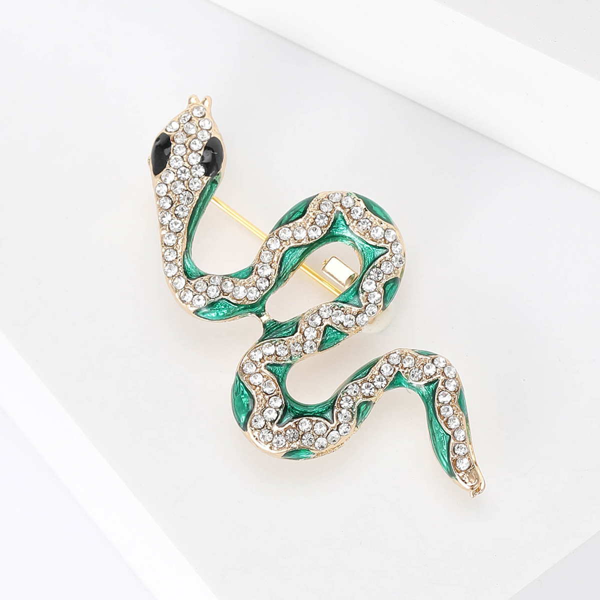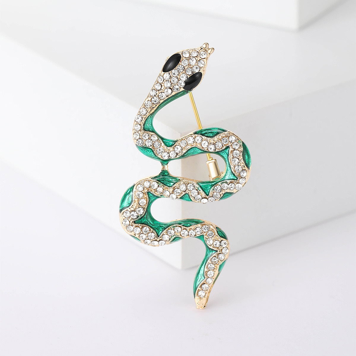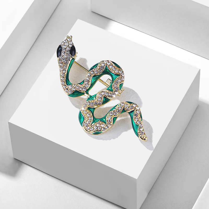 跨境外贸个性水钻滴油珐琅绿色蛇胸针 时尚创意百搭高档胸针批发