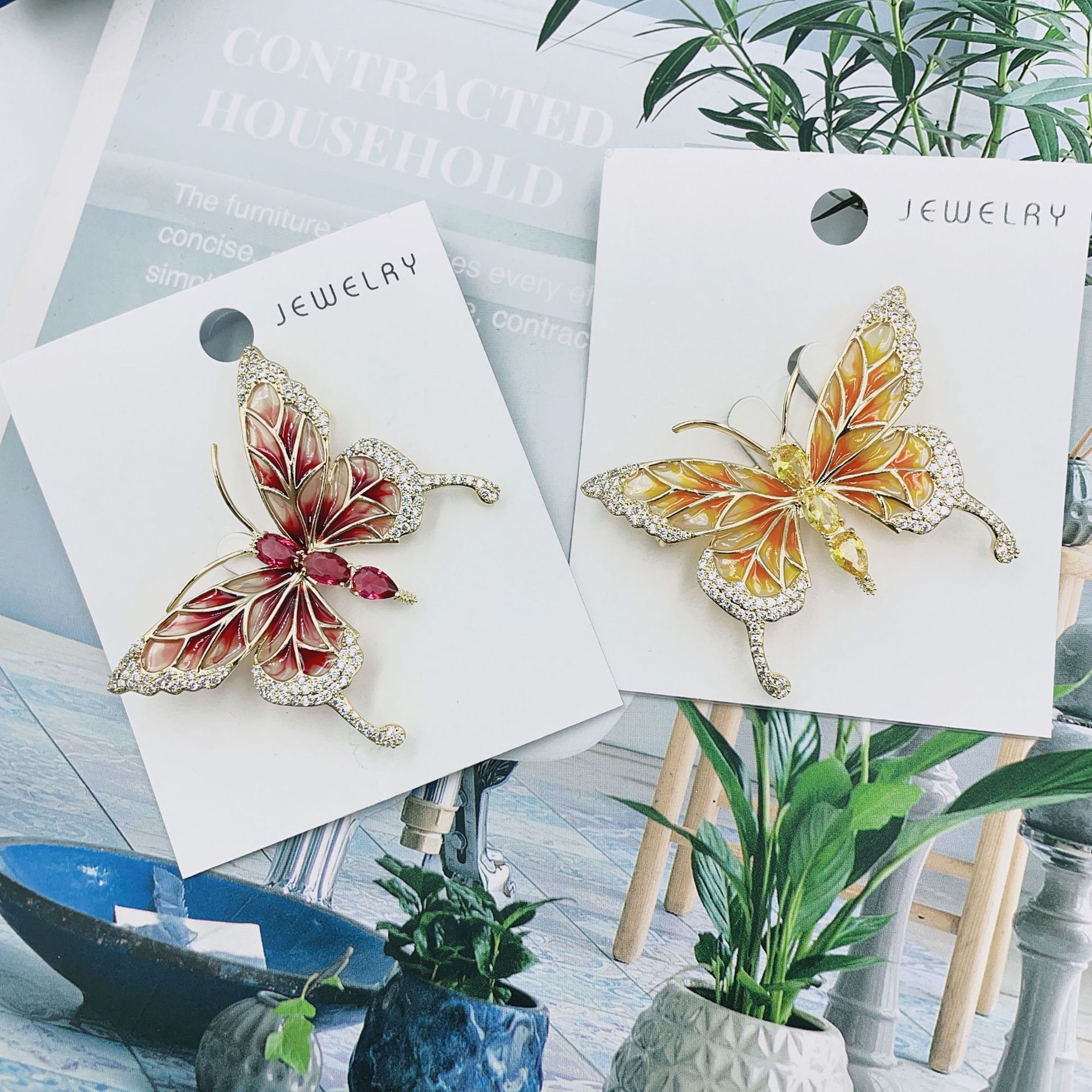 珐琅蝴蝶胸针 女士气质优雅配饰小众设计感ins风镶钻别针饰品跨境