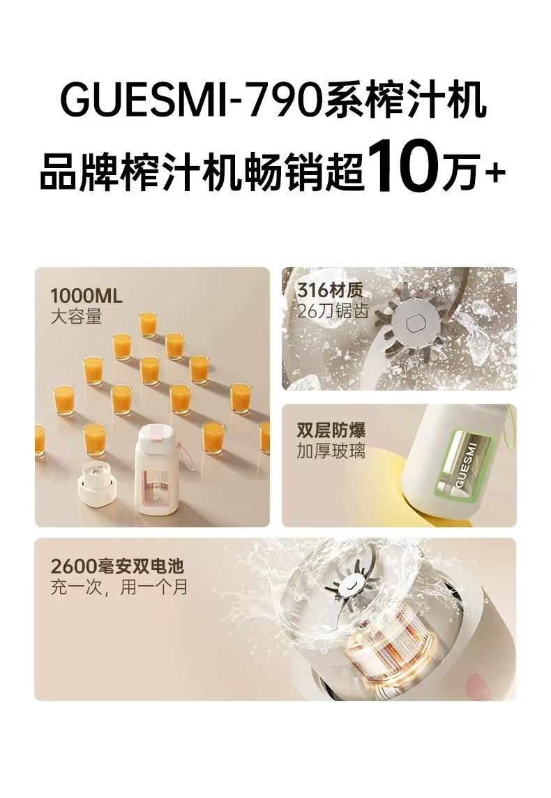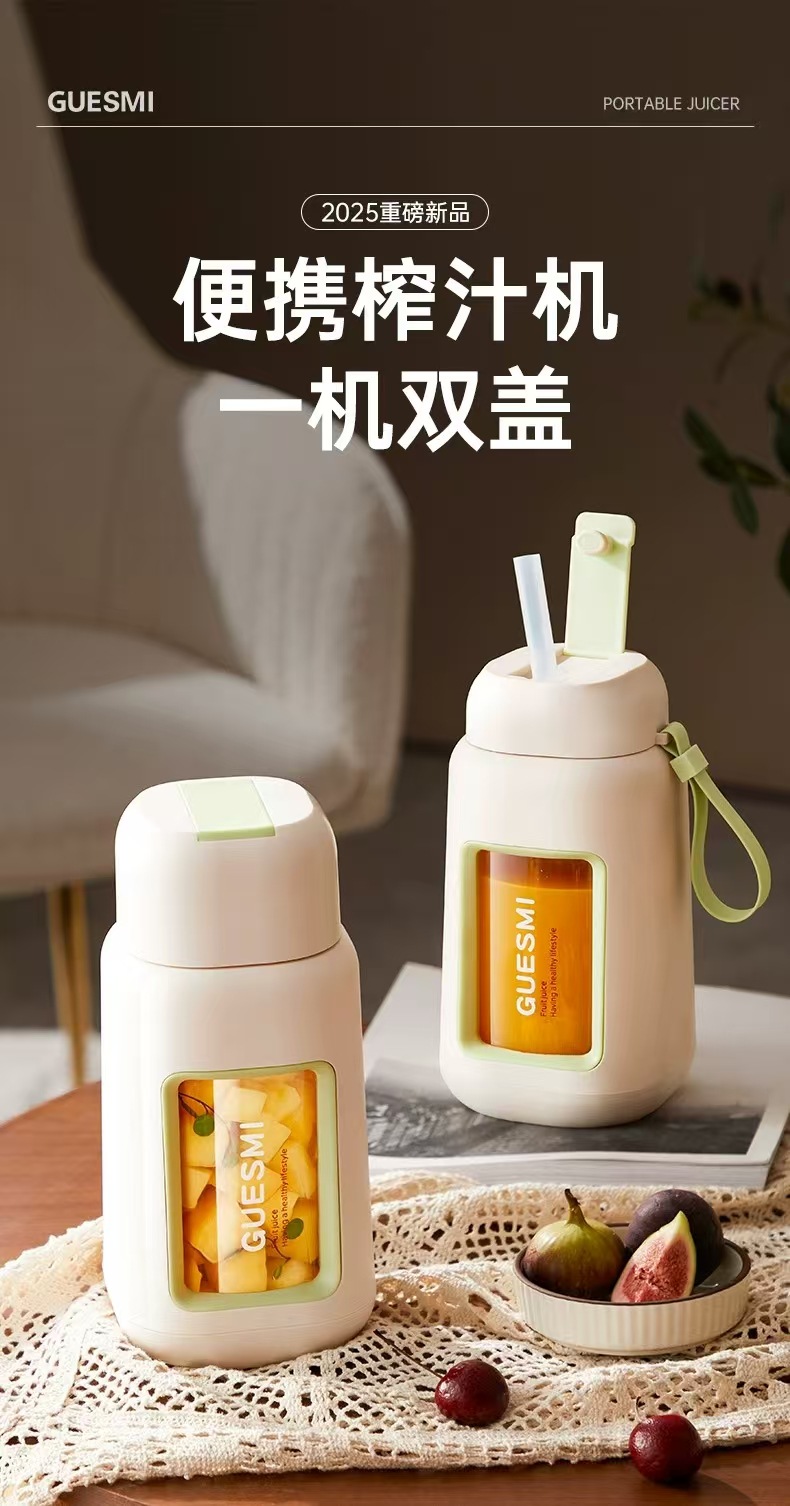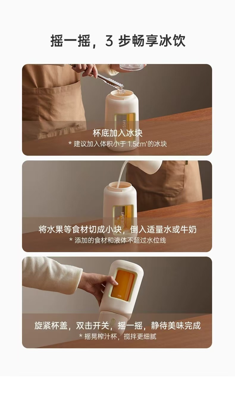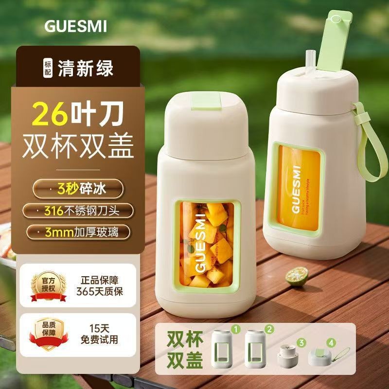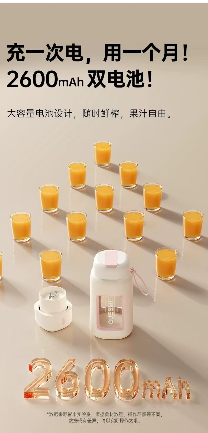 皆米家用办公玻璃榨汁机可碎冰便携式小型果汁机多功能无线榨汁杯