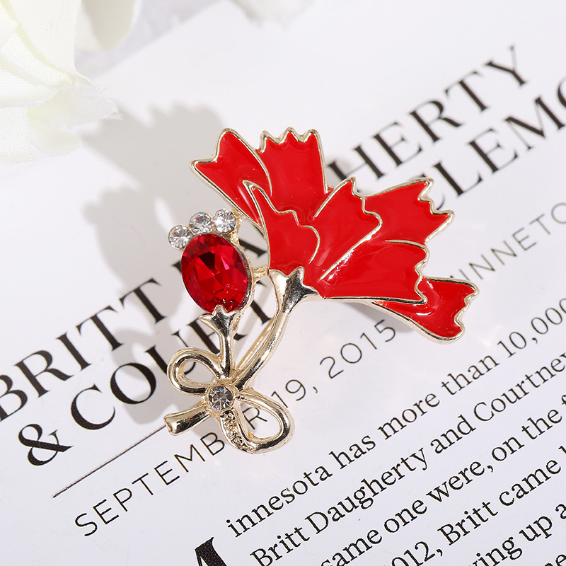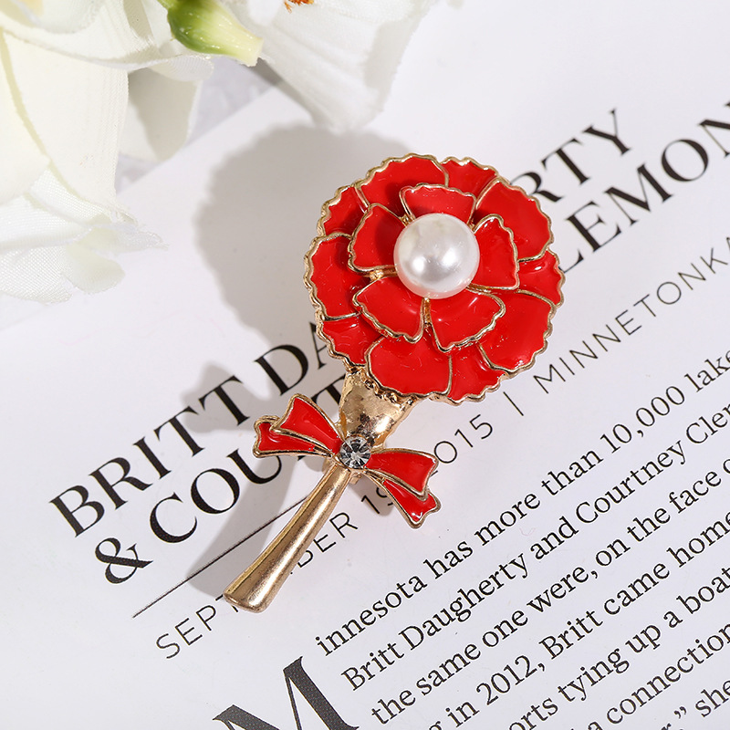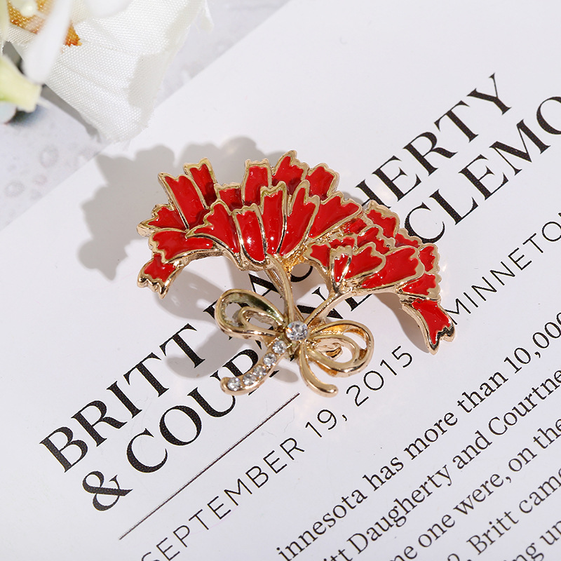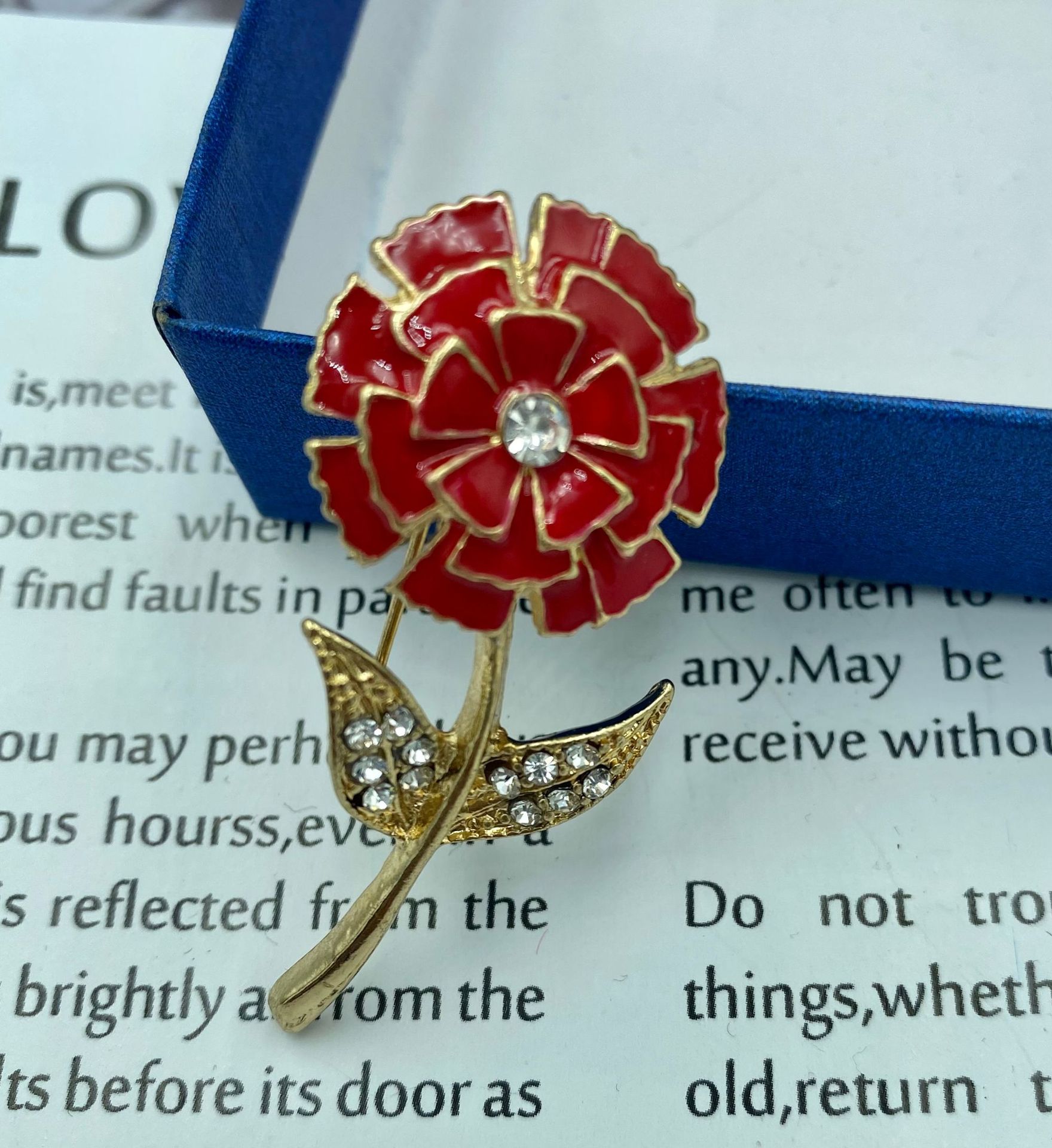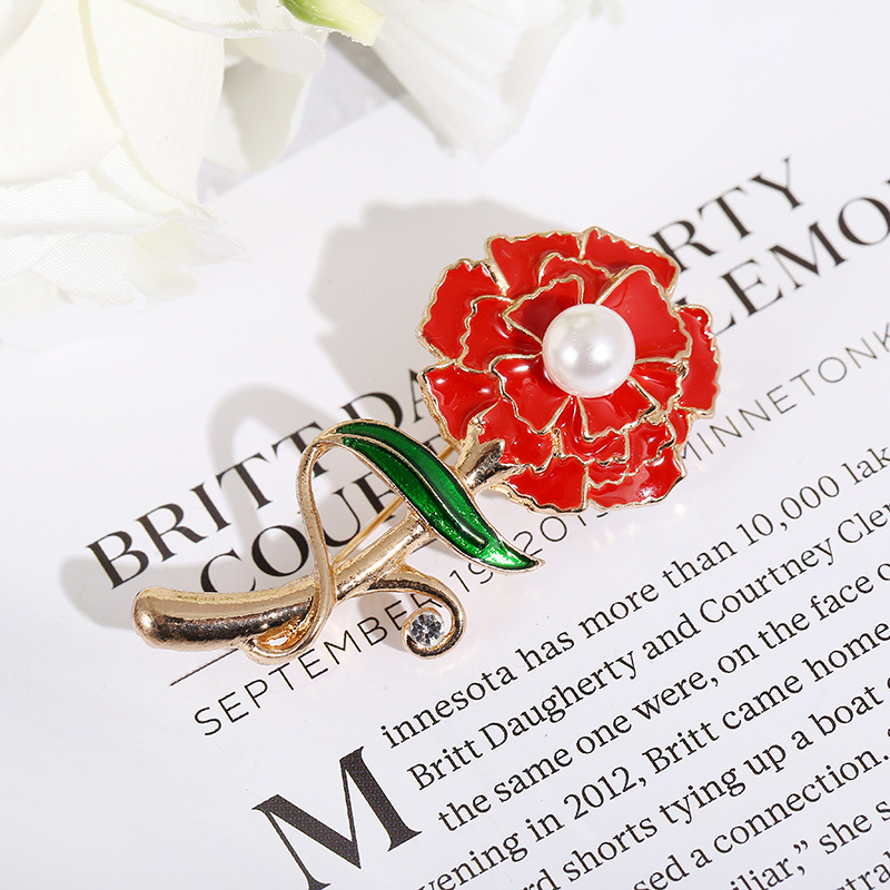 新款复古蔷薇花胸针红色高档防走光花朵别针欧美镶钻精致女士胸针