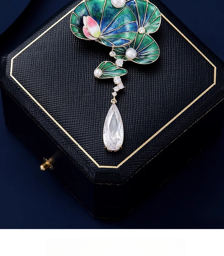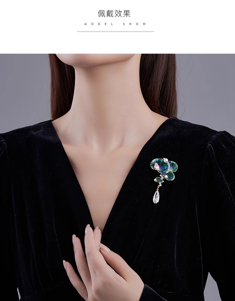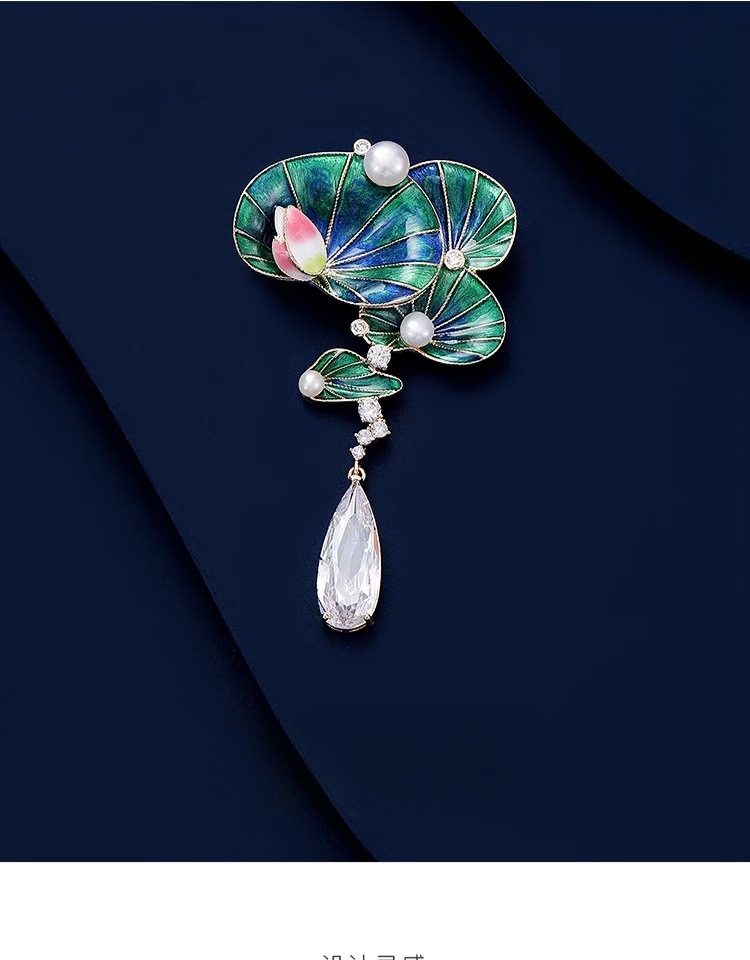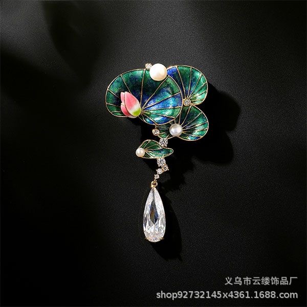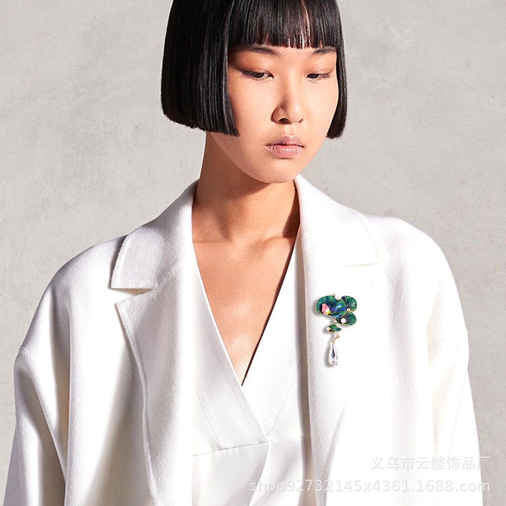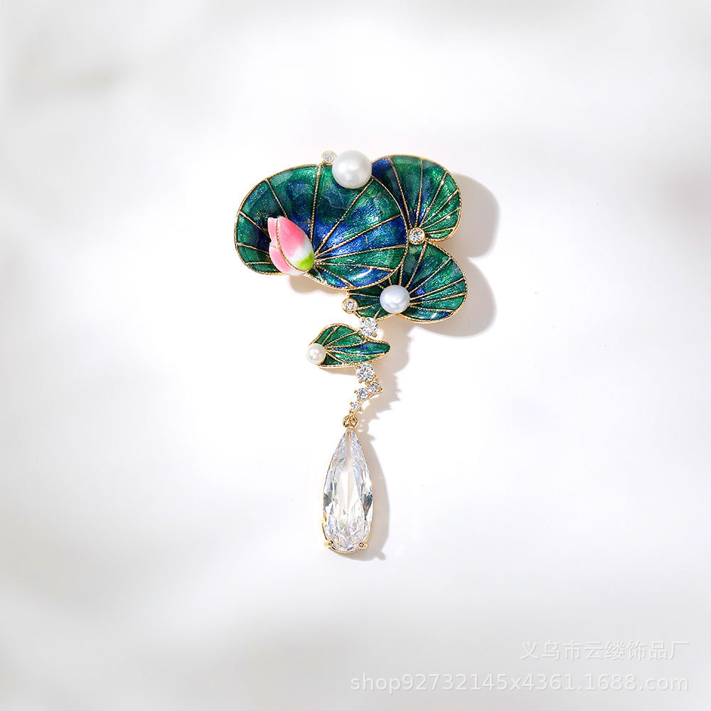 国风好运莲莲胸针高档女荷花睡莲别针新中式珍珠胸花西装旗袍配饰