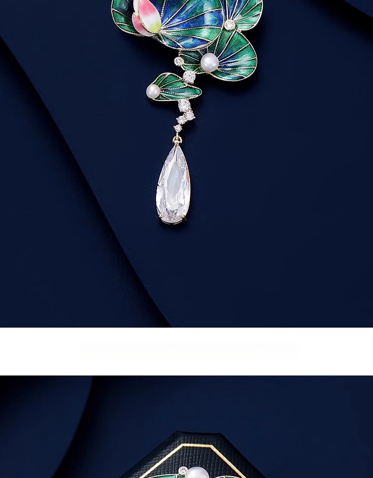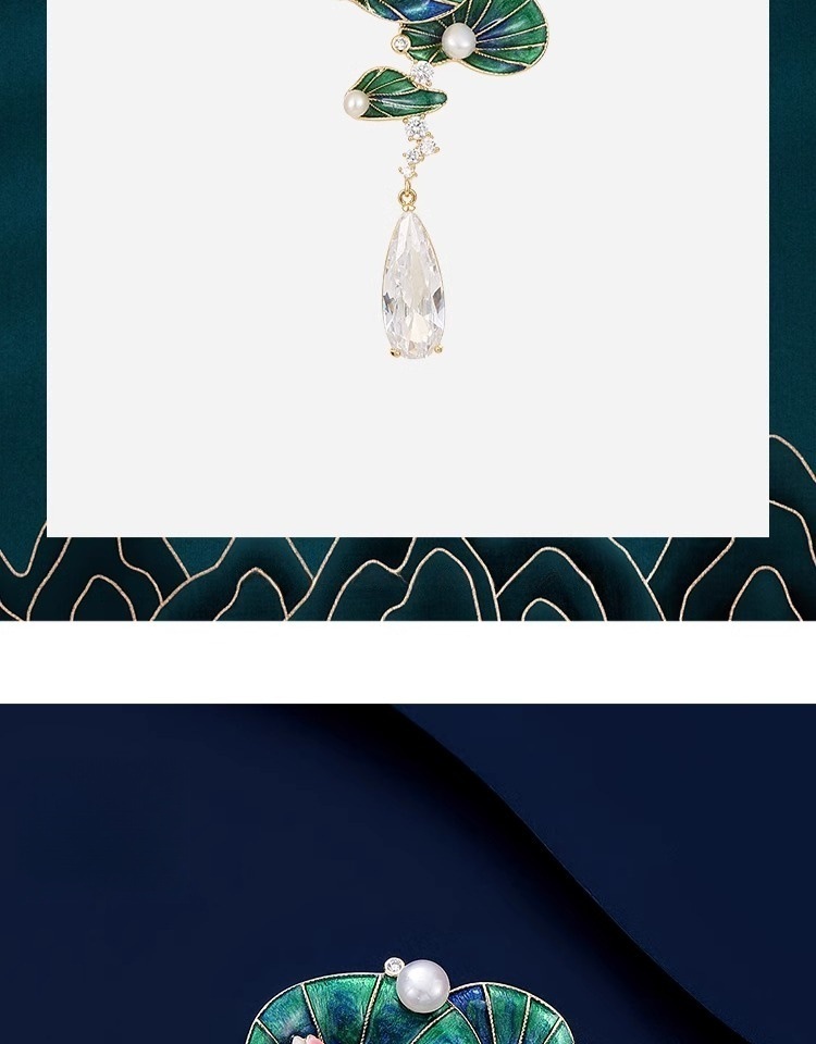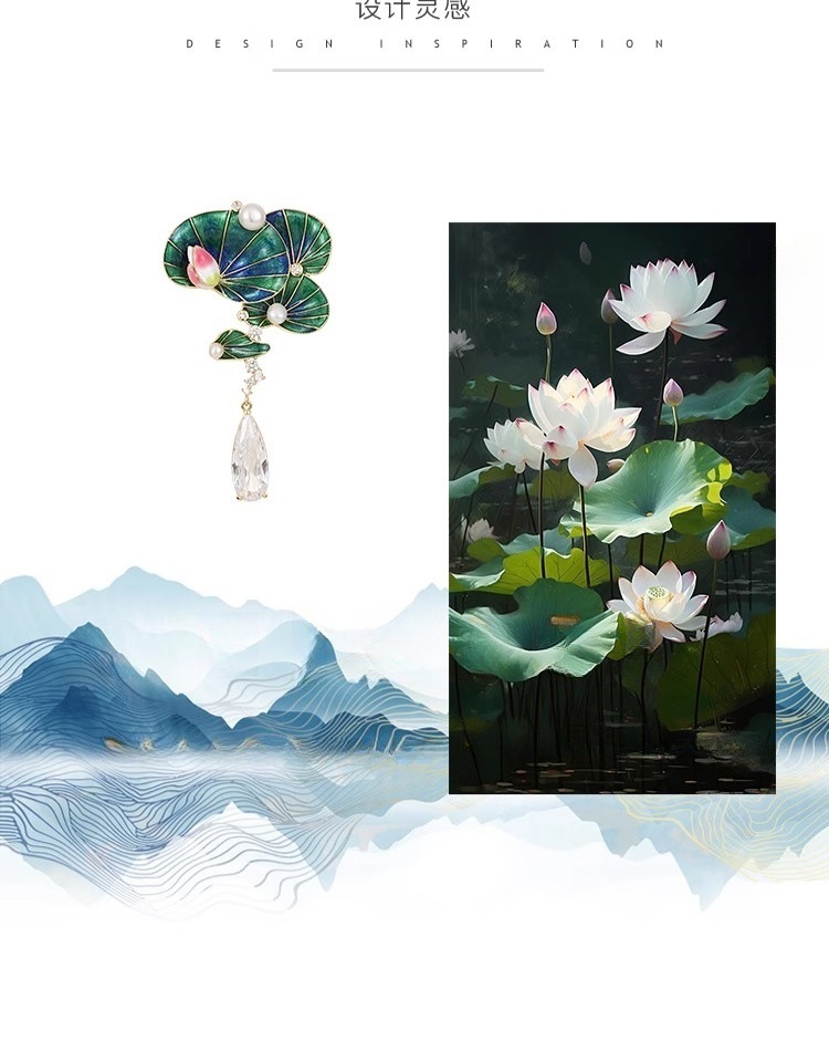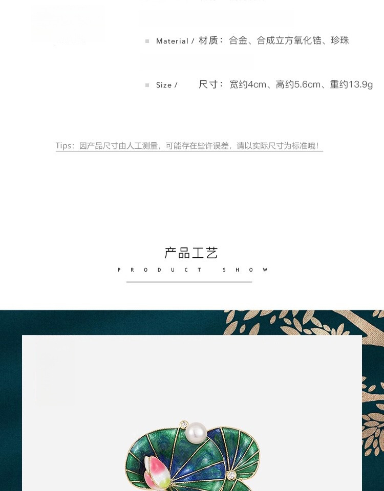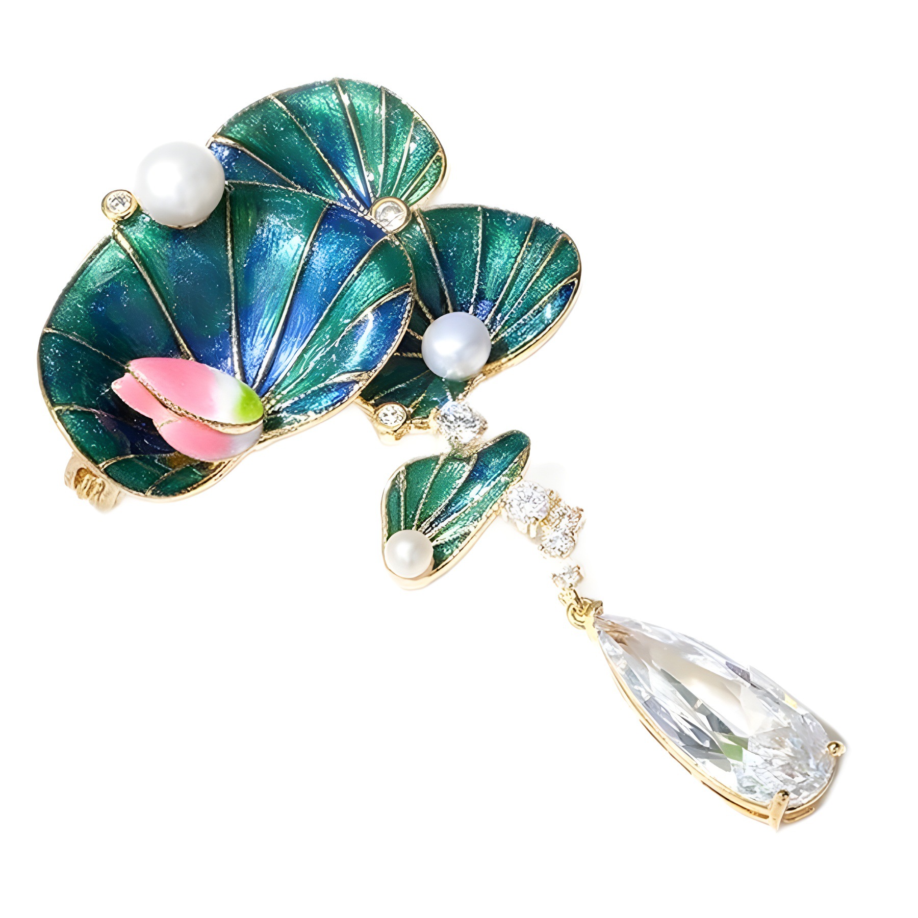 国风好运莲莲胸针高档女荷花睡莲别针新中式珍珠胸花西装旗袍配饰