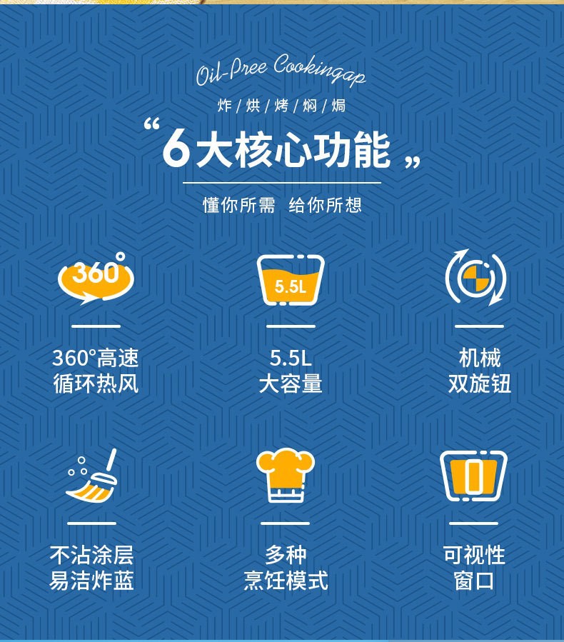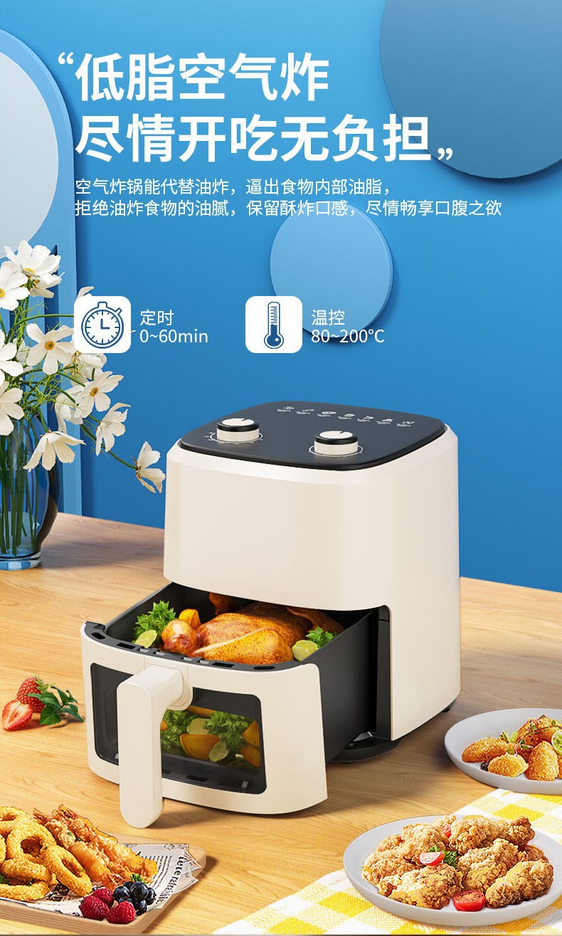 智能空气炸锅5.5L家用多功能无油无烟可视大容量薯条机电炸锅批发