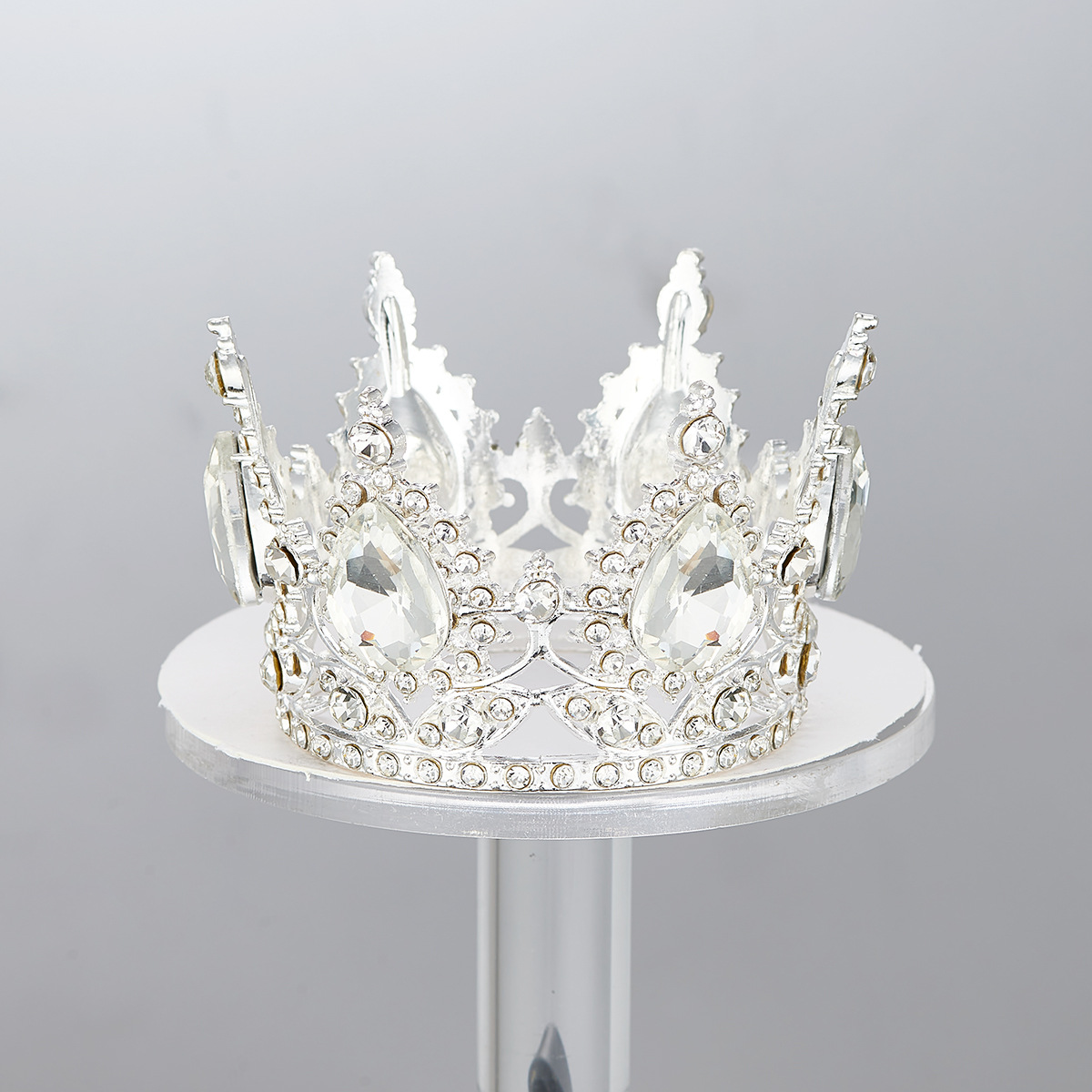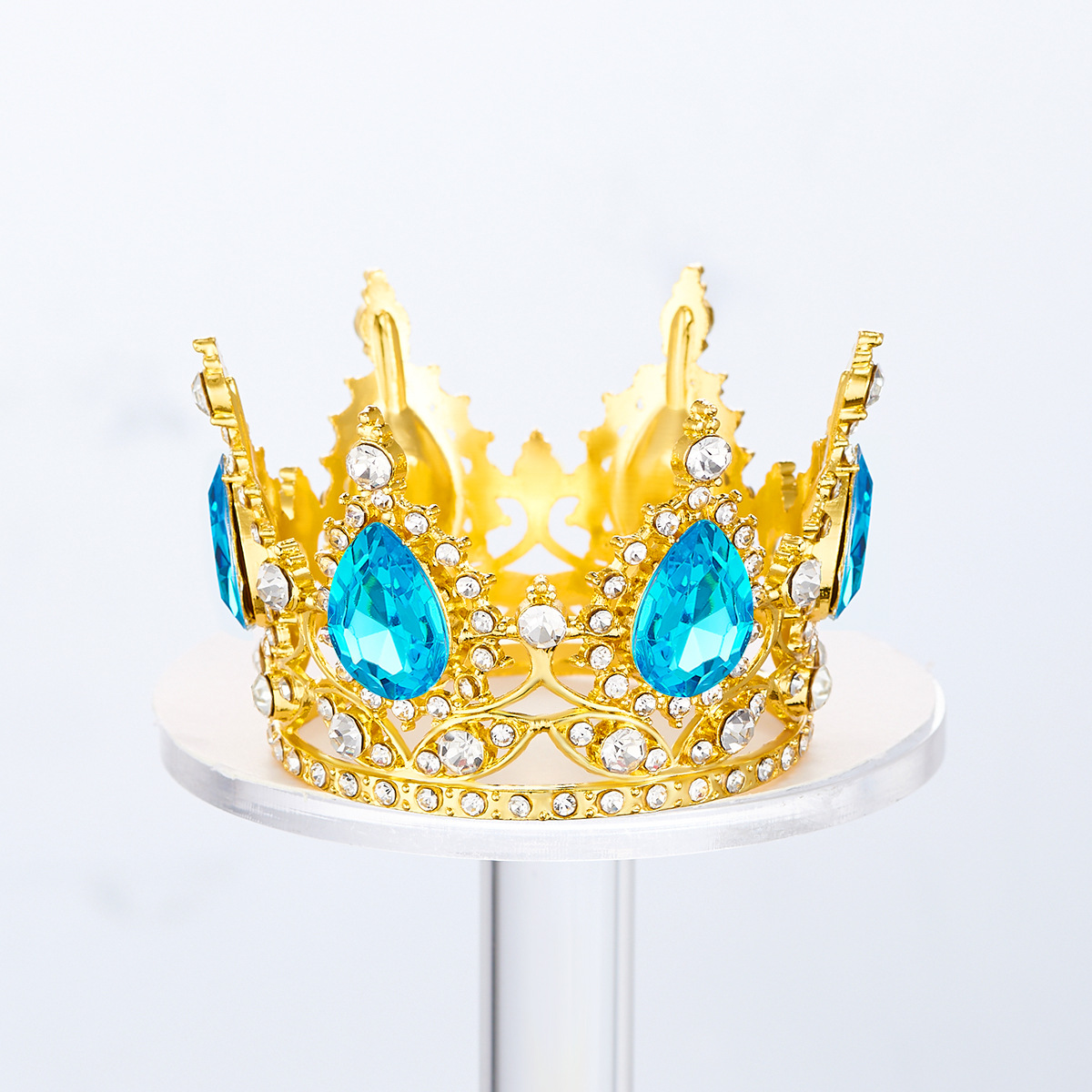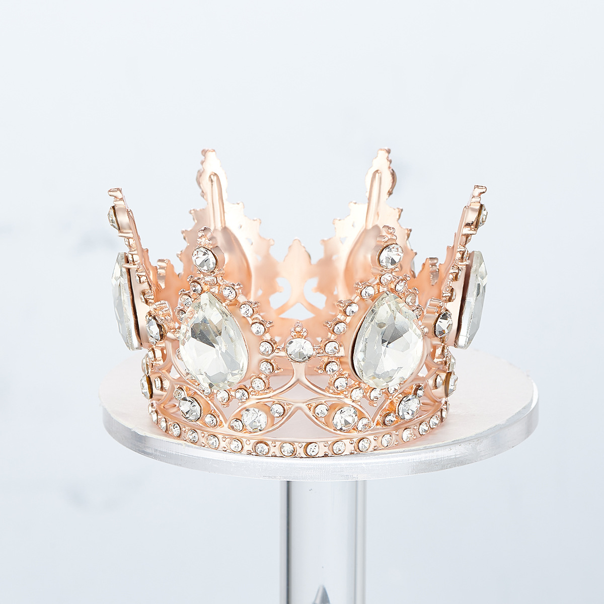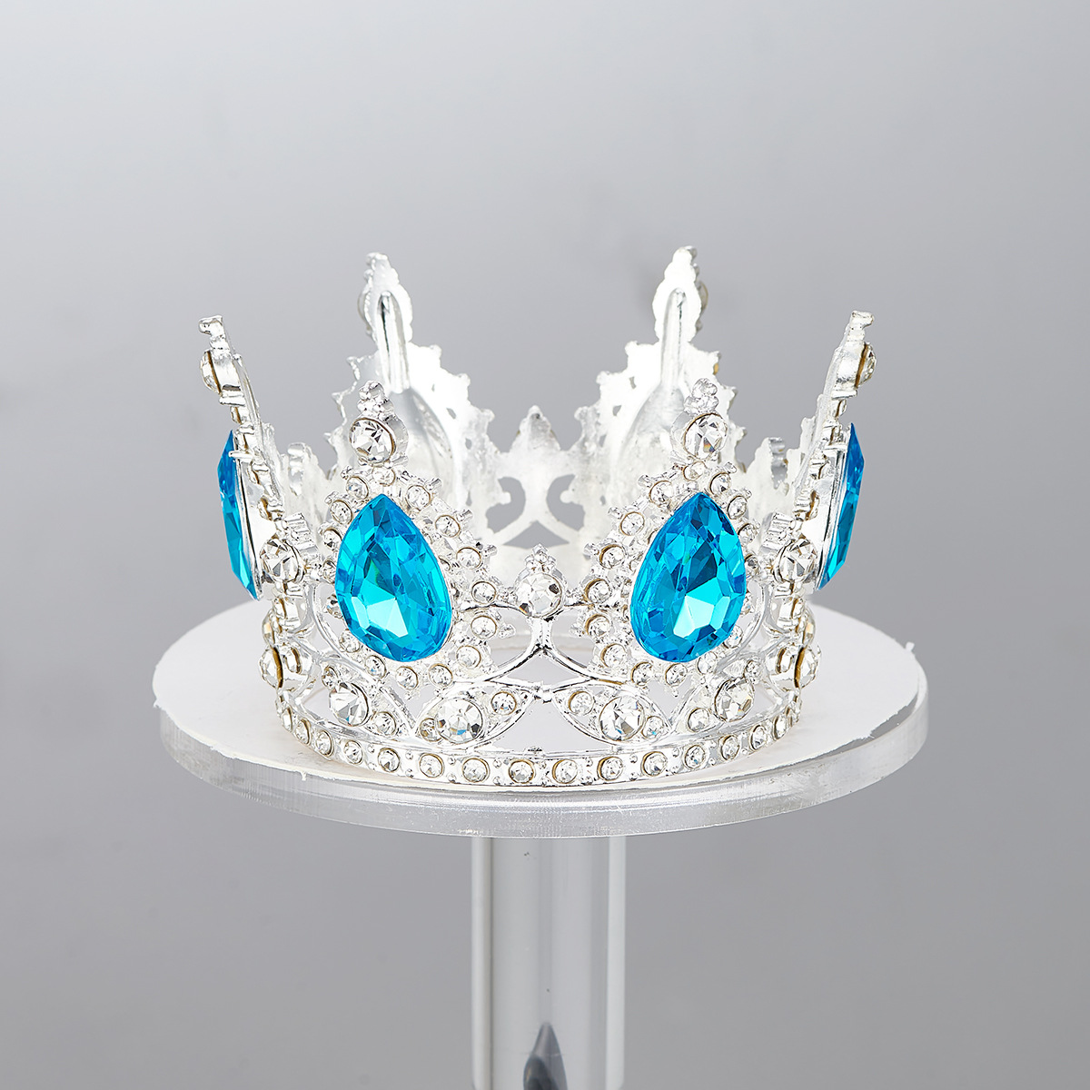 跨境新款6颗水滴小圆皇冠生日蛋糕鲜花装饰合金水钻王冠摆件配饰