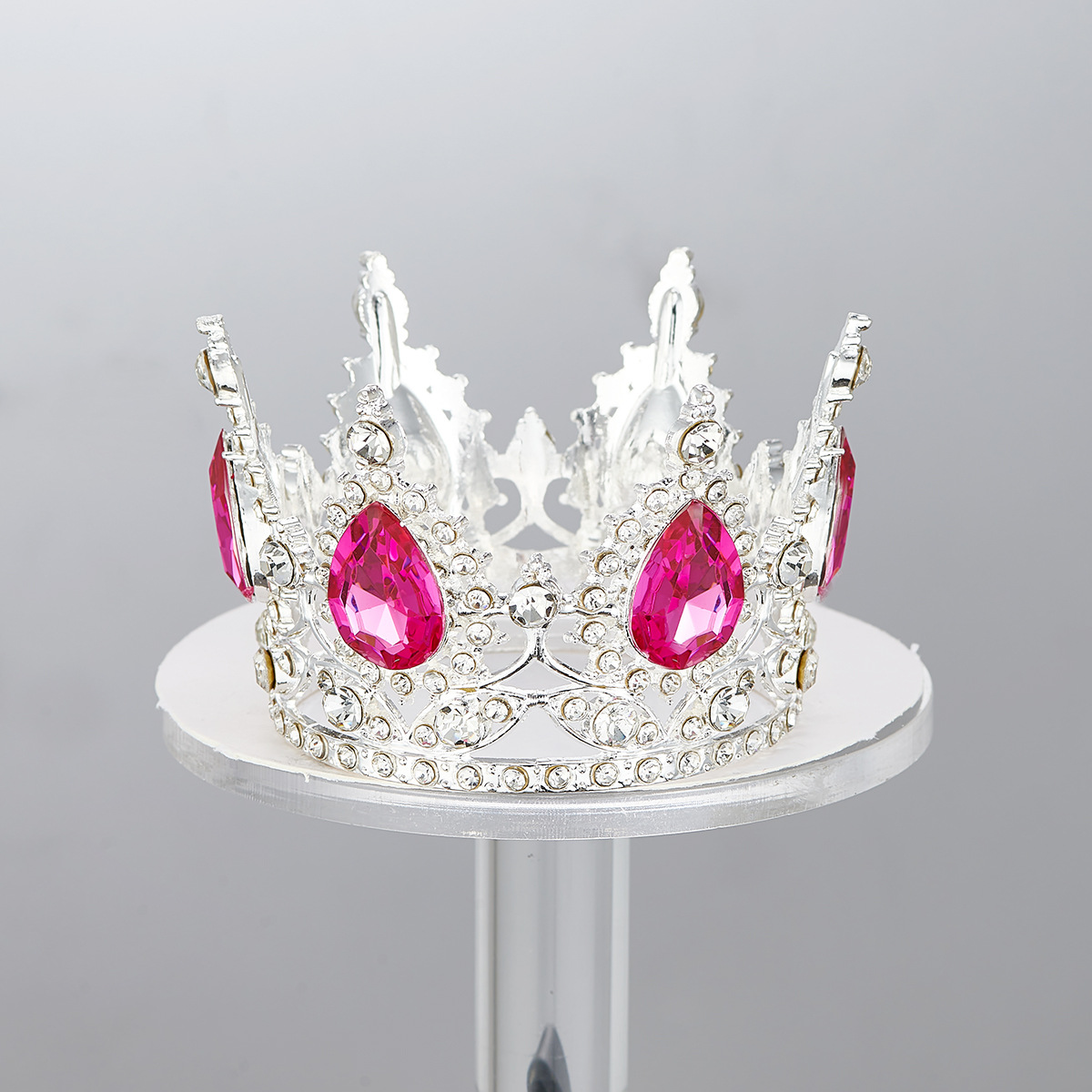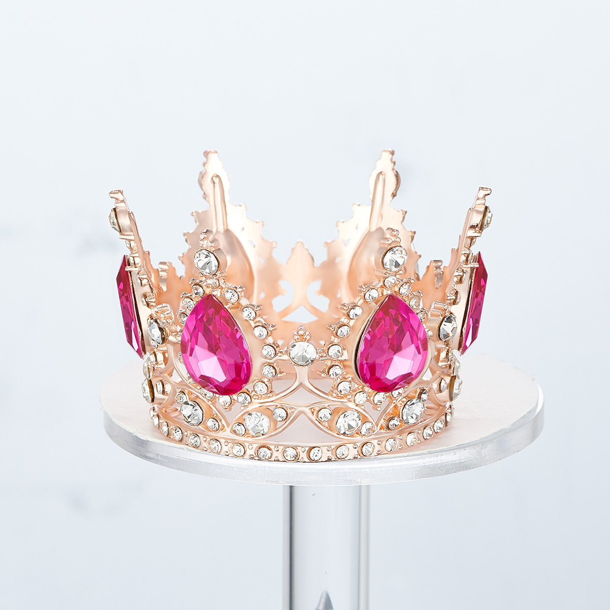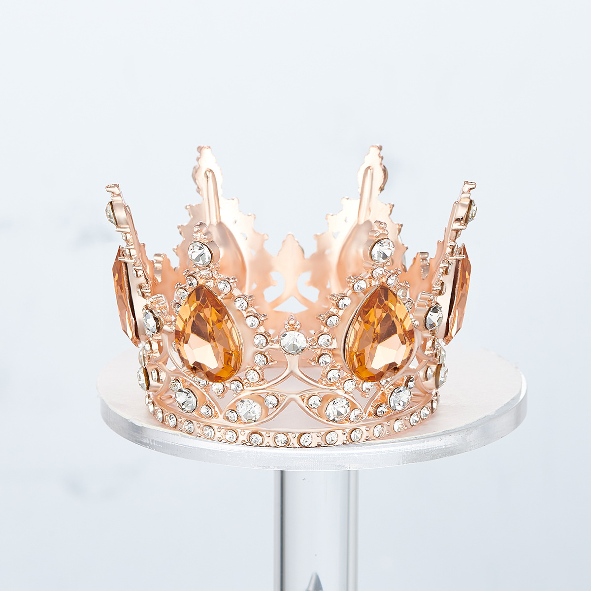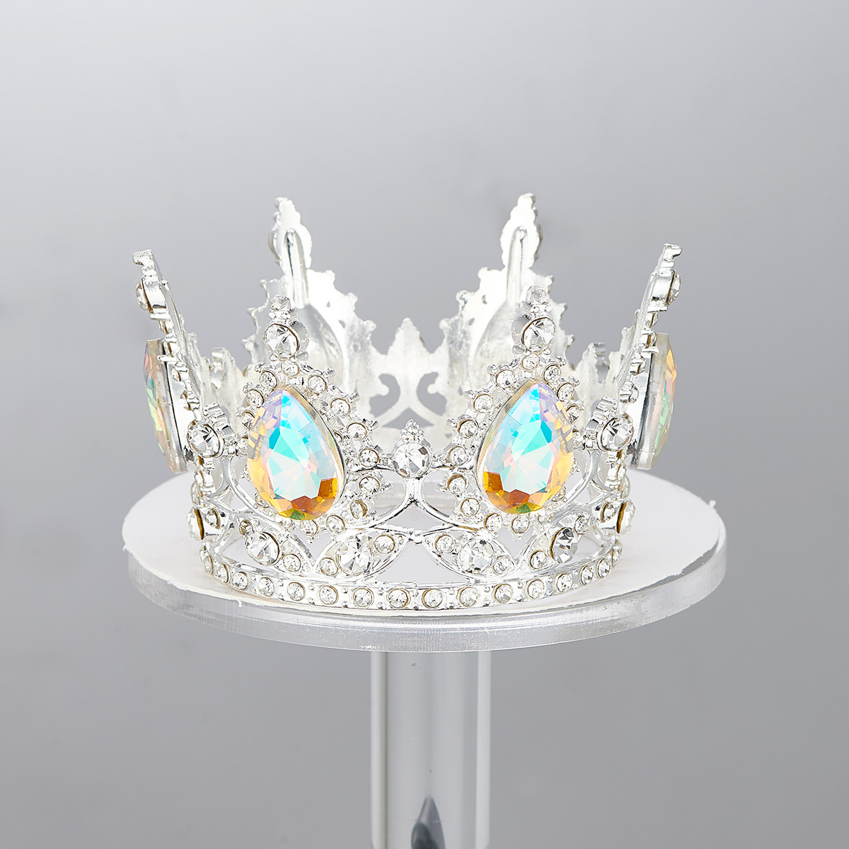 跨境新款6颗水滴小圆皇冠生日蛋糕鲜花装饰合金水钻王冠摆件配饰