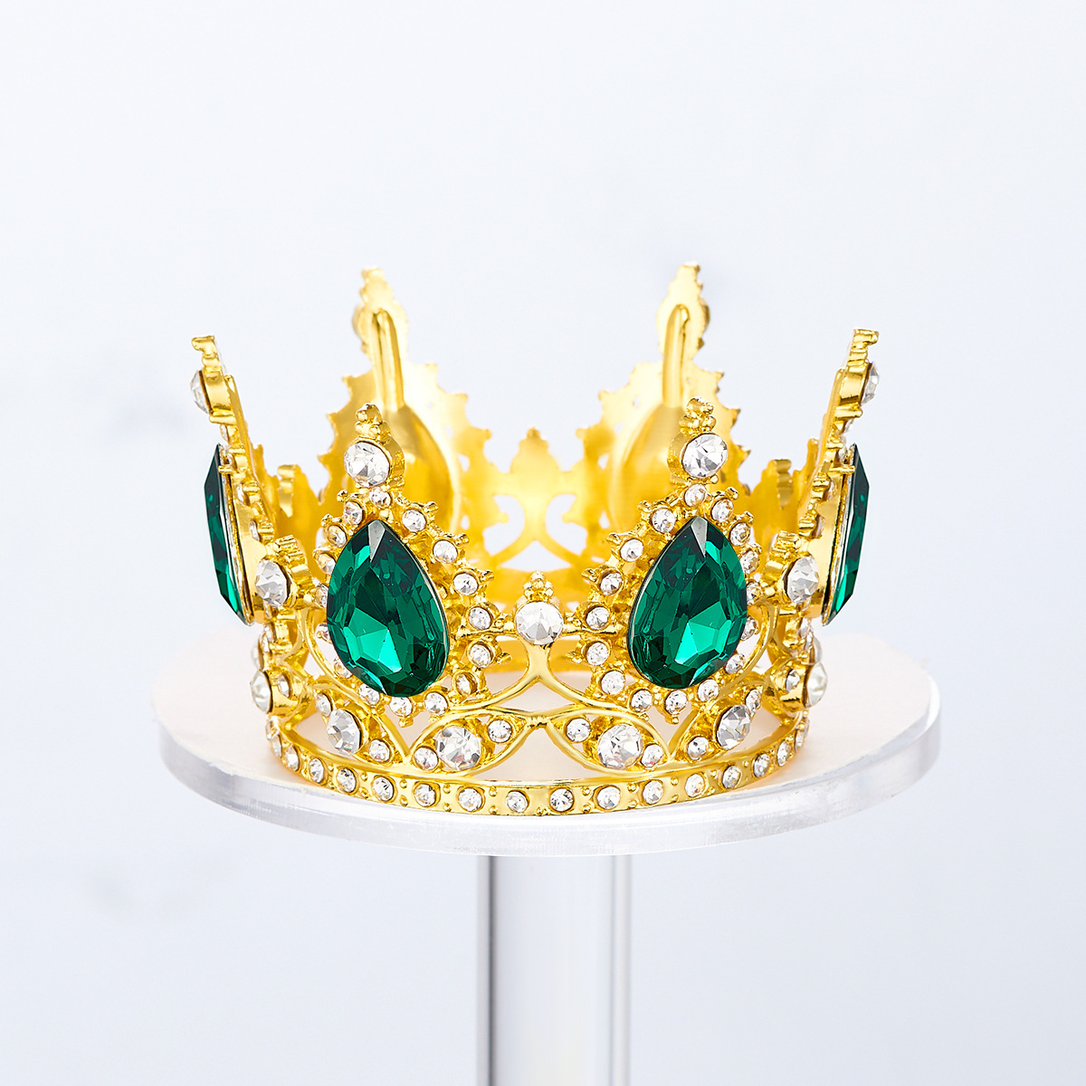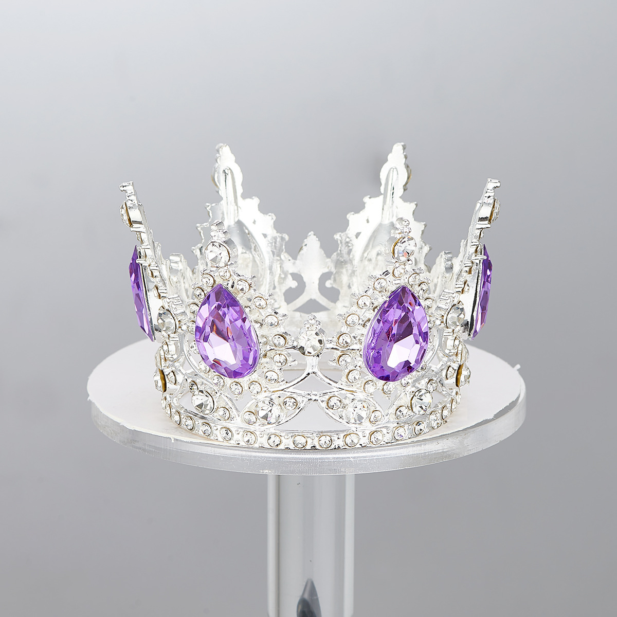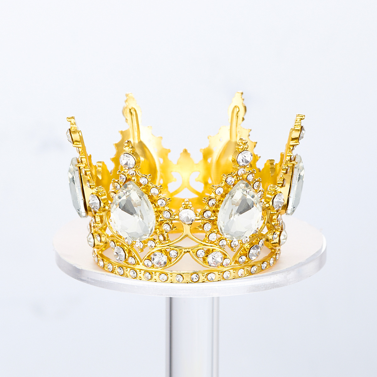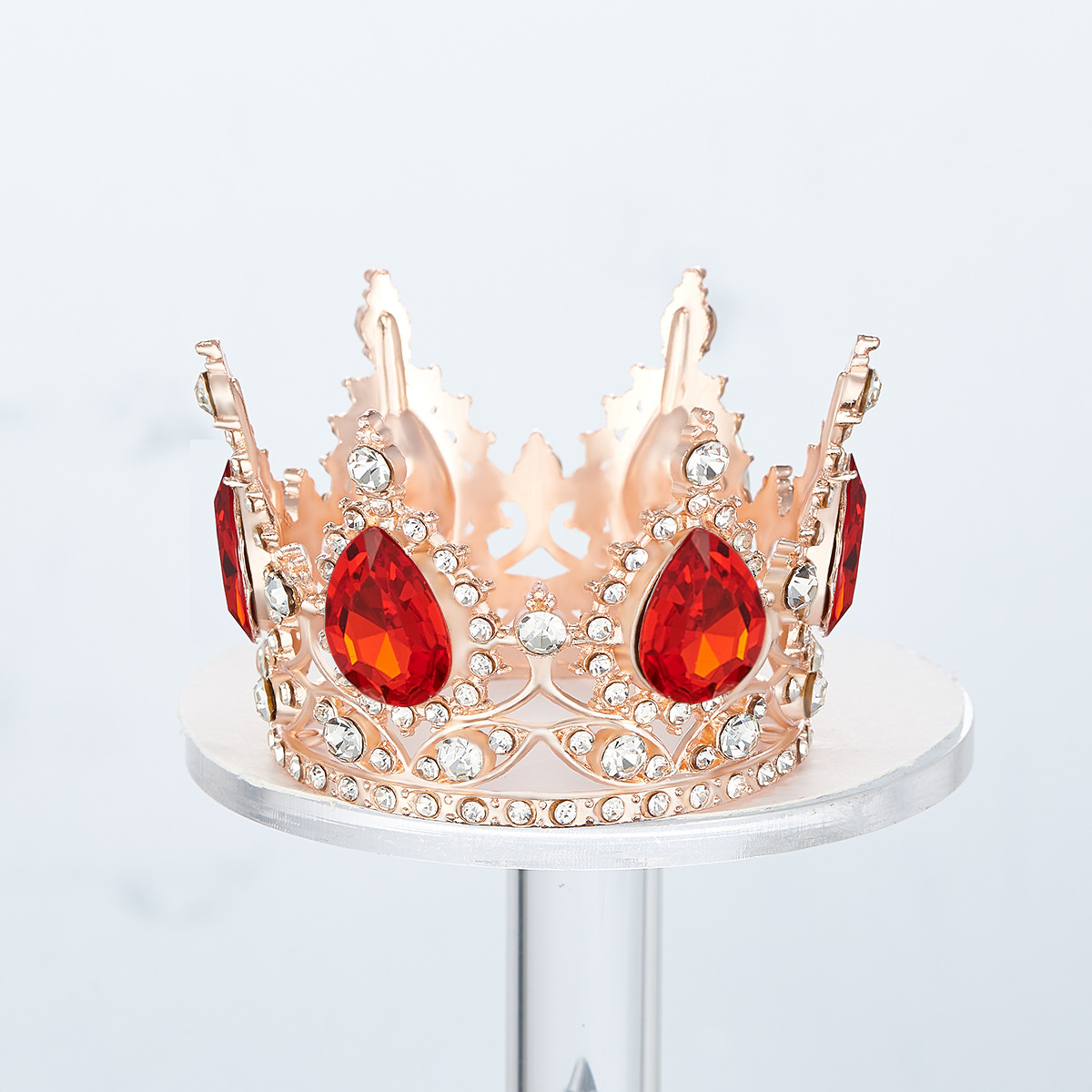 跨境新款6颗水滴小圆皇冠生日蛋糕鲜花装饰合金水钻王冠摆件配饰