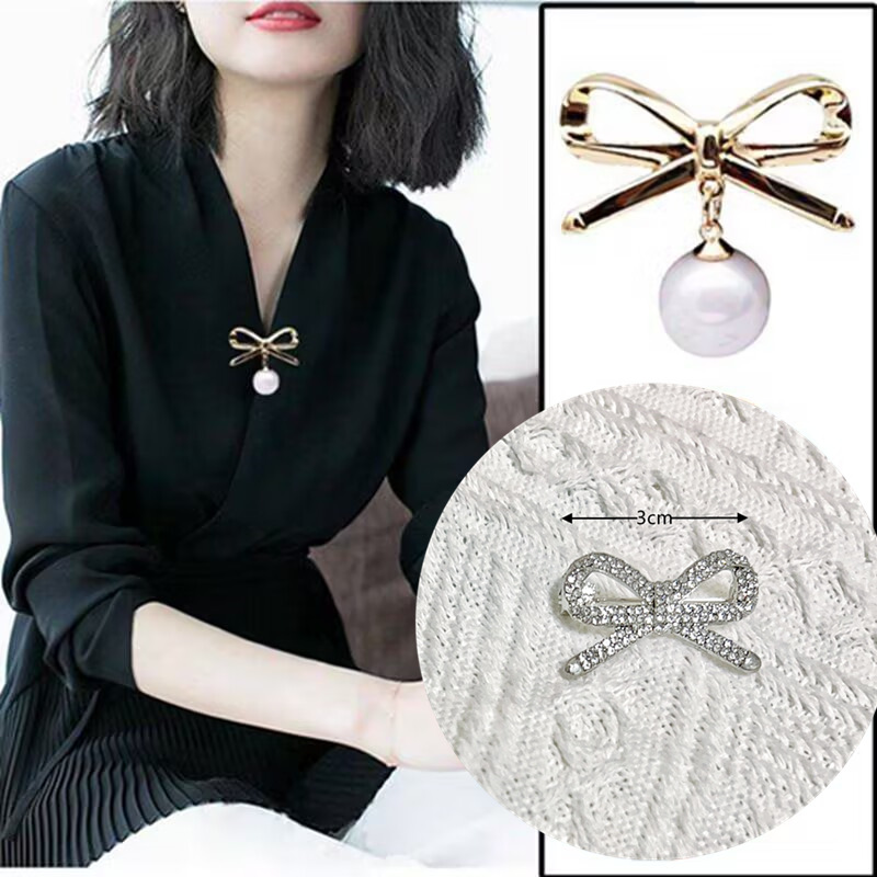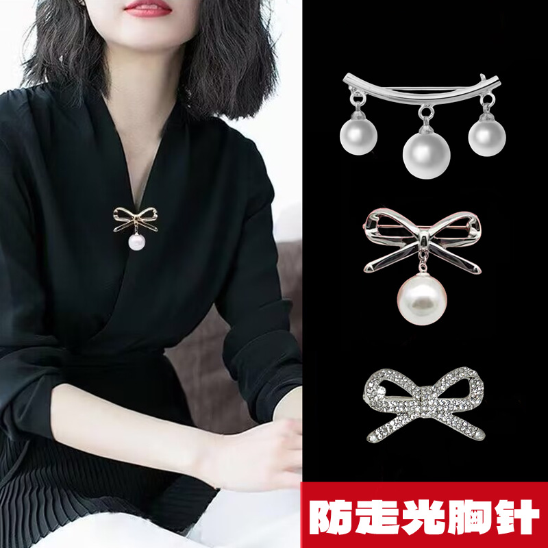 防走光胸针女蝴蝶结领口别针固定衣服配饰小香风珍珠领针收腰神器