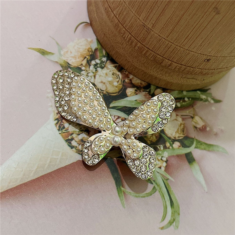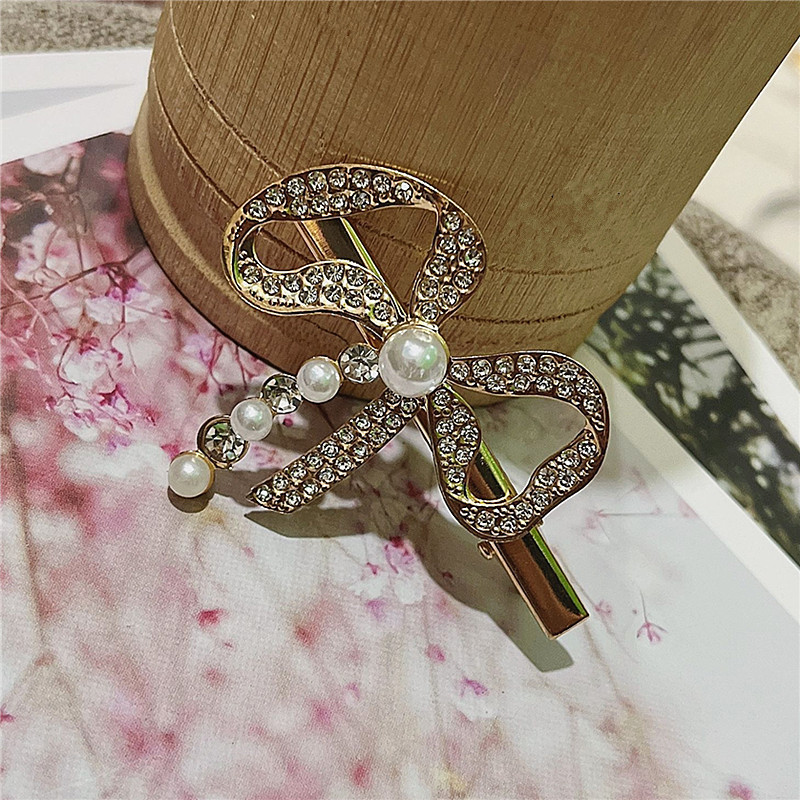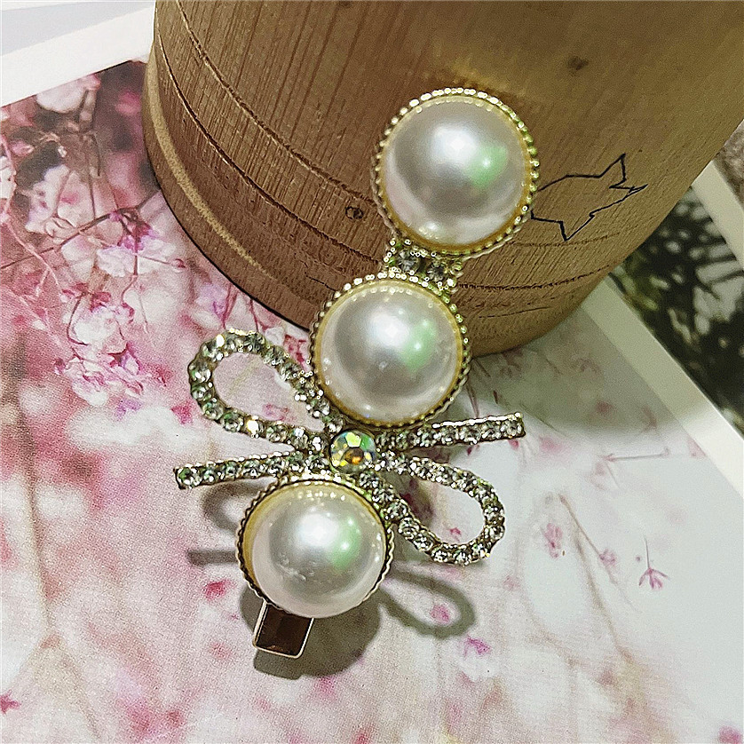 韩版ins网红蝴蝶结发夹珍珠发卡 少女心简约新款鸭嘴夹头饰侧边夹