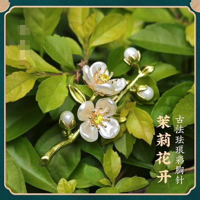 文艺绿色茉莉胸针植物花朵珍珠胸花复古气质西装防走光扣别针配饰
