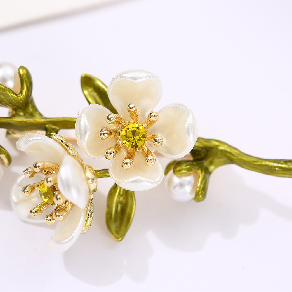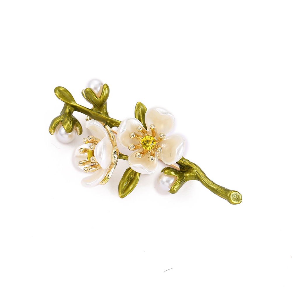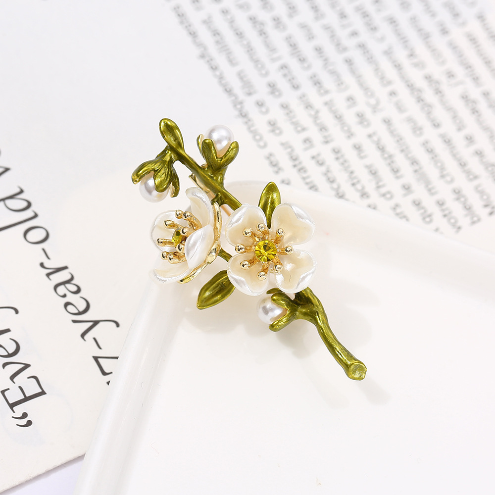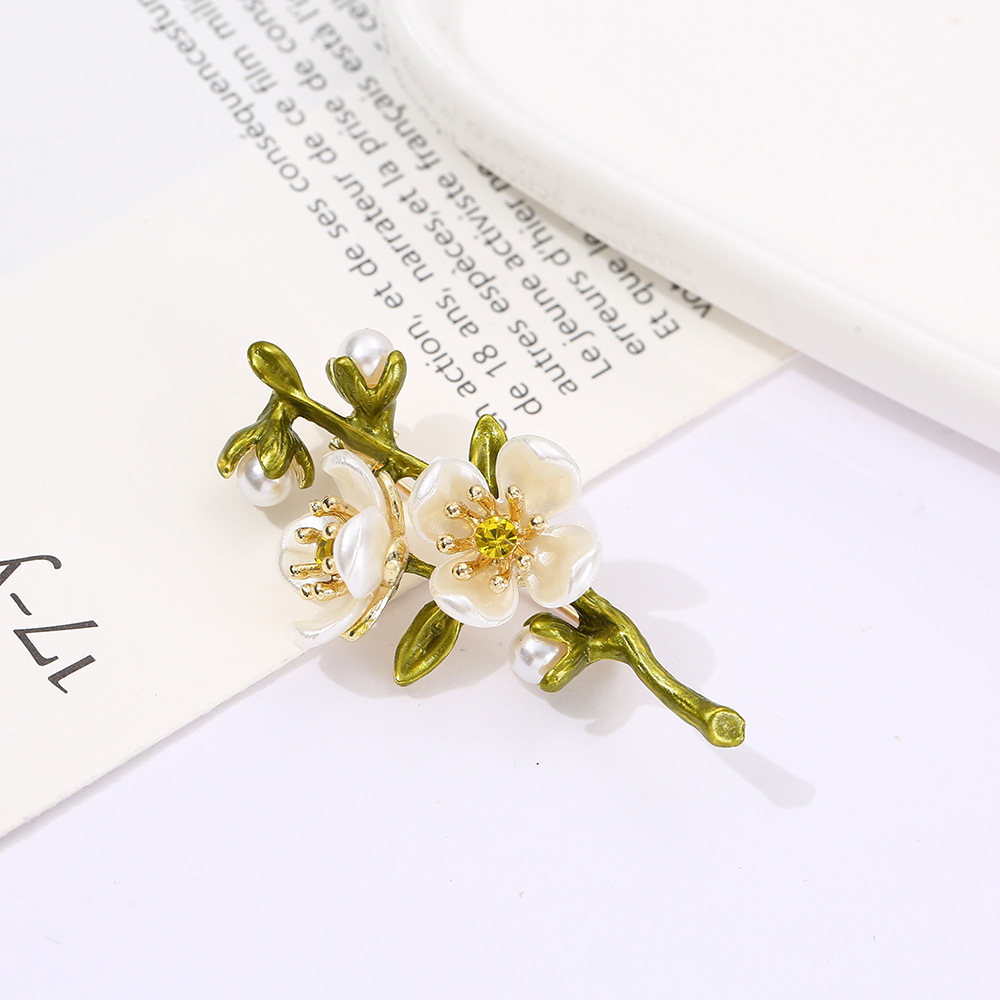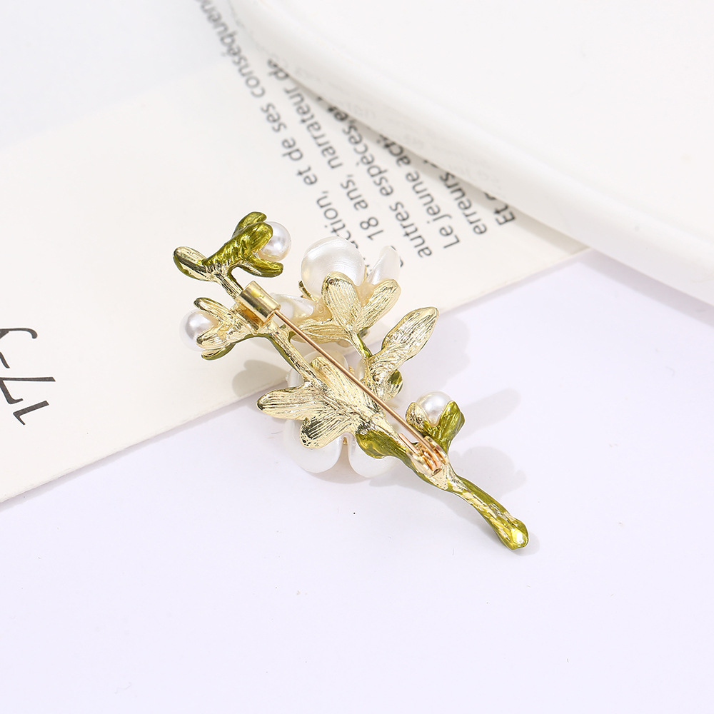 artistic green jasmine brooch plant flower pearl corsage retro temperament suit anti-unwanted-exposure buckle pin accessories