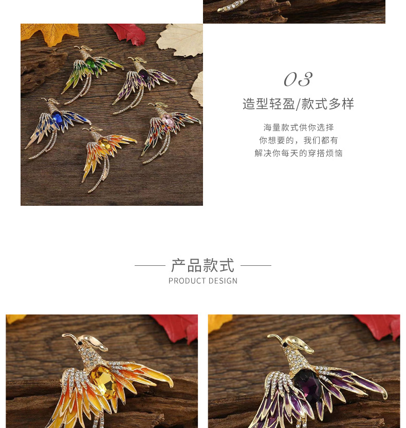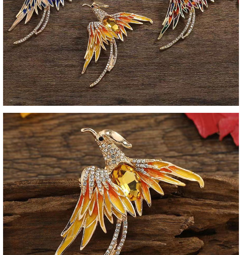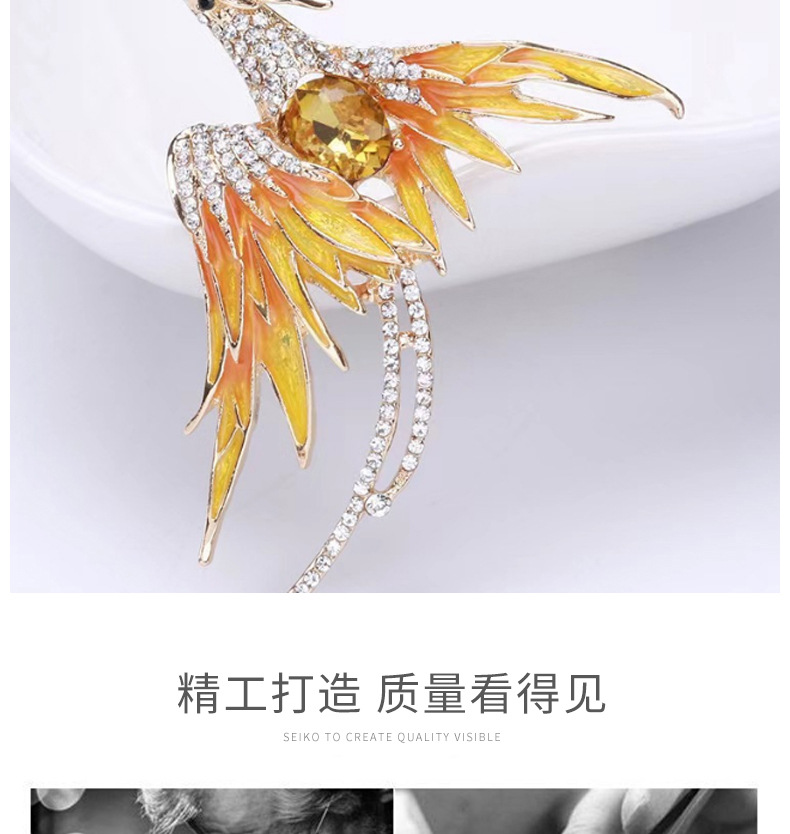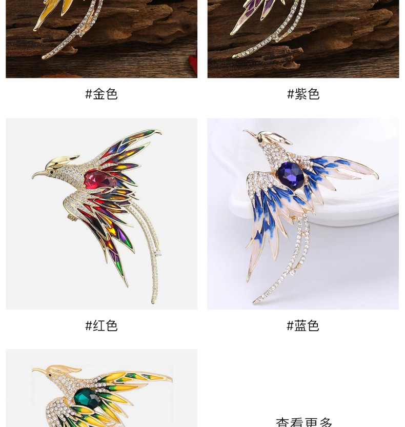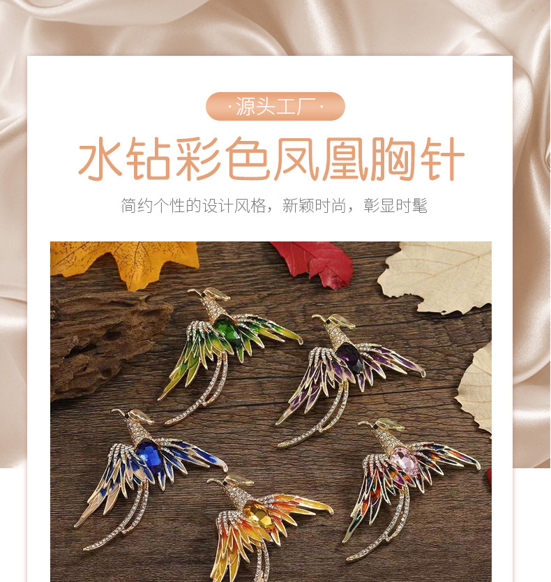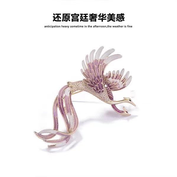 时尚精致凤凰胸针合金水钻百鸟朝凤长尾凤凰别针彩色画油西装配饰