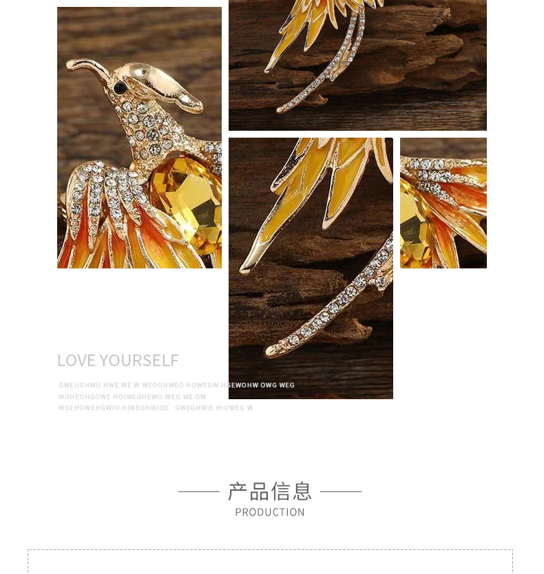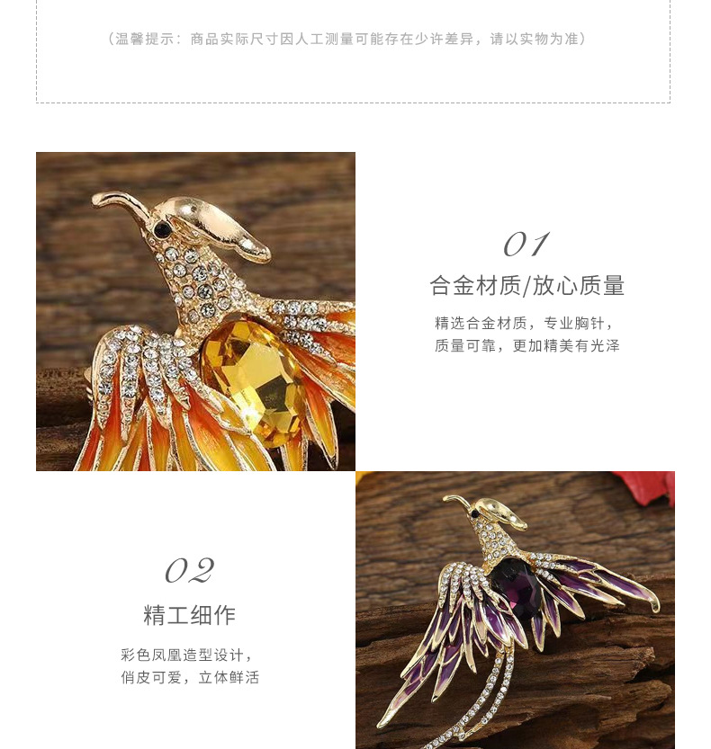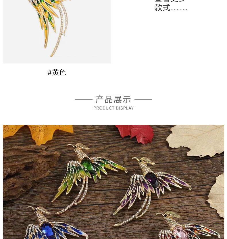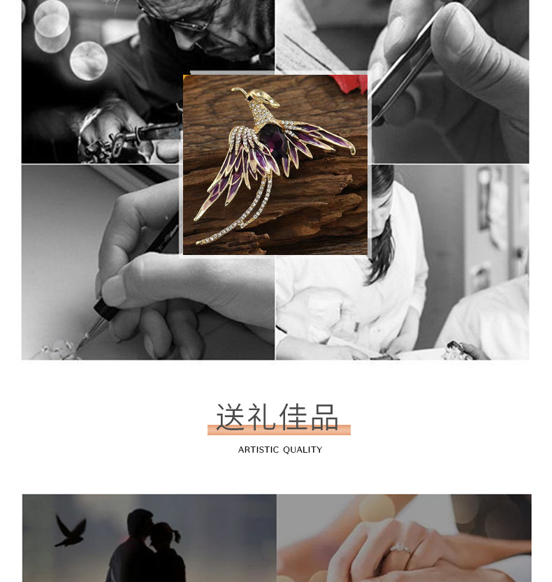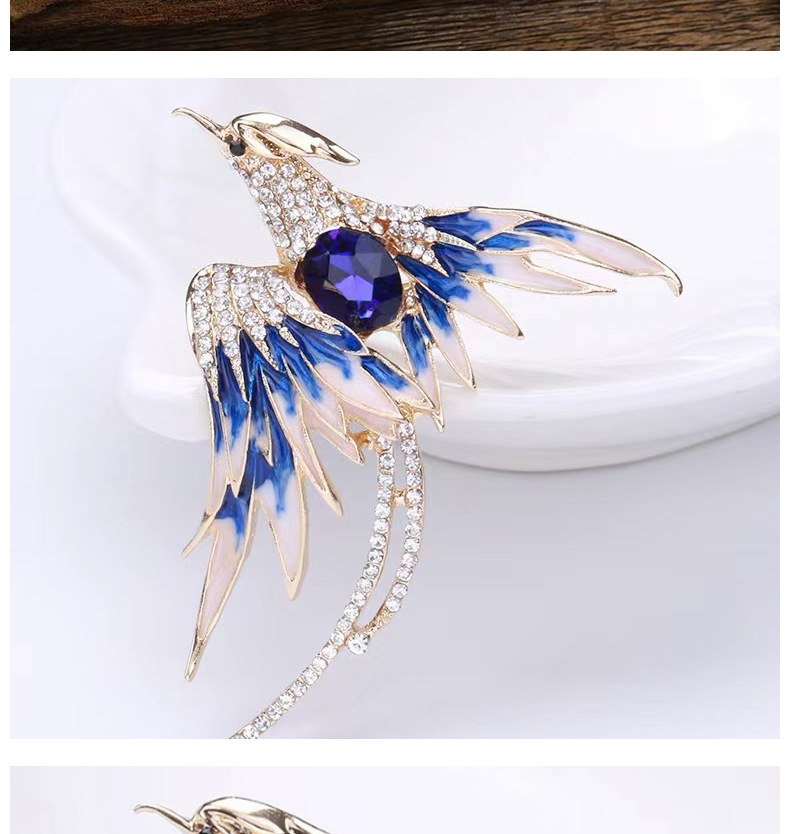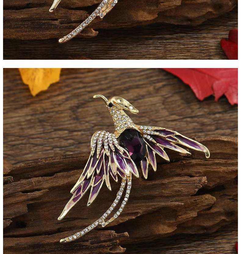 时尚精致凤凰胸针合金水钻百鸟朝凤长尾凤凰别针彩色画油西装配饰