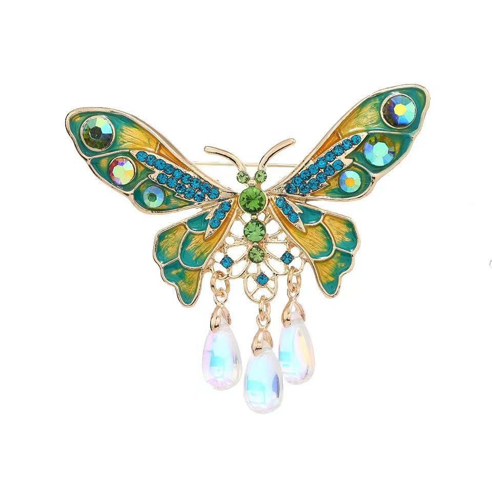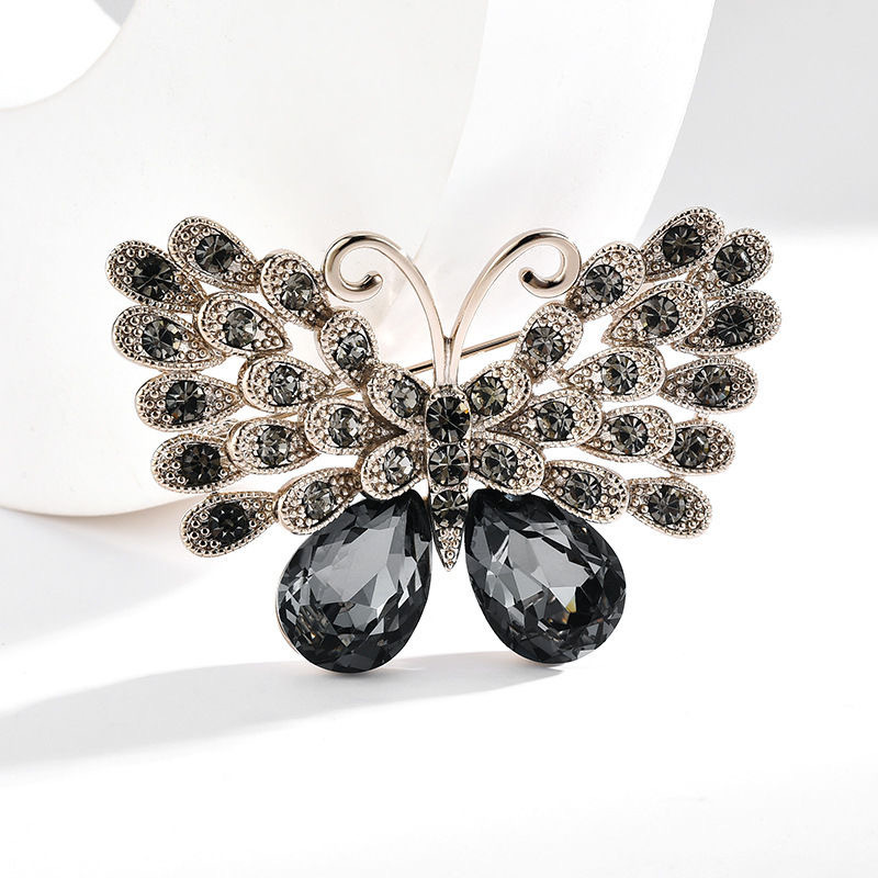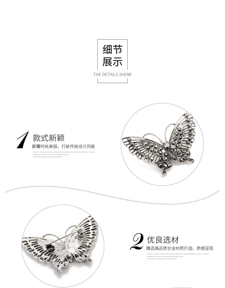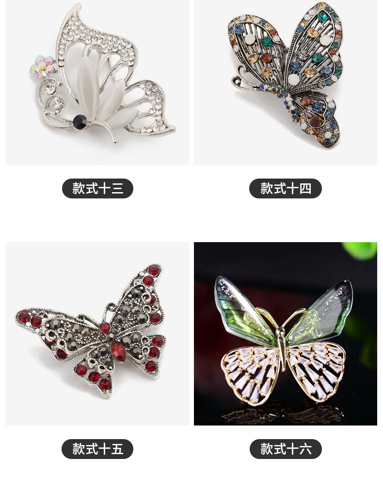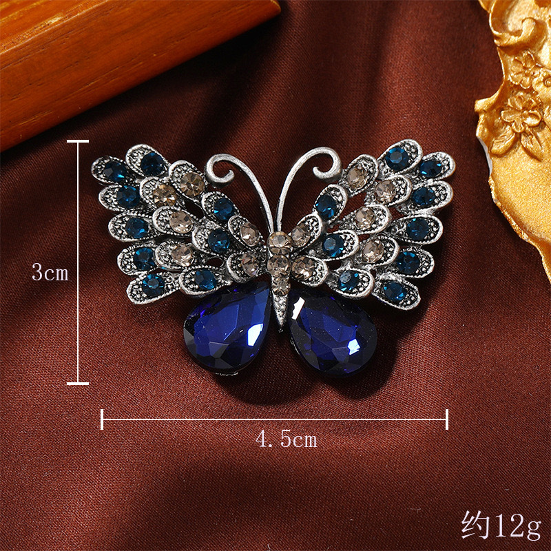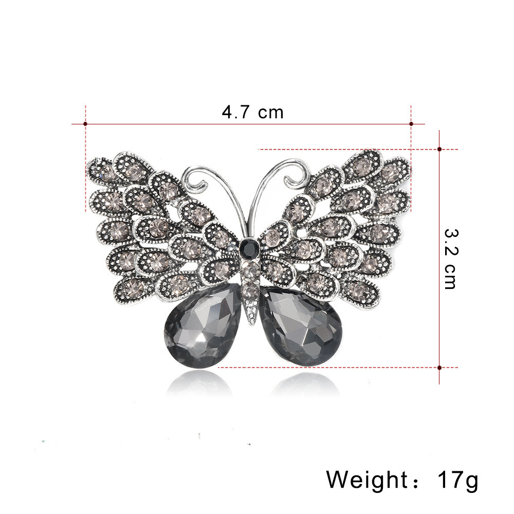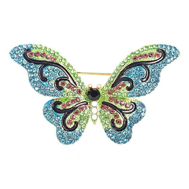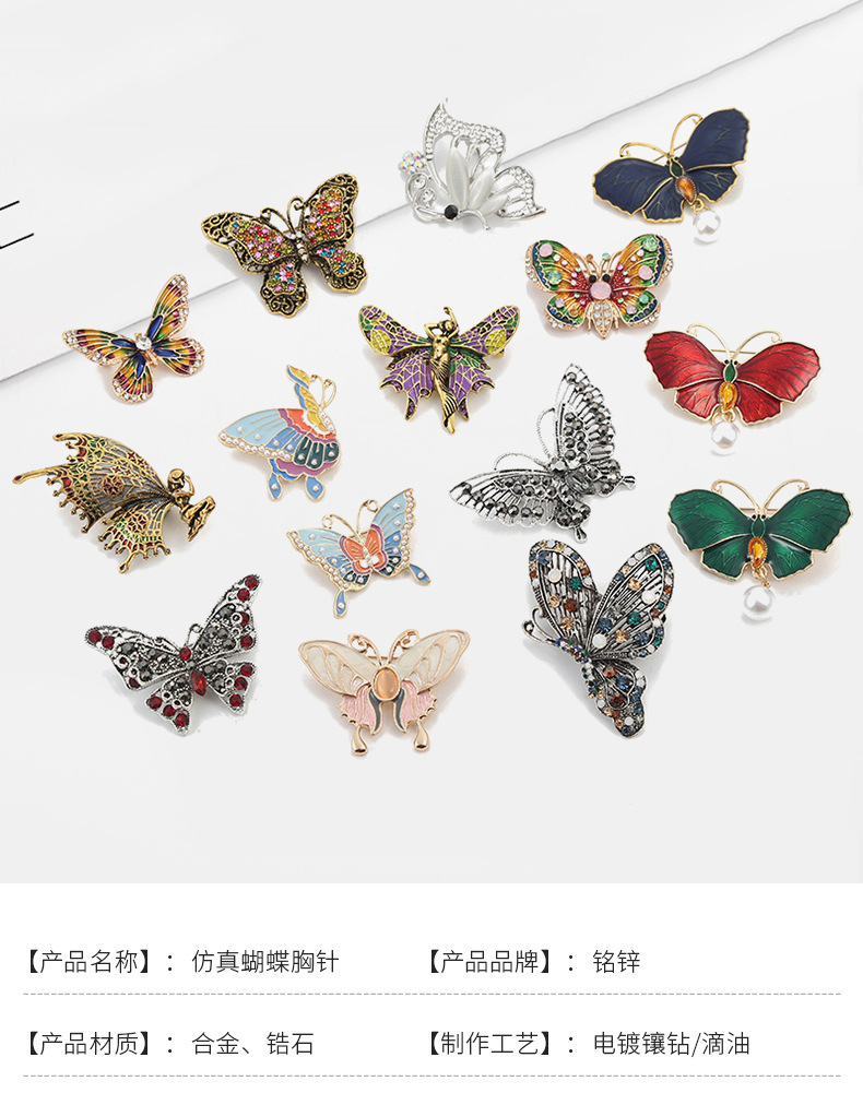 欧美仿真蝴蝶胸针合金立体镶钻高档别针高级复古质感服饰配饰批发