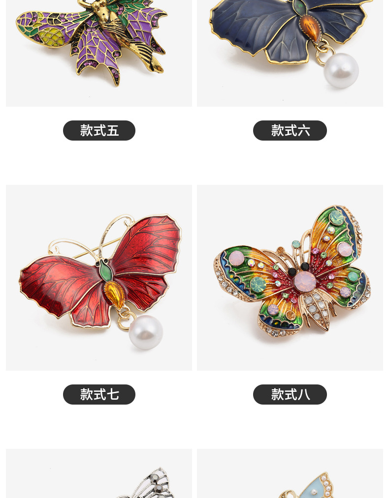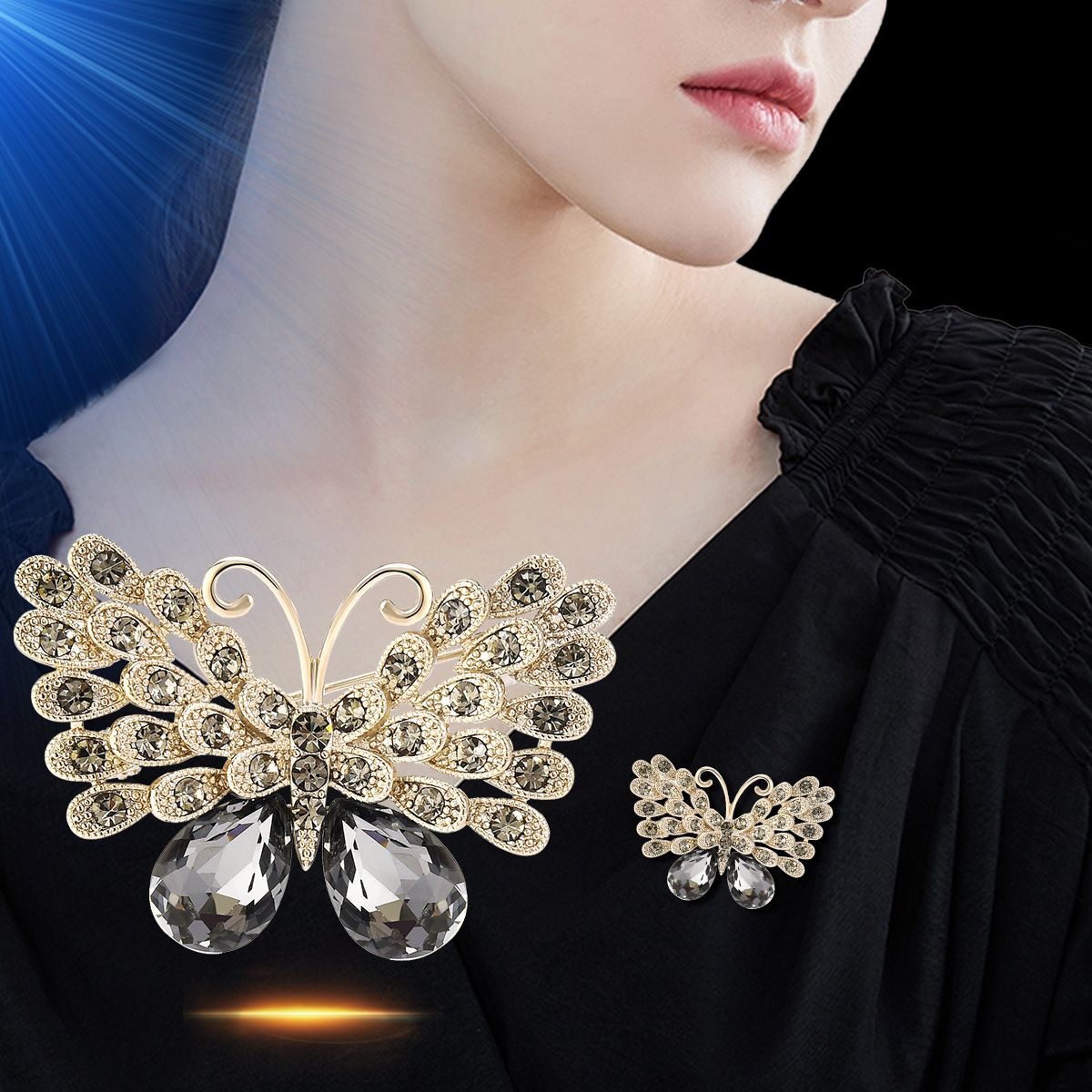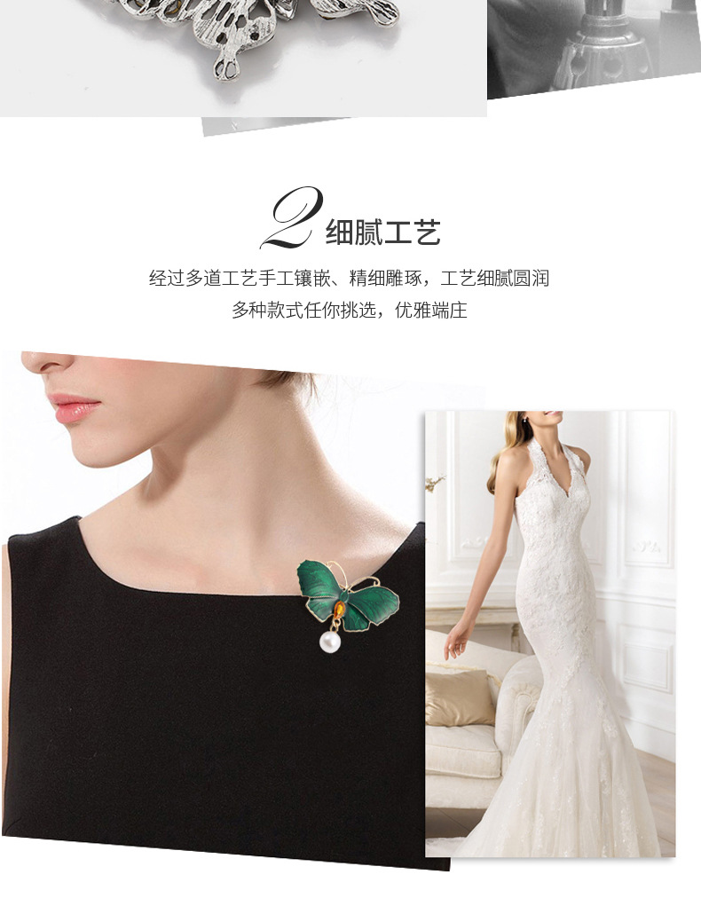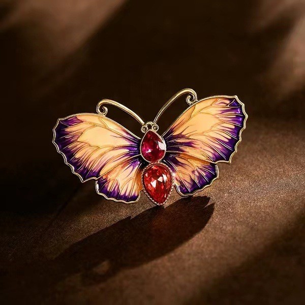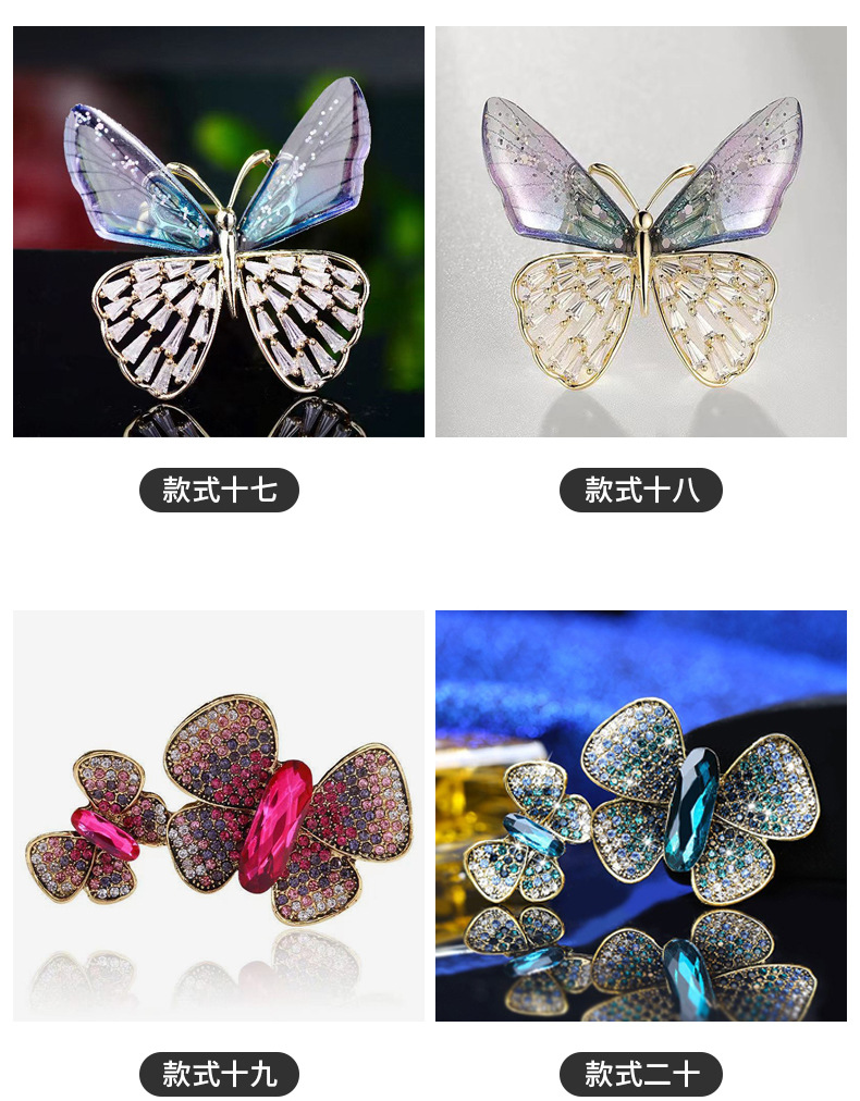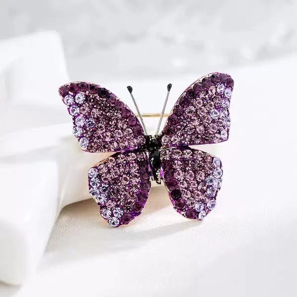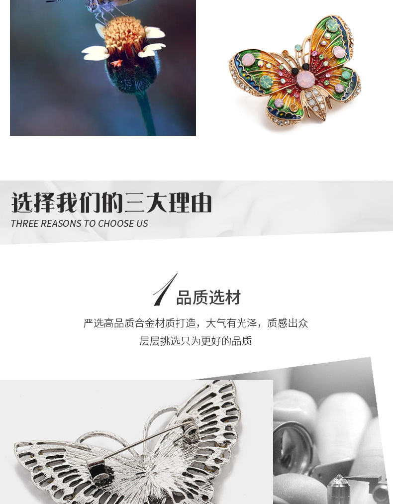 欧美仿真蝴蝶胸针合金立体镶钻高档别针高级复古质感服饰配饰批发