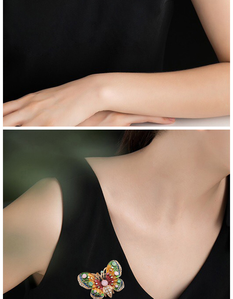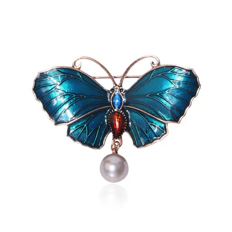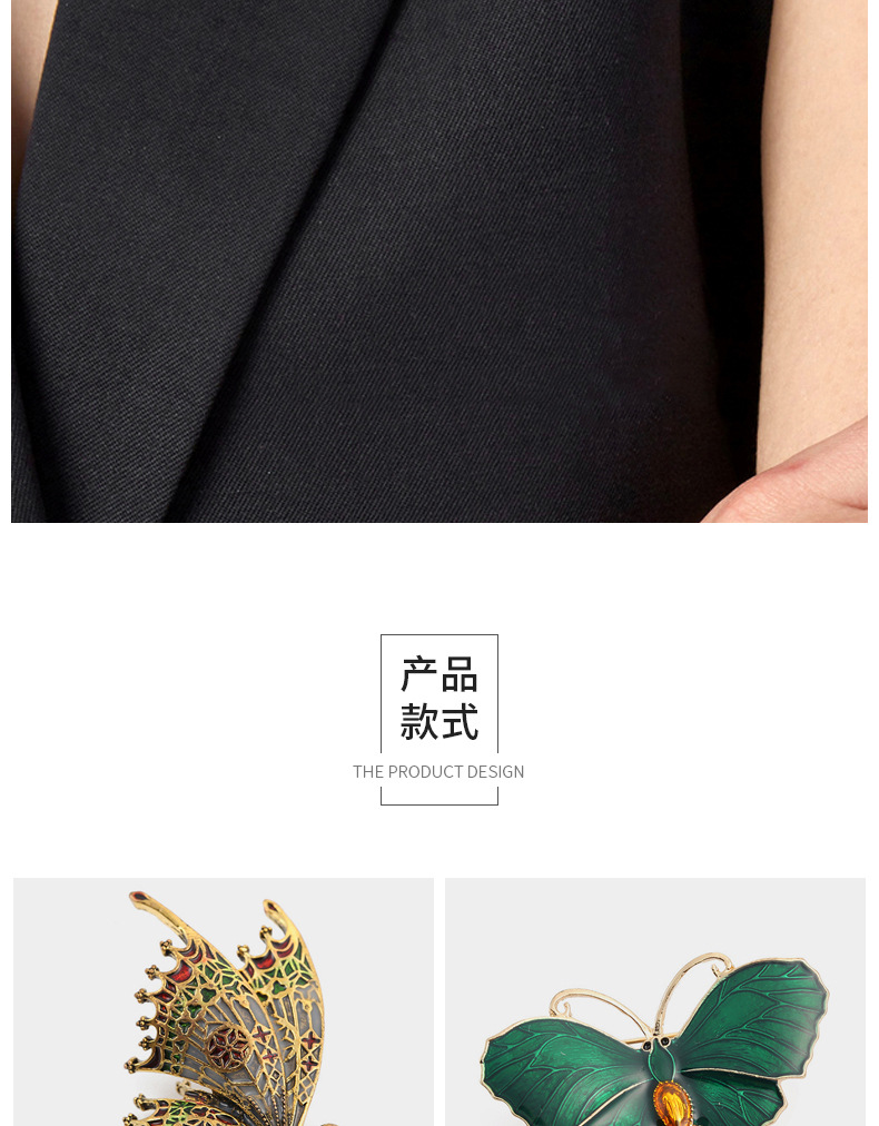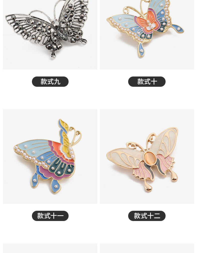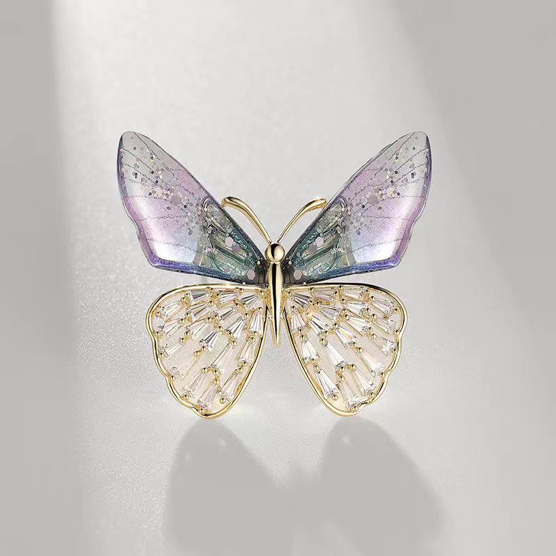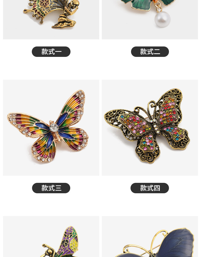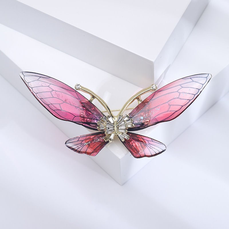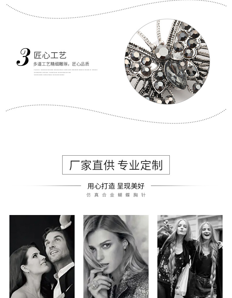 欧美仿真蝴蝶胸针合金立体镶钻高档别针高级复古质感服饰配饰批发