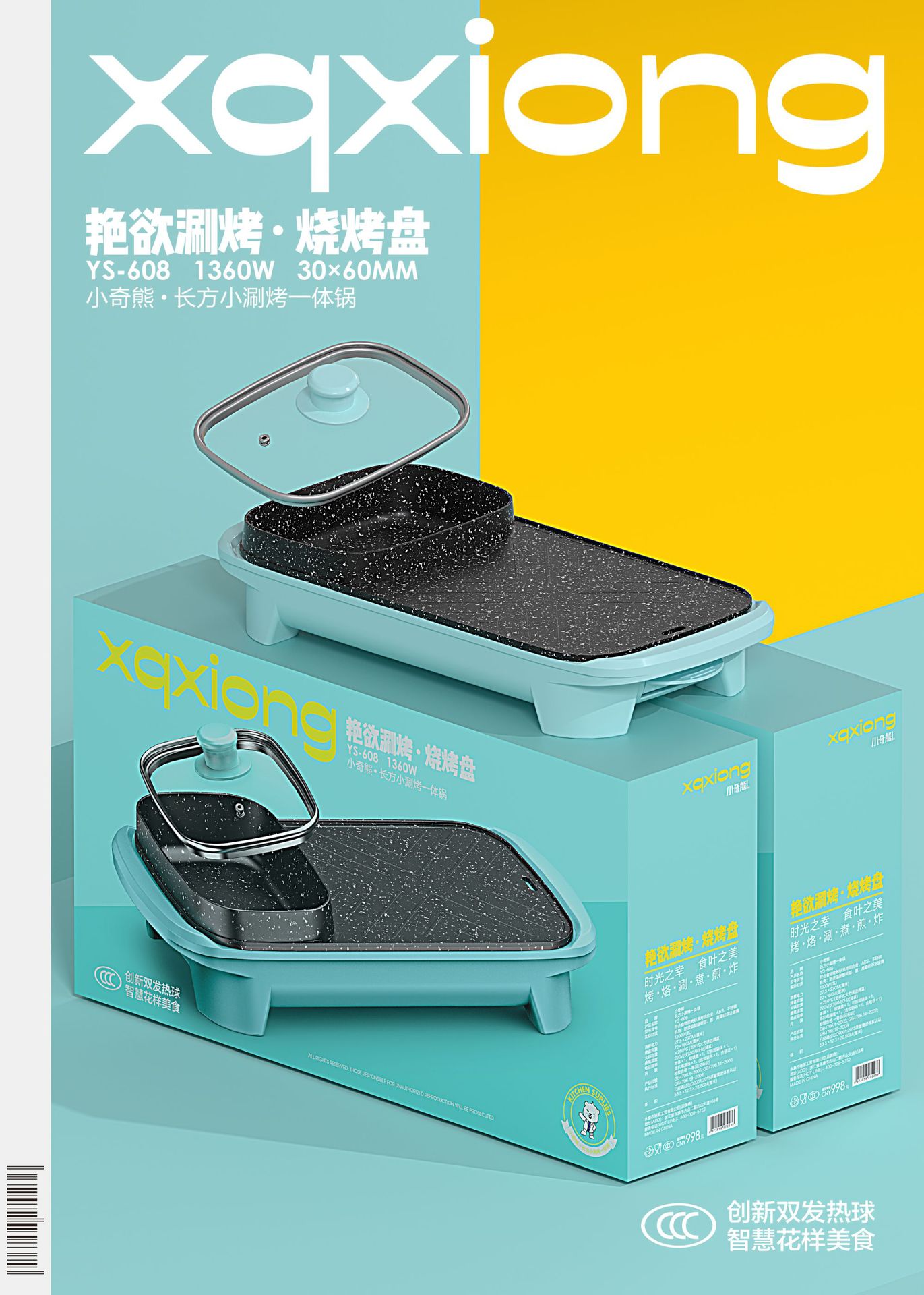 烤肉盘电烤盘烤肉锅烧烤炉不粘麦饭石多功能家用涮烤一体锅