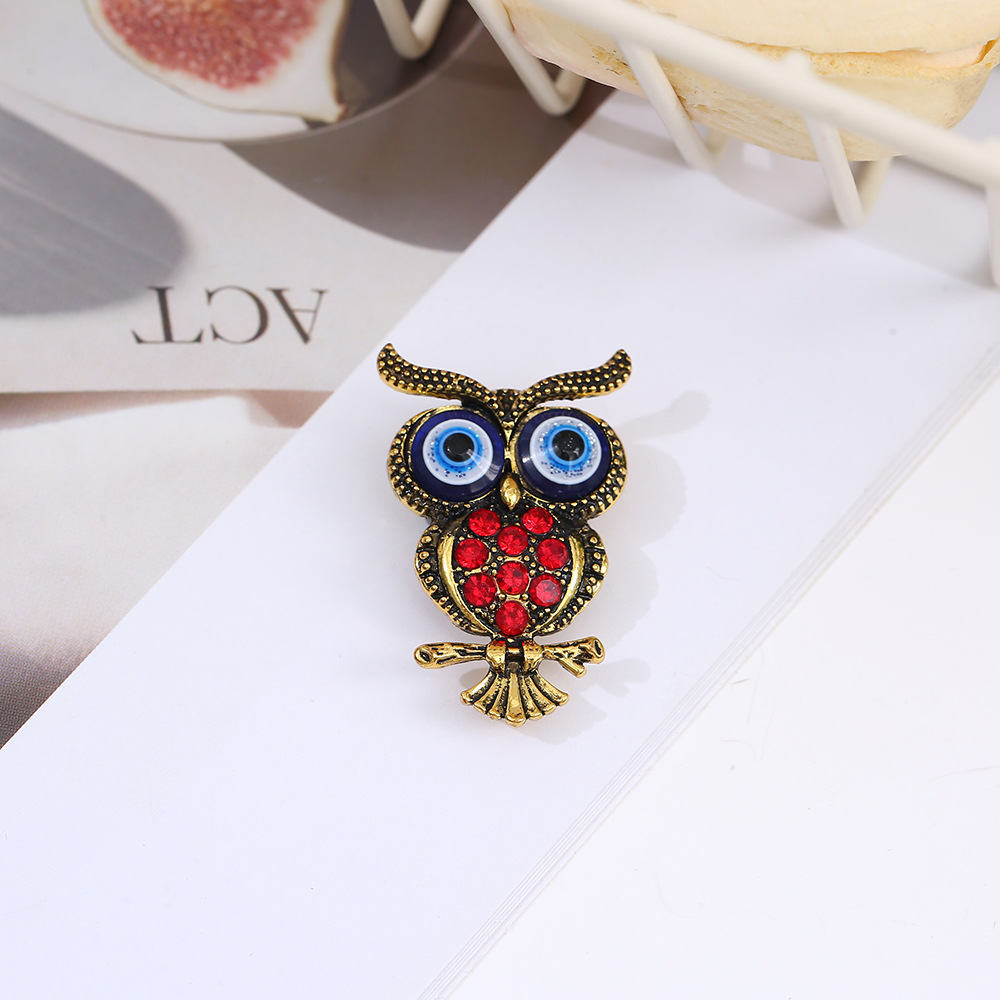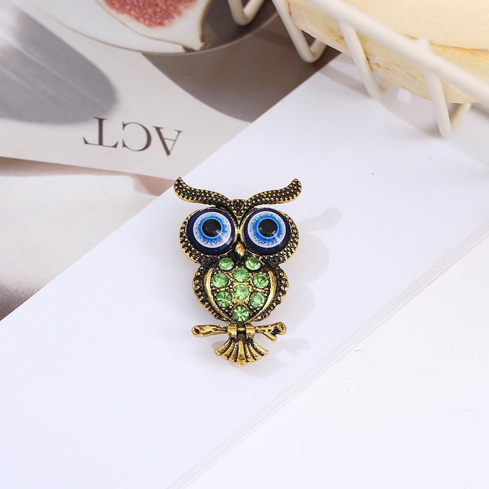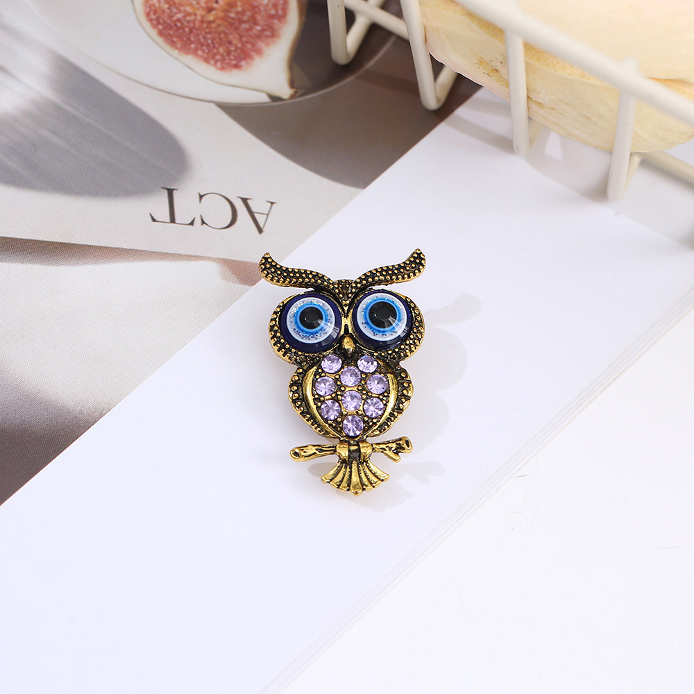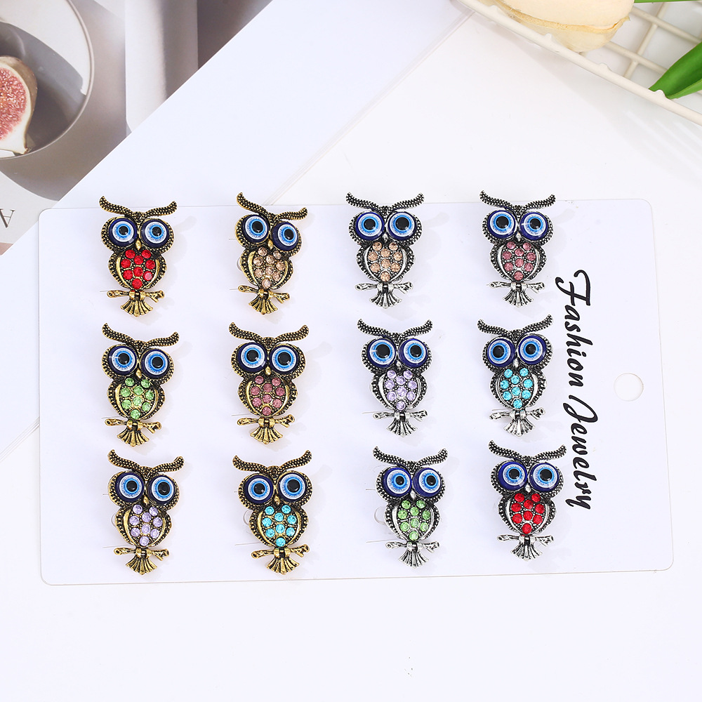 european and american fashion card small brooch rhinestone-encrusted alloy corsage owl clothing accessories pin factory wholesale