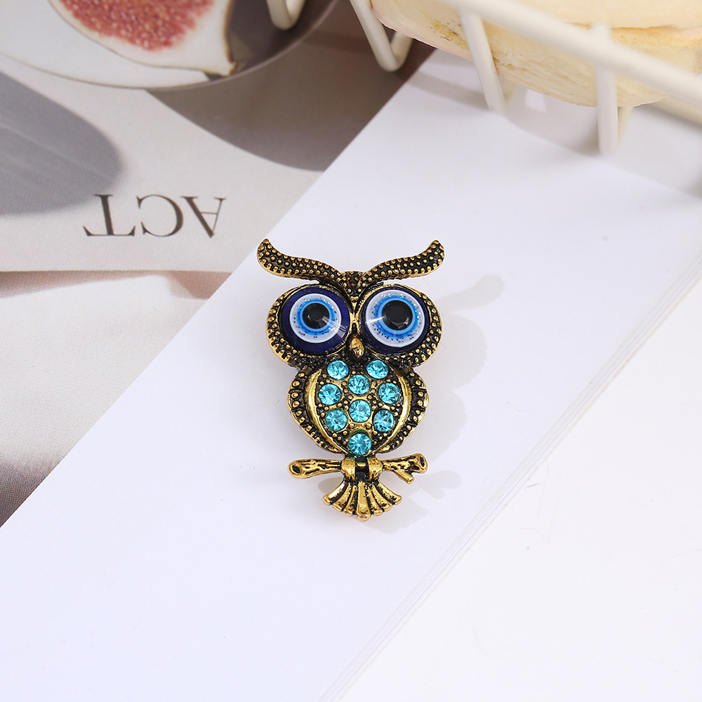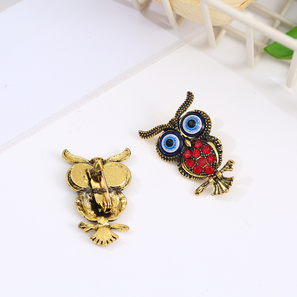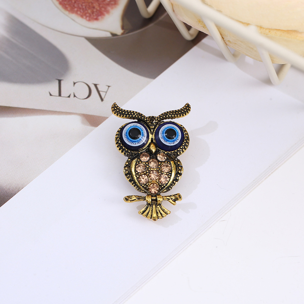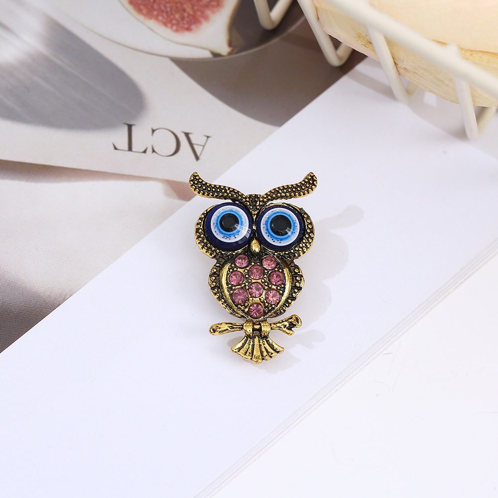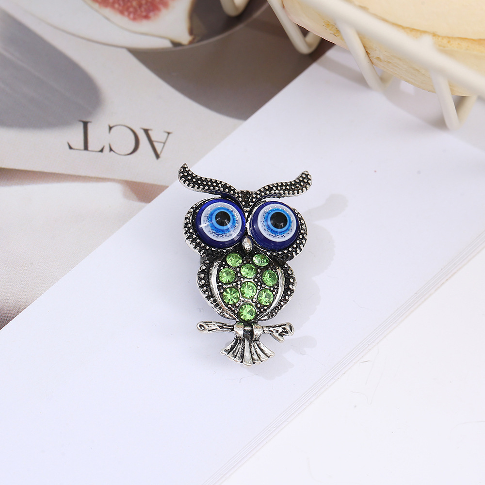european and american fashion card small brooch rhinestone-encrusted alloy corsage owl clothing accessories pin factory wholesale
