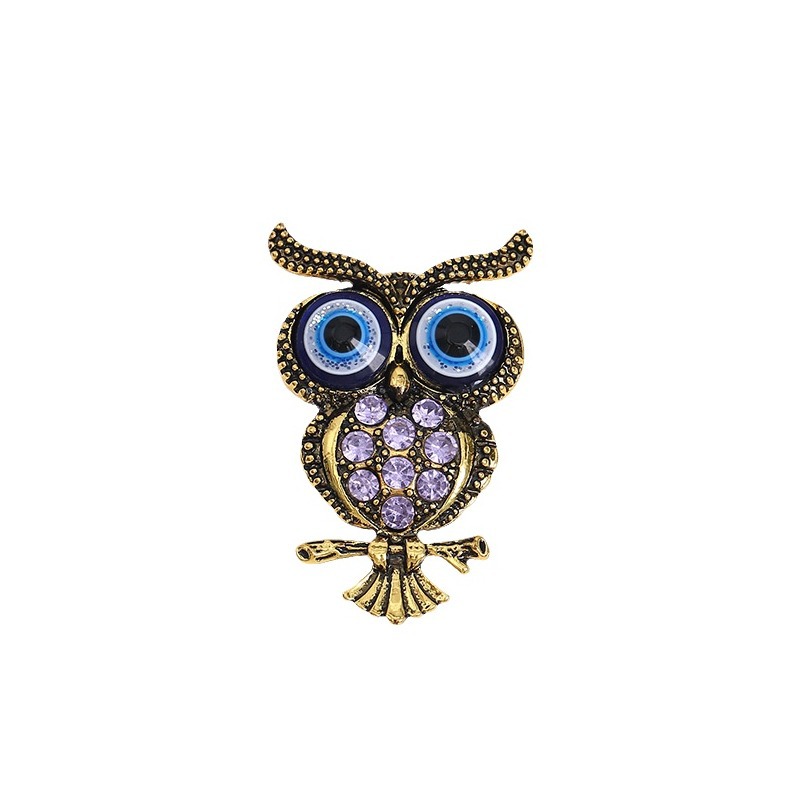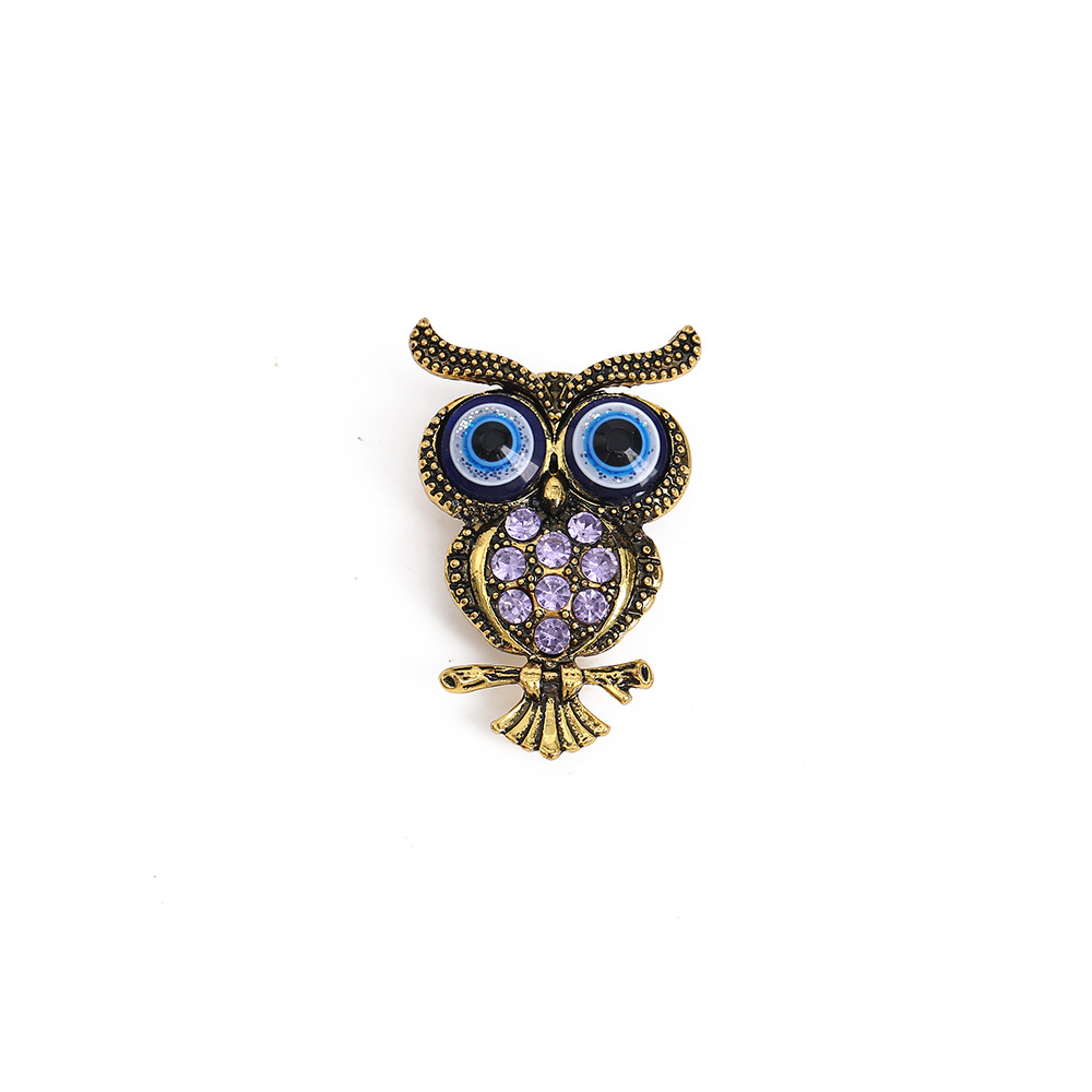 欧美时尚卡装小胸针 镶水钻合金胸花 猫头鹰服饰配件别针厂家批发