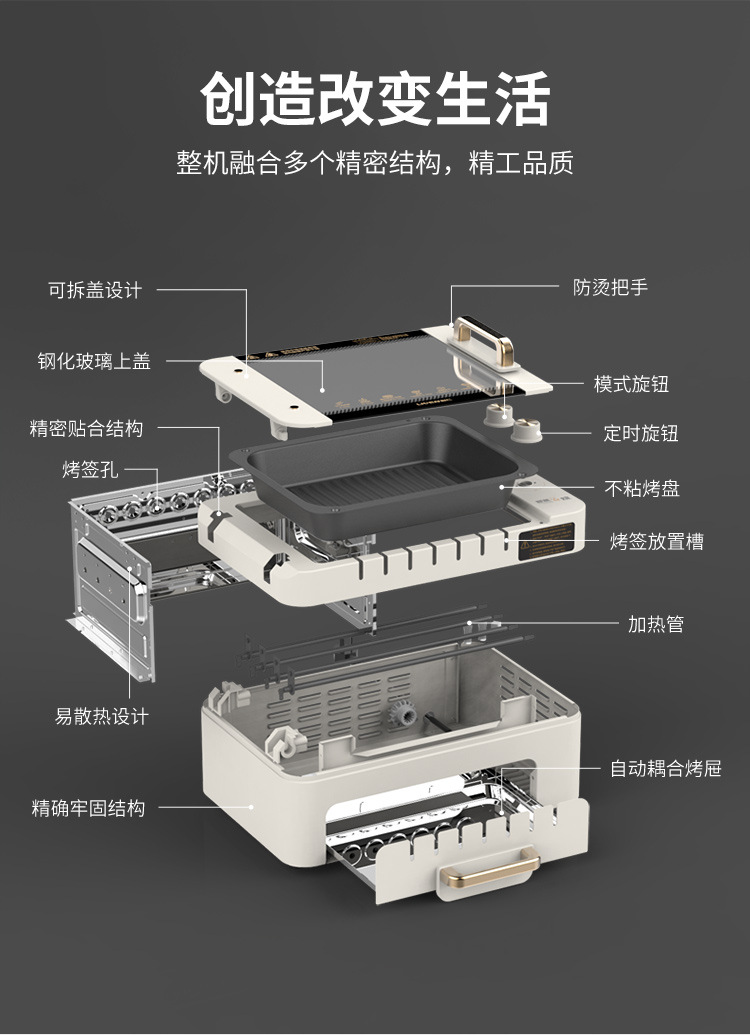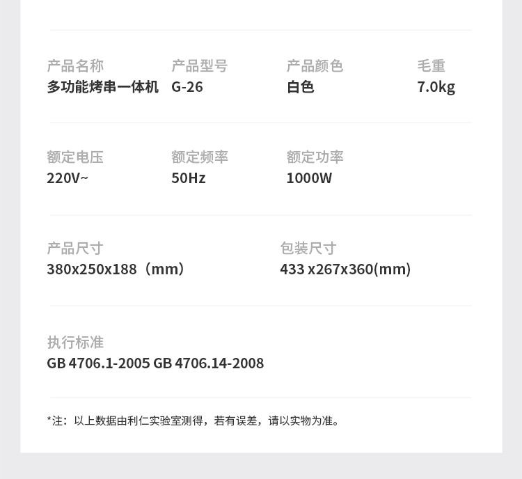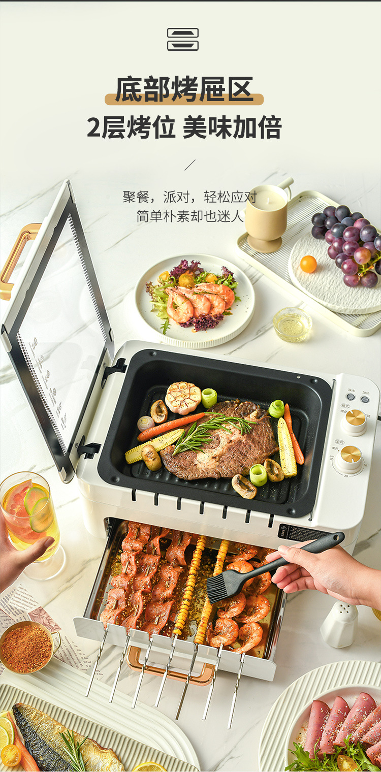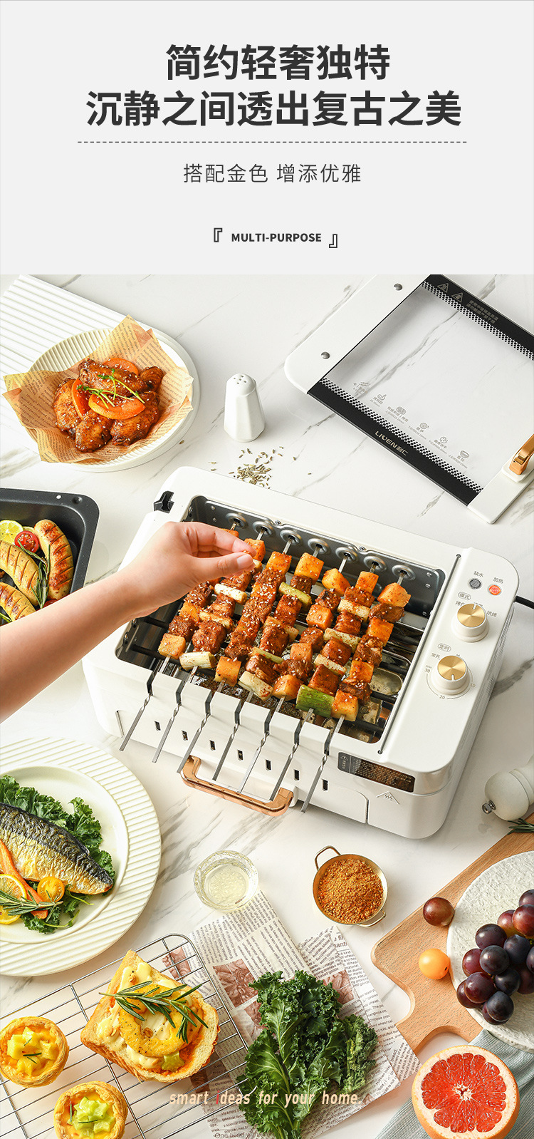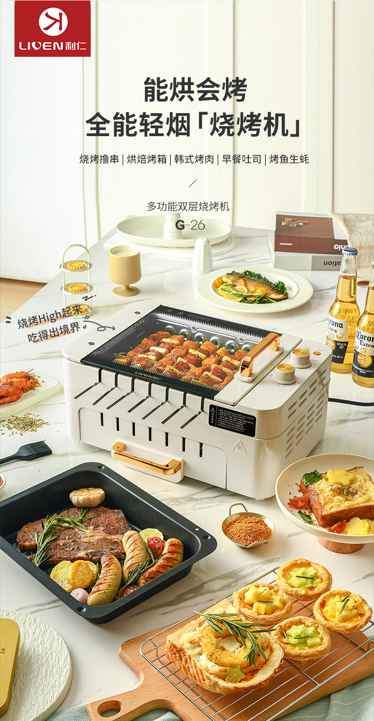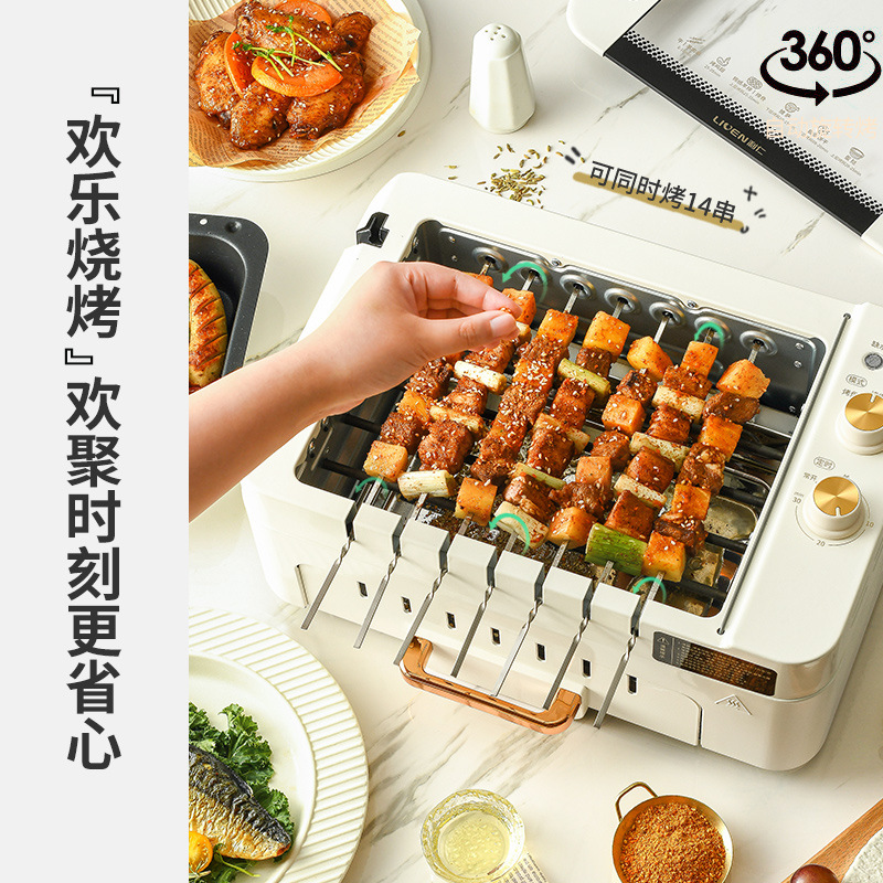 利仁烤串机烤肉锅家用自动旋转多功能室内电烧烤炉轻烟烧烤机G-26