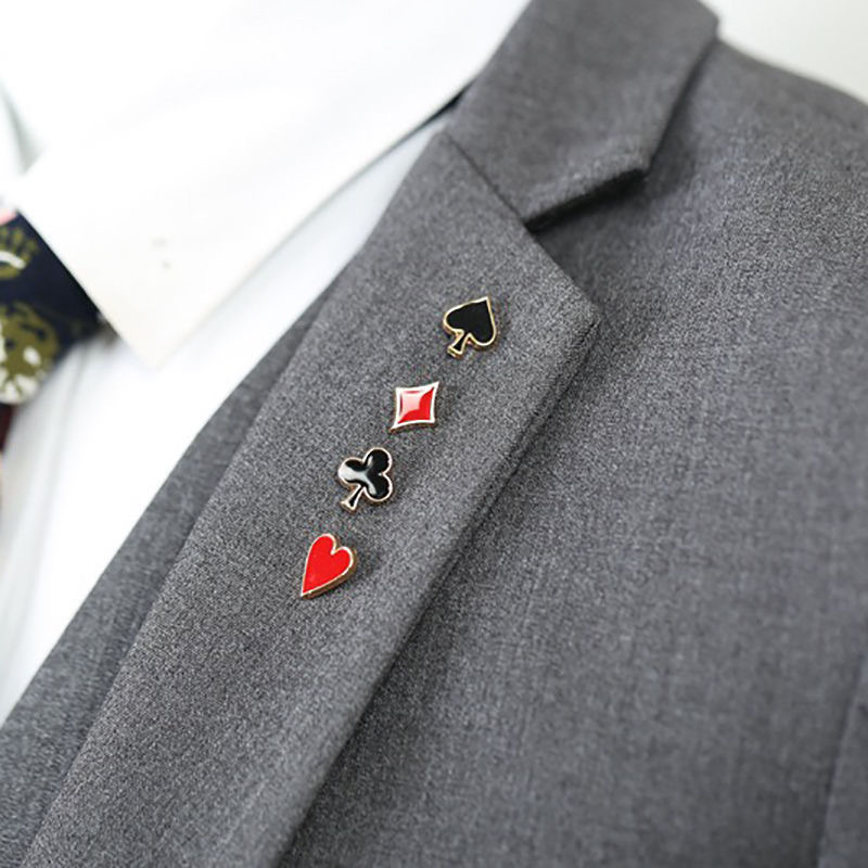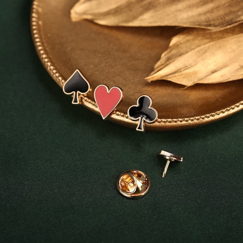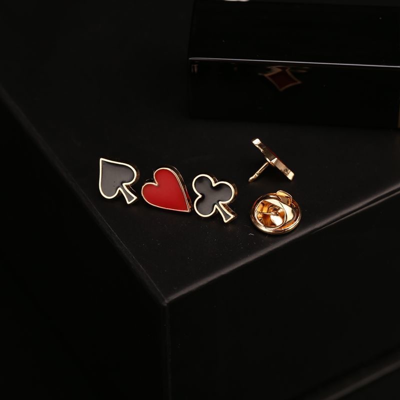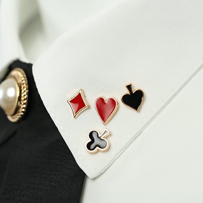 简约百搭防走光扑克牌胸针固定衬衣领口桃心梅花领针小别针扣配饰
