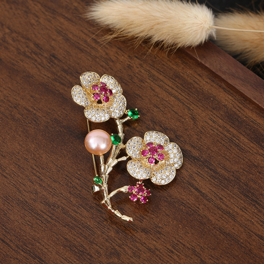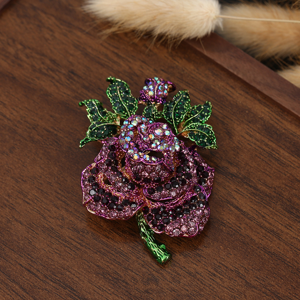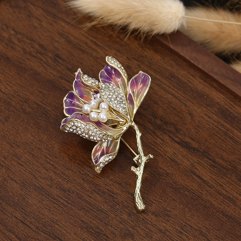 fashion commuter all-match flower dripping rhinestone alloy brooch female anti-exposure businese suit accessories pin factory in stock