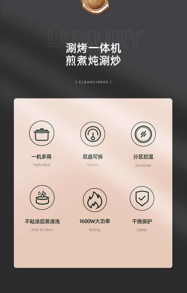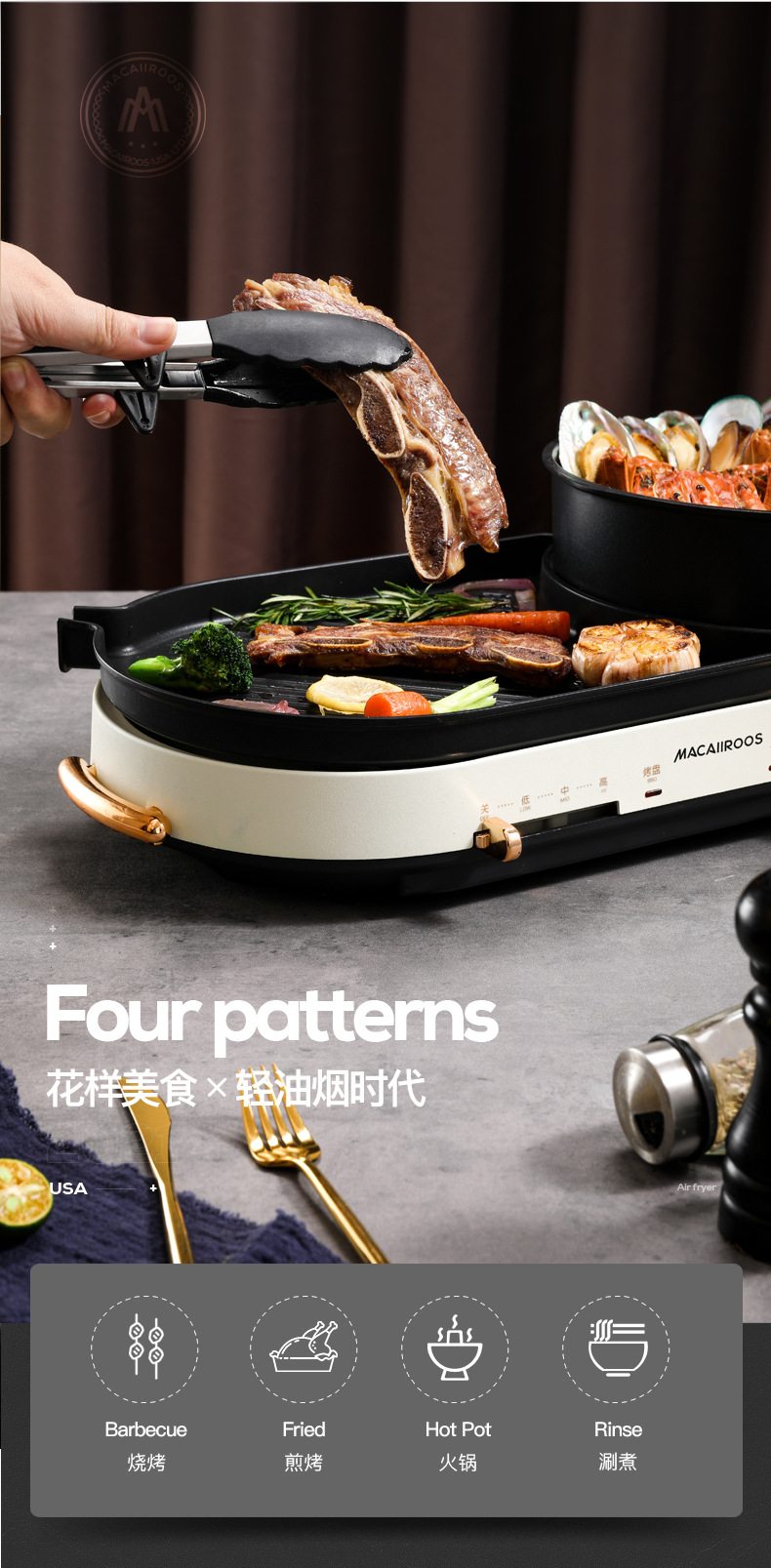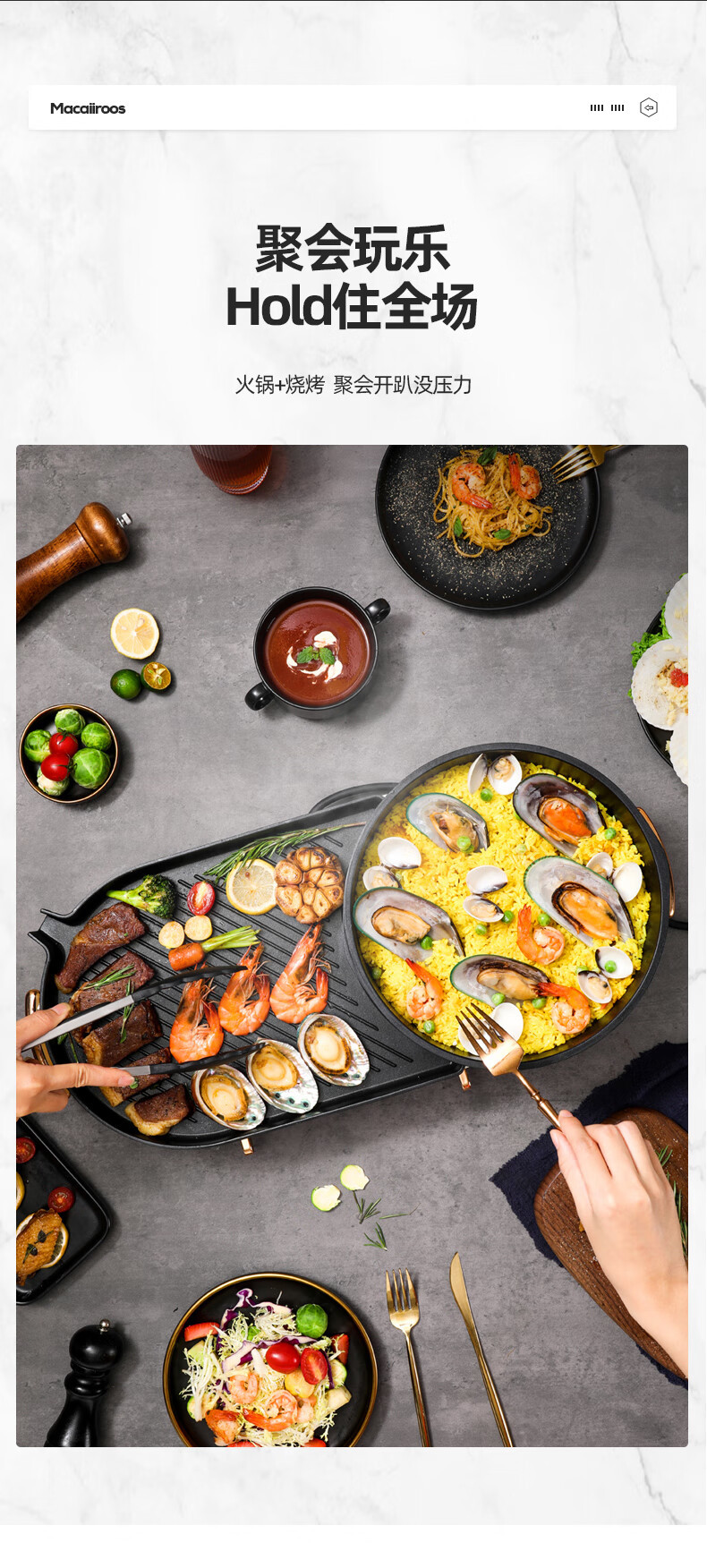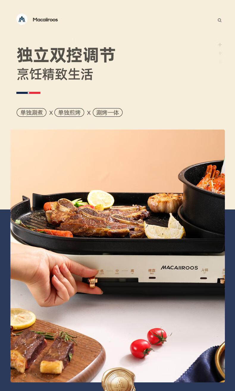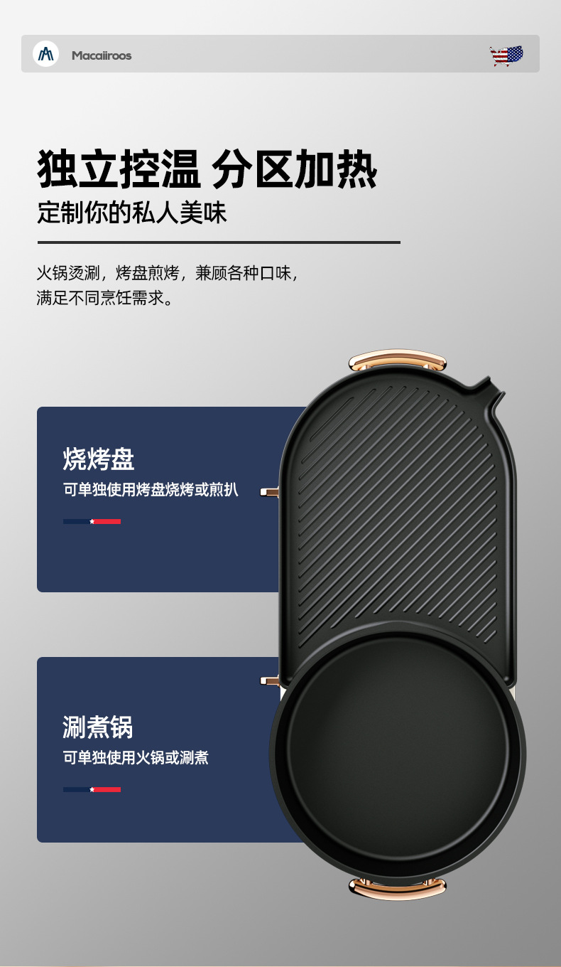 迈卡罗电烤炉烤盘烤肉锅MC-KK301电火锅家用多功能涮烤一体料理锅