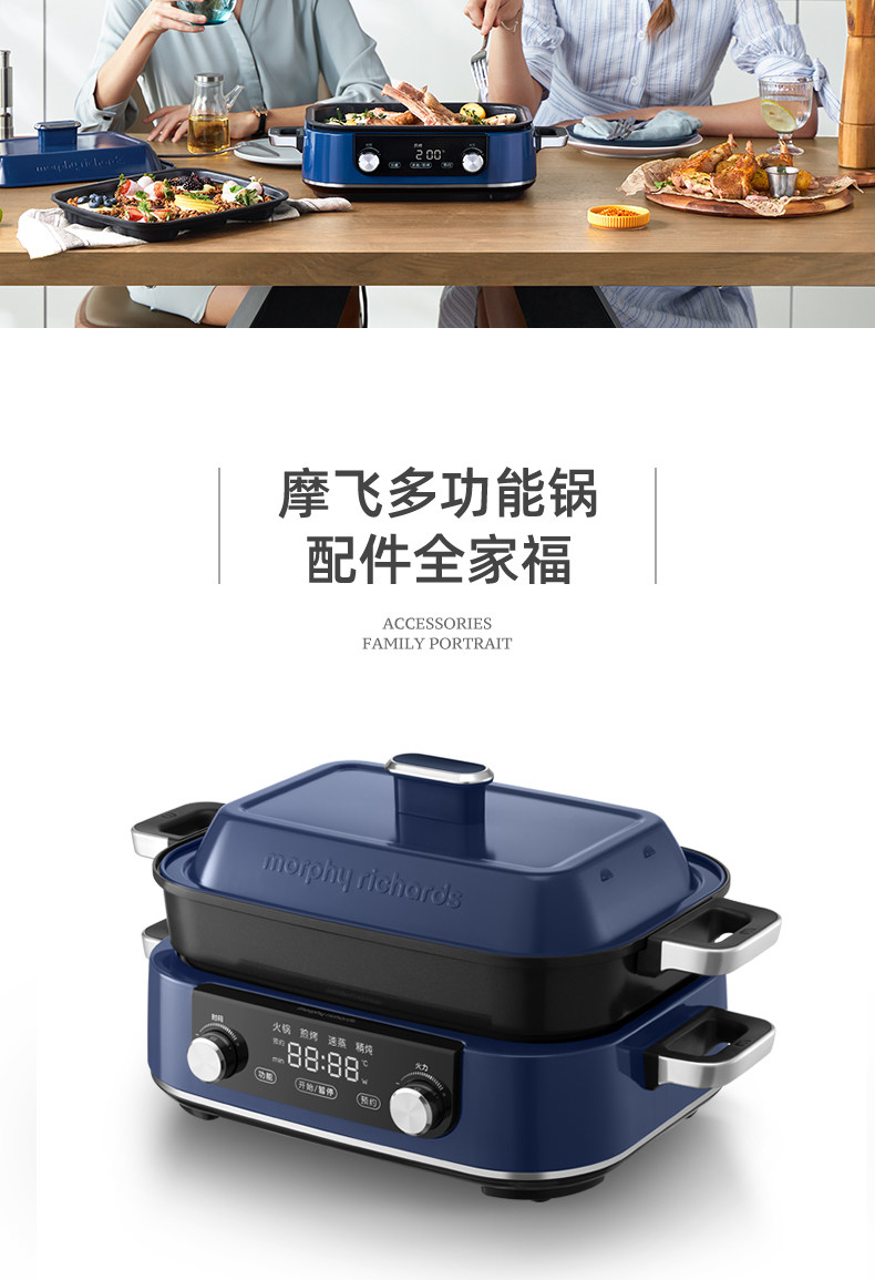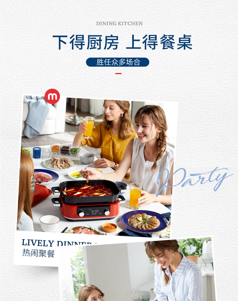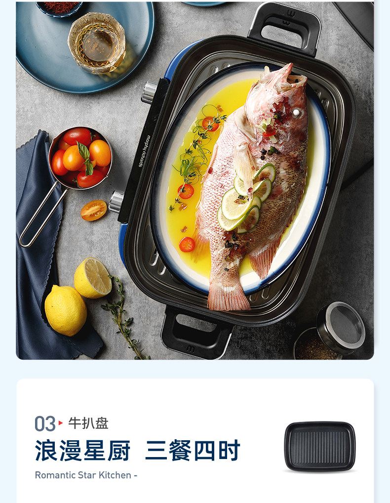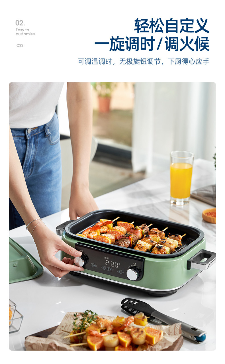 摩飞二代多功能料理锅 火锅烤肉涮一体家用蒸煮炒煎电烤锅网红锅