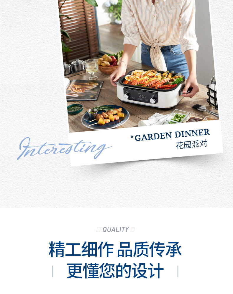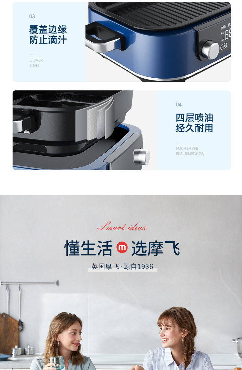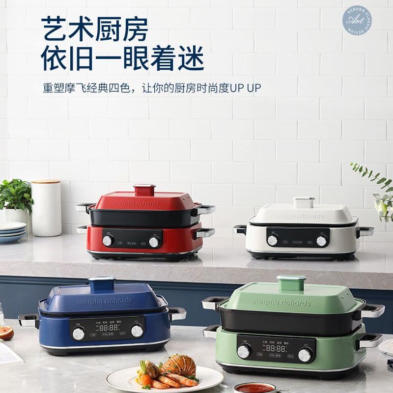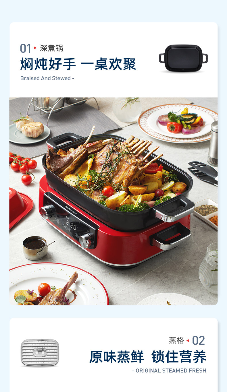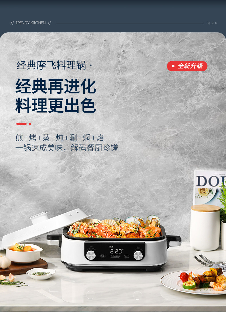 摩飞二代多功能料理锅 火锅烤肉涮一体家用蒸煮炒煎电烤锅网红锅