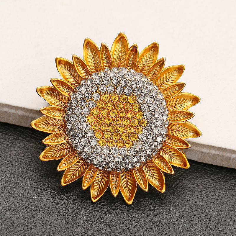 sunflower brooch diamond flower corsage women‘s clothing accessories pin korean fashion alloy badge cross-border