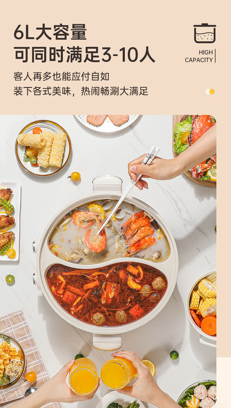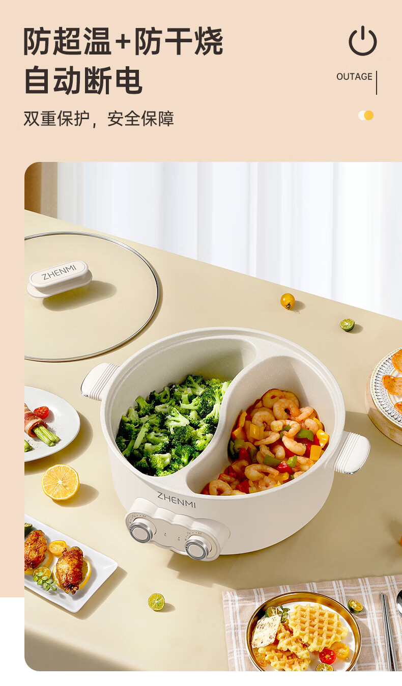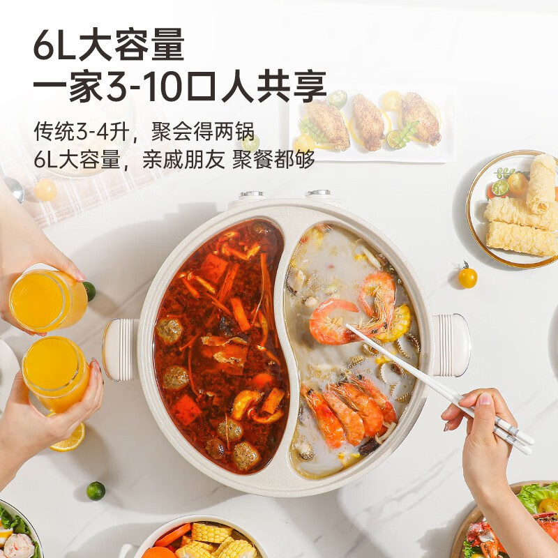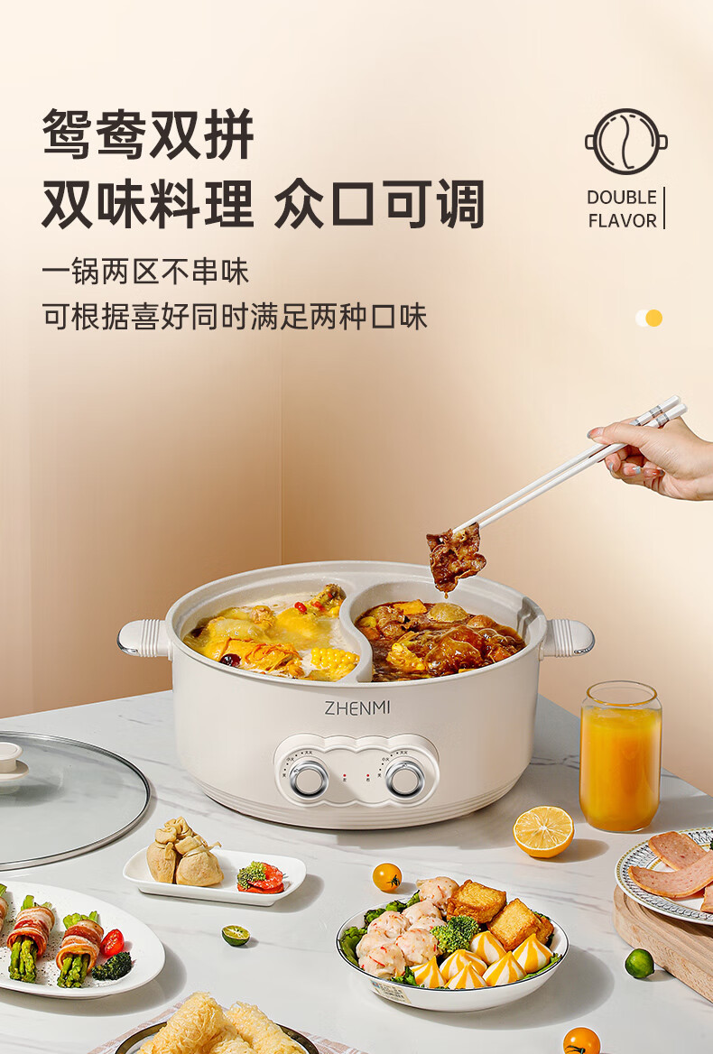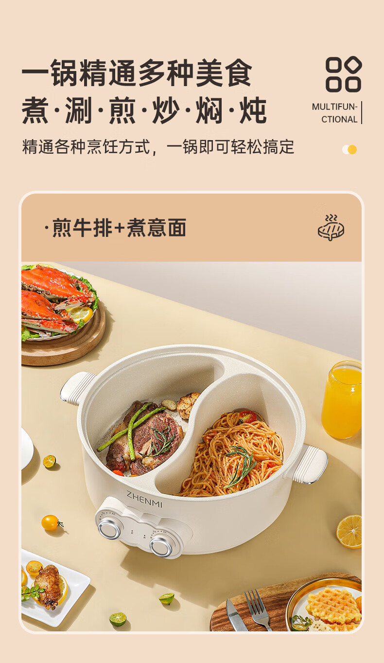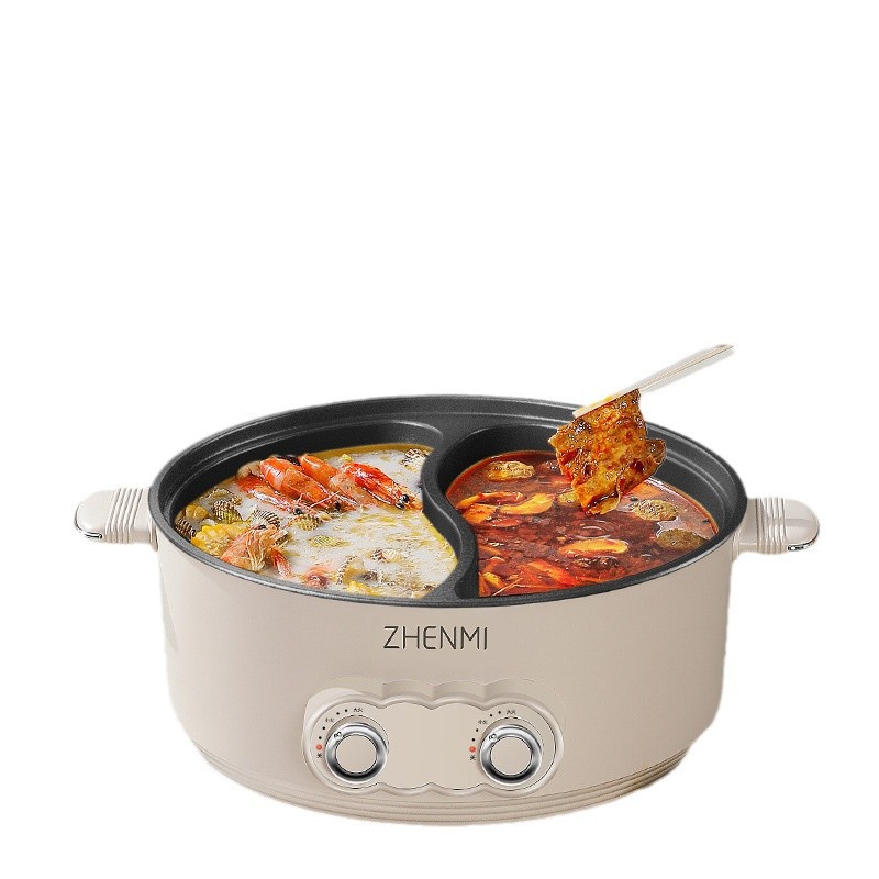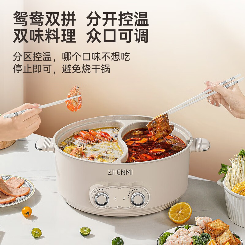臻米电火锅鸳鸯锅电炒锅电煮锅煎烤涮肉一体锅多功能锅大容量火锅